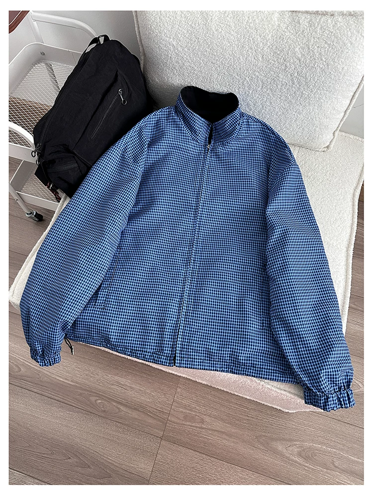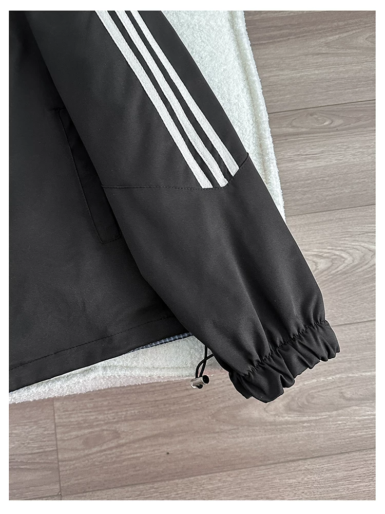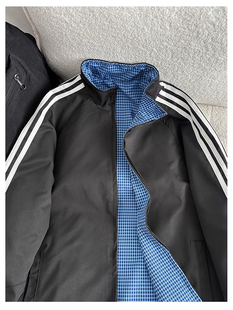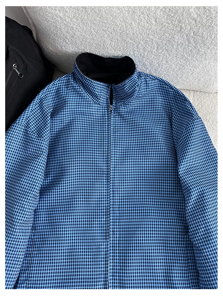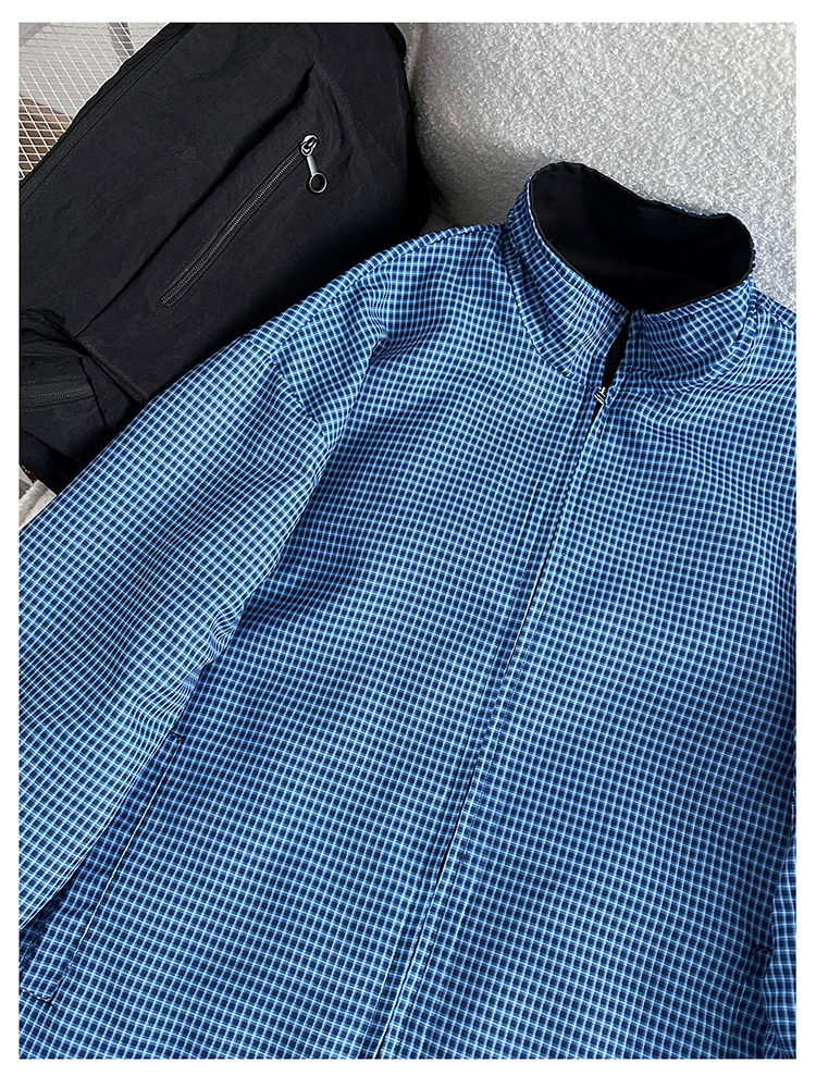 - Áo khoác cổ đứng phong cách retro Mỹ dành cho nam, áo khoác có khóa kéo thời trang xuân thu, thiết kế hai mặt rộng rãi.