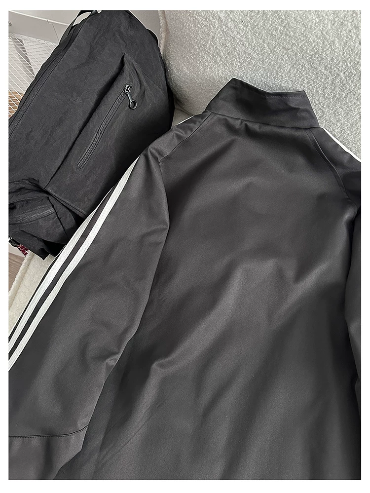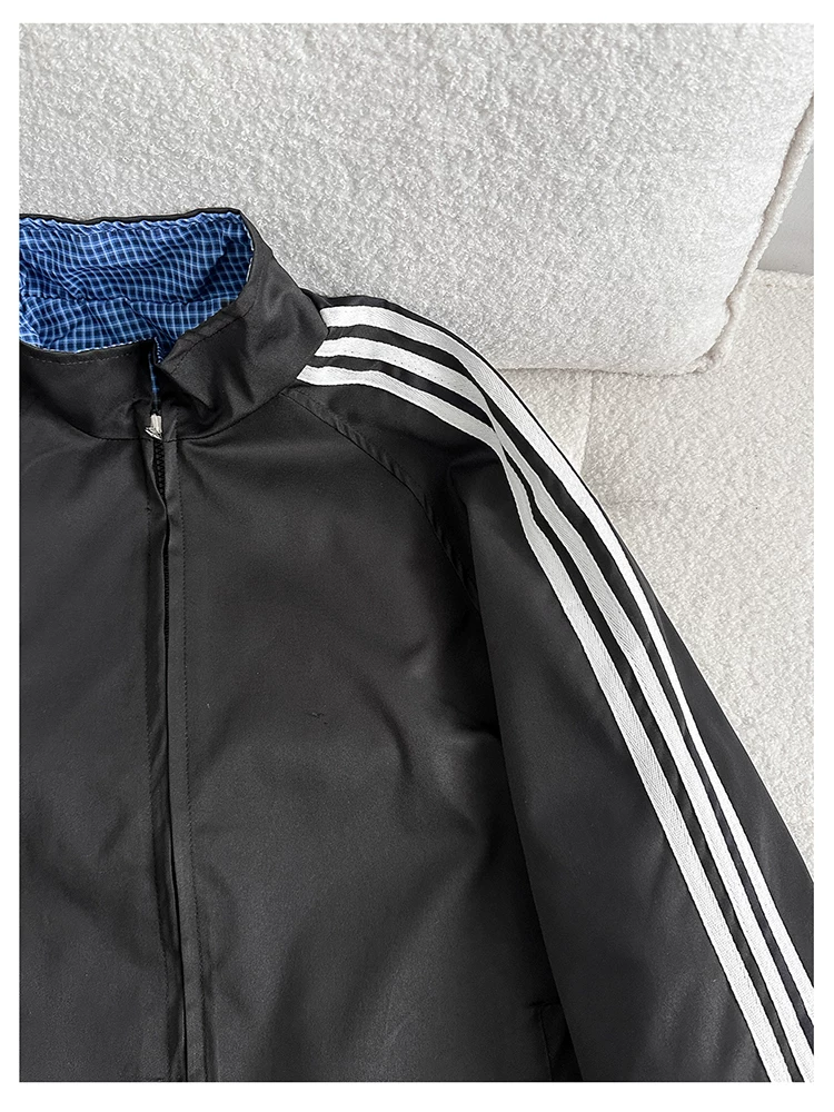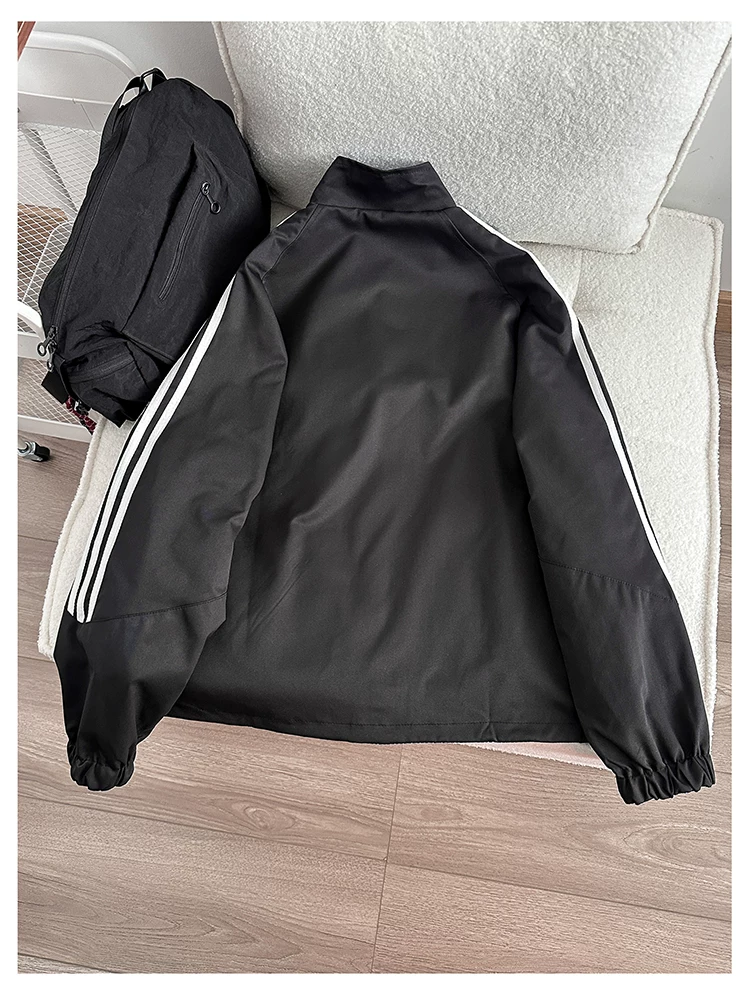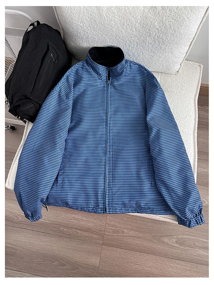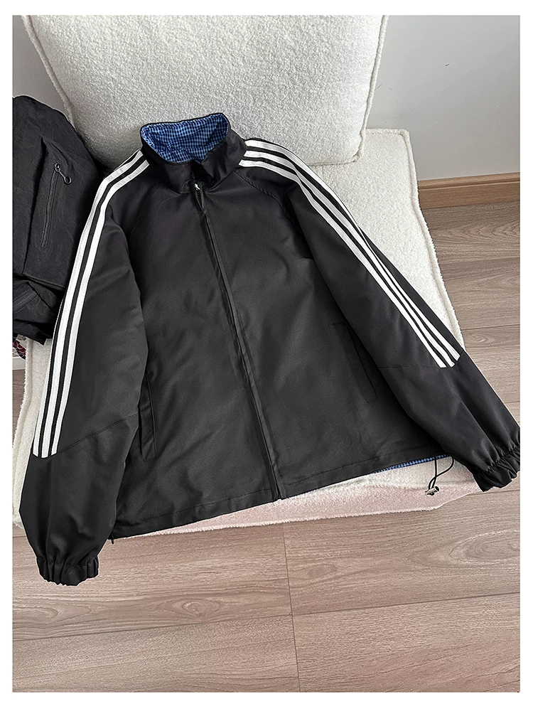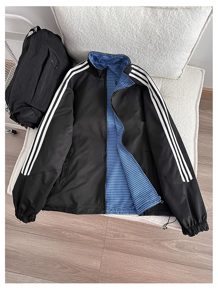 Áo khoác cổ đứng phong cách retro Mỹ dành cho nam, áo khoác có khóa kéo thời trang xuân thu, thiết kế hai mặt rộng rãi.