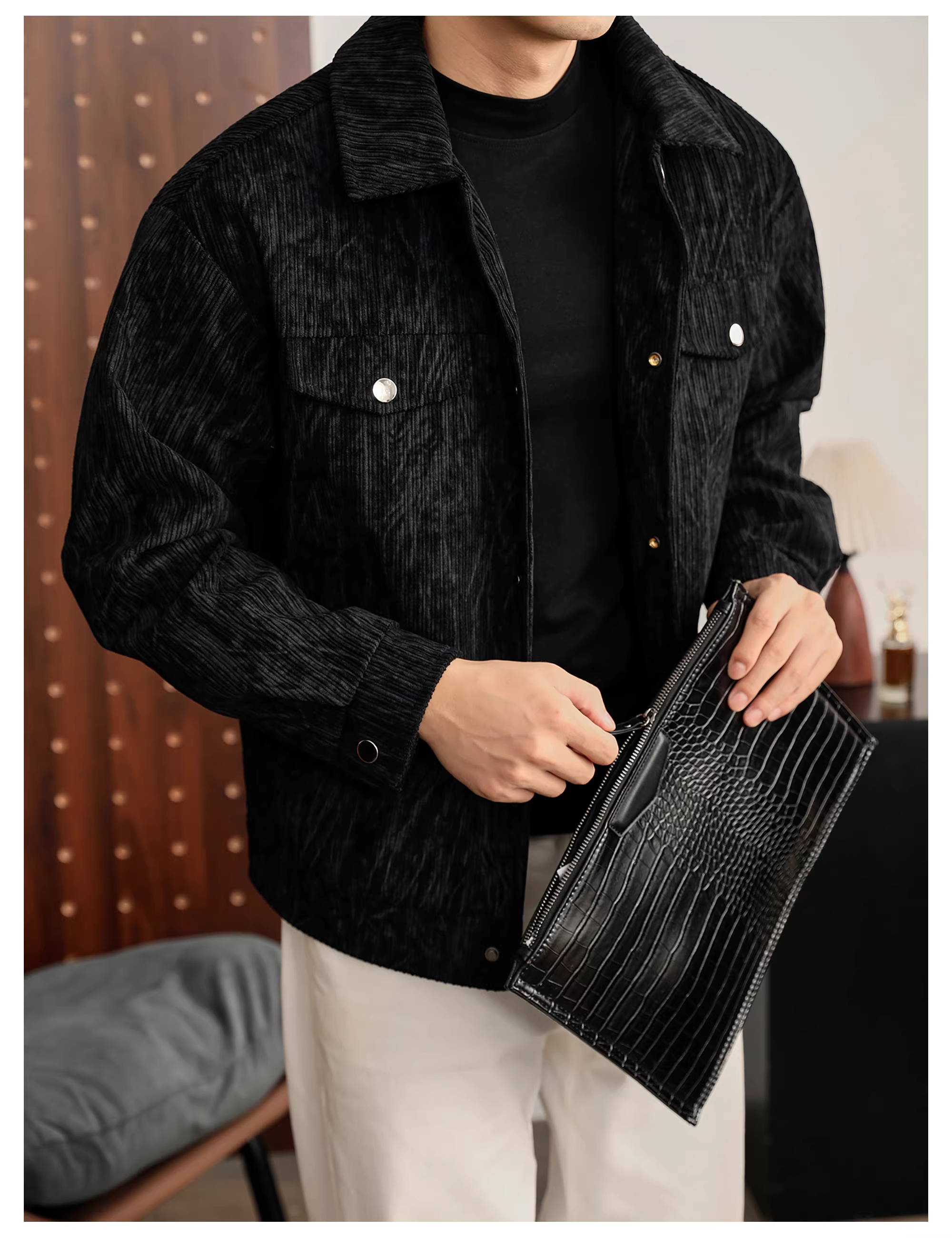- Áo khoác có họa tiết nhung kẻ kiểu cổ điển LUUD dành cho nam mùa thu đông áo khoác kiểu dáng công sở có cổ áo khoác phong cách công sở