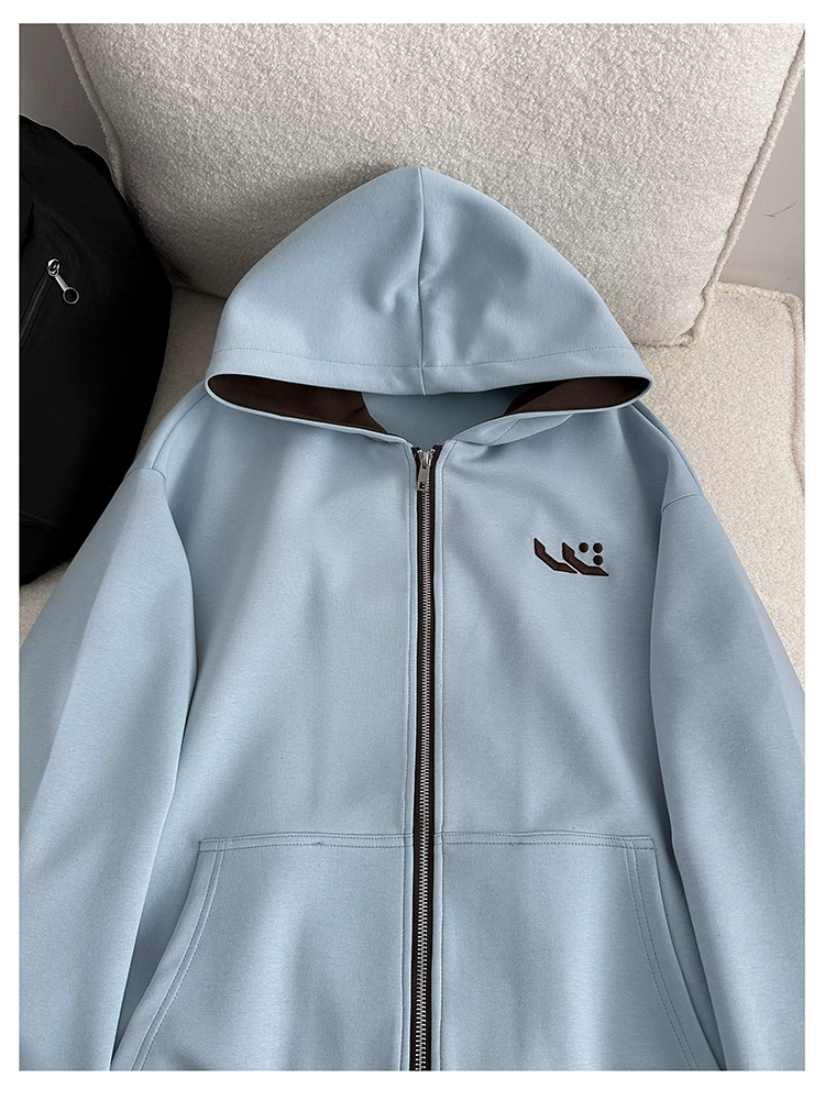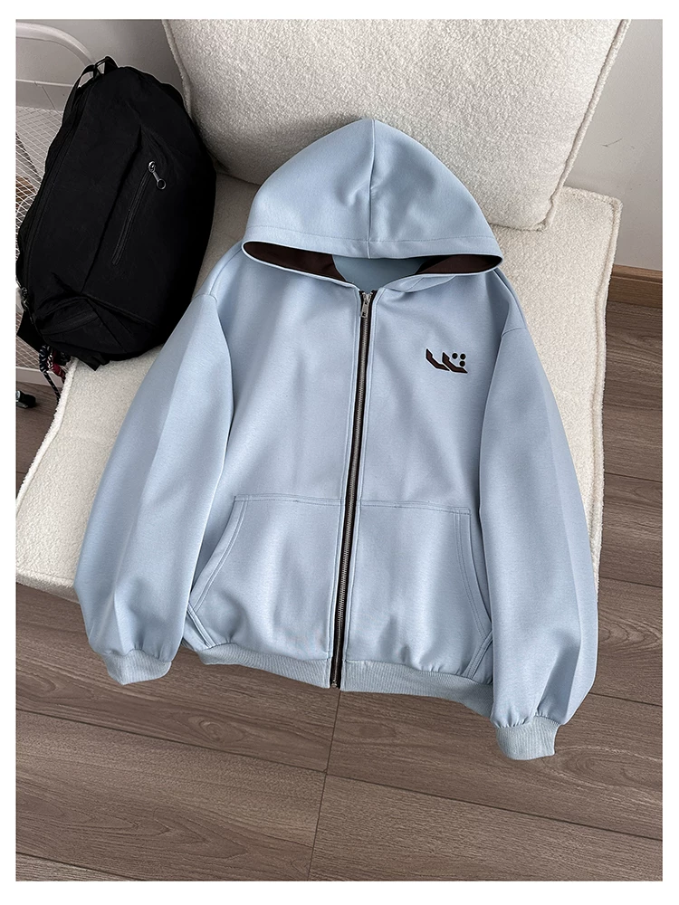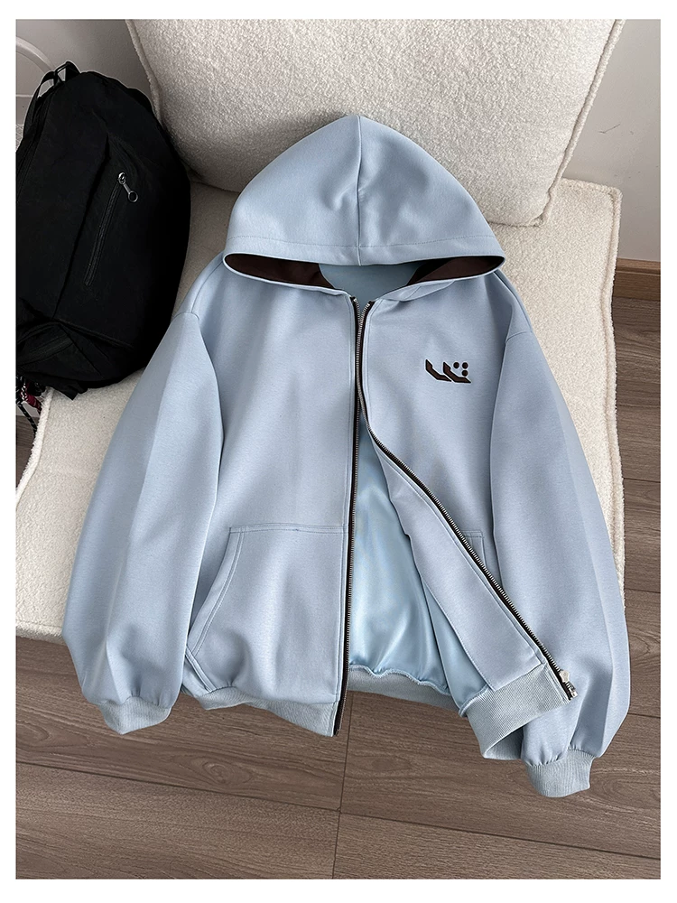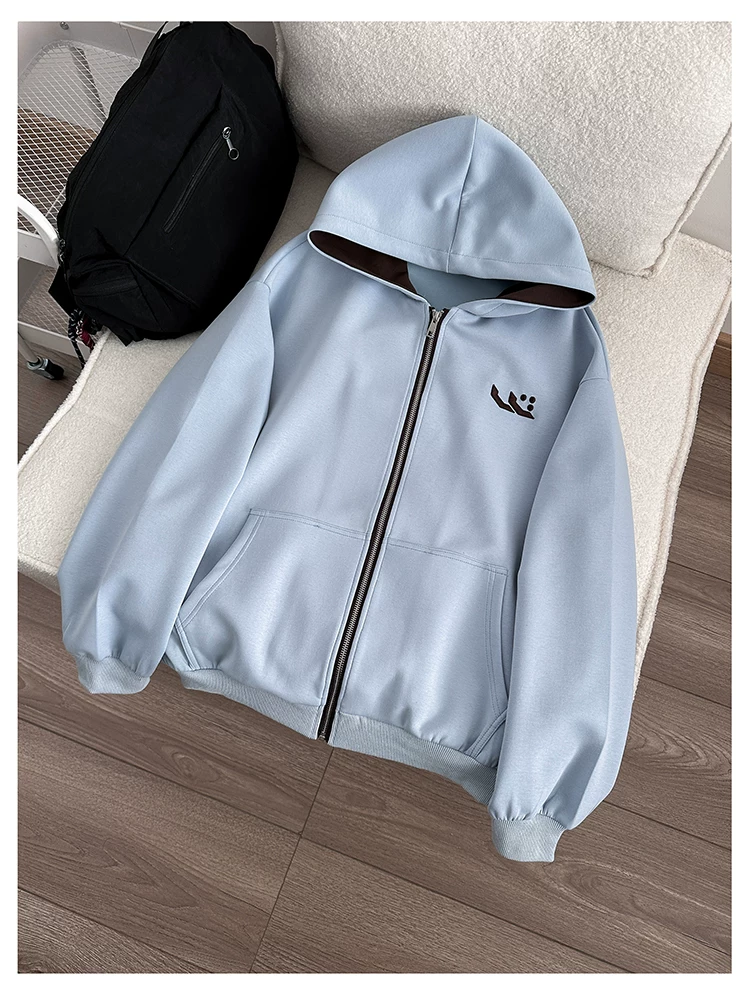 - Áo khoác có mũ thêu kiểu Mỹ dành cho nam và nữ, áo khoác có khóa kéo thường ngày mùa xuân thu, áo khoác ngoài rộng rãi hợp thời trang dành cho cặp đôi.