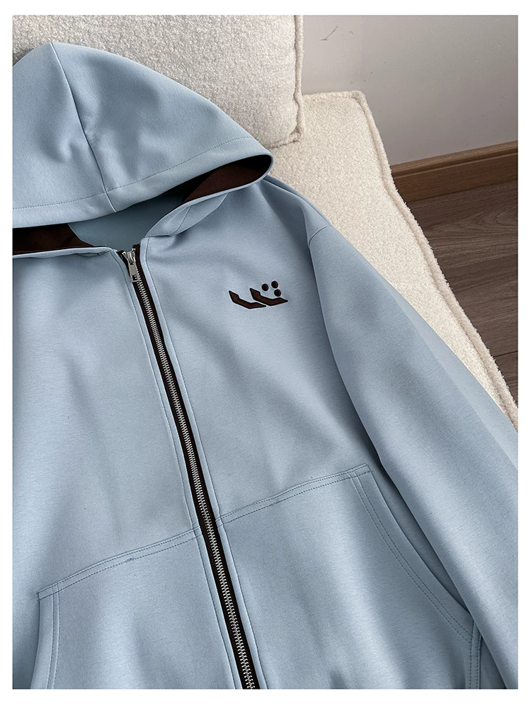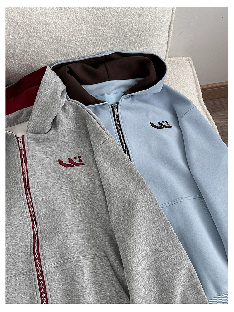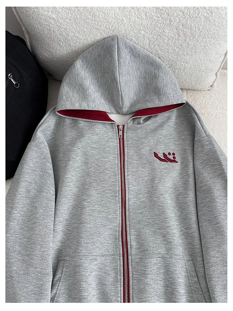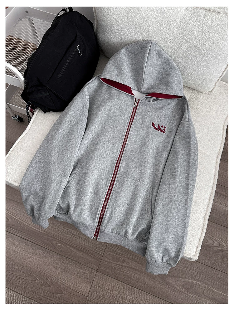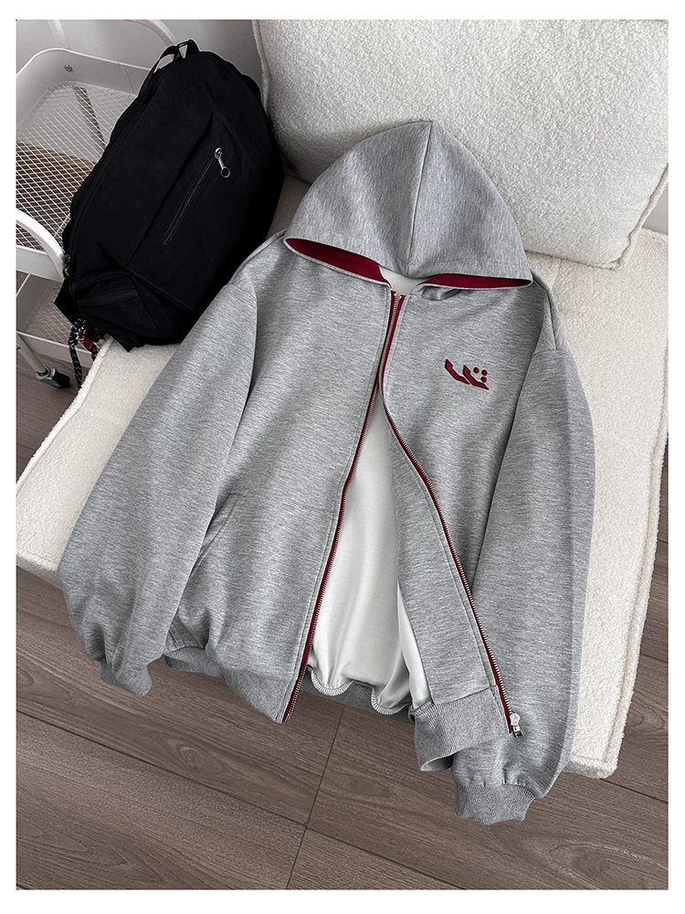 - Áo khoác có mũ thêu kiểu Mỹ dành cho nam và nữ, áo khoác có khóa kéo thường ngày mùa xuân thu, áo khoác ngoài rộng rãi hợp thời trang dành cho cặp đôi.