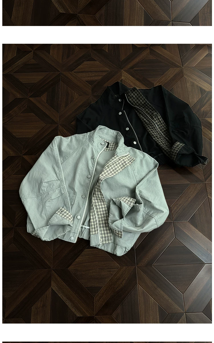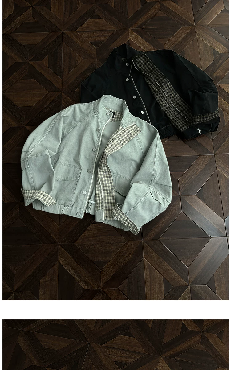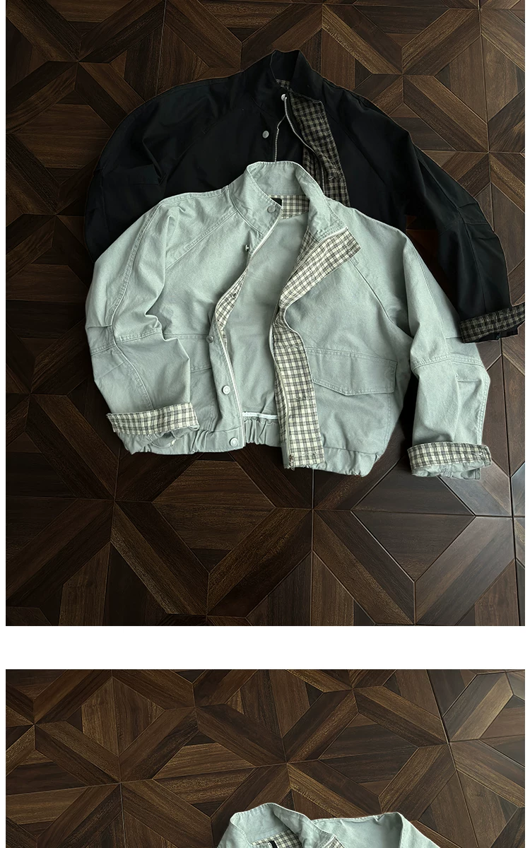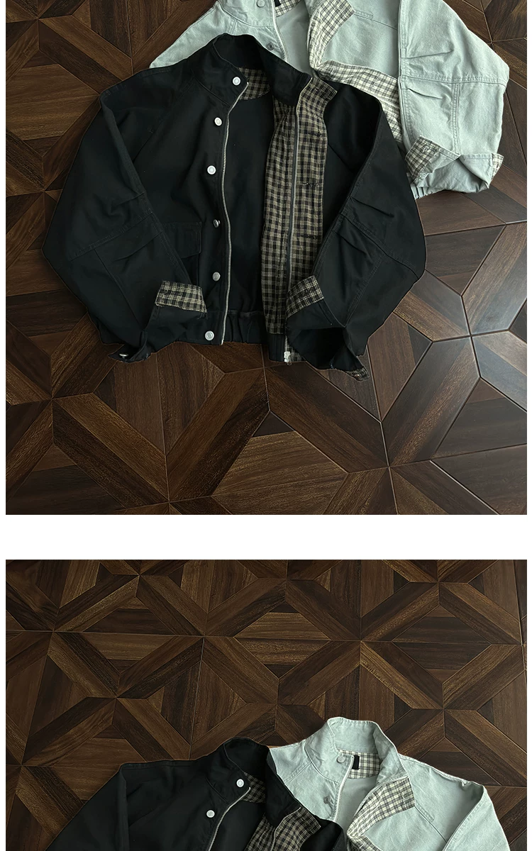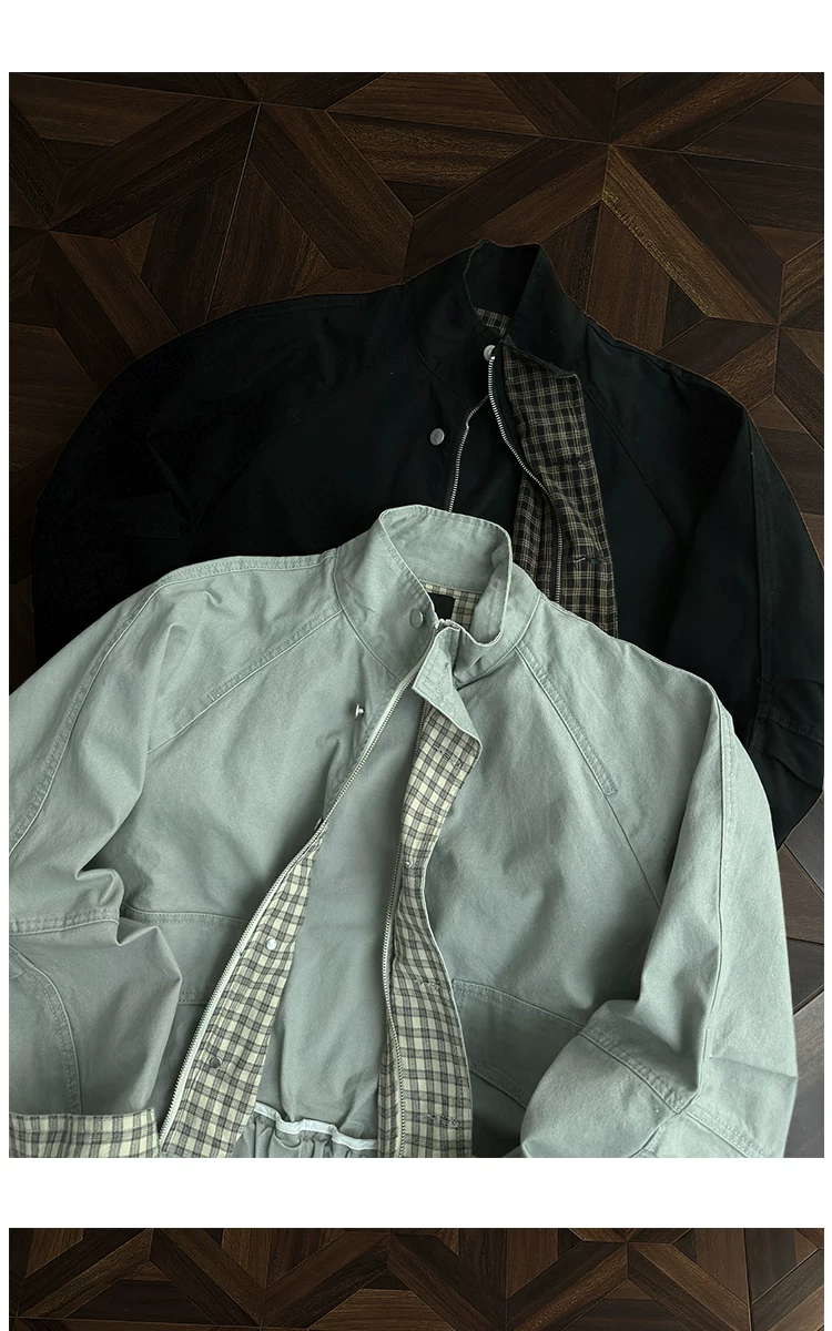 - Áo khoác công sở có cổ đứng, túi lớn dành cho nam, áo khoác houndstooth thời trang mùa thu, áo khoác rộng rãi phong cách retro Mỹ.