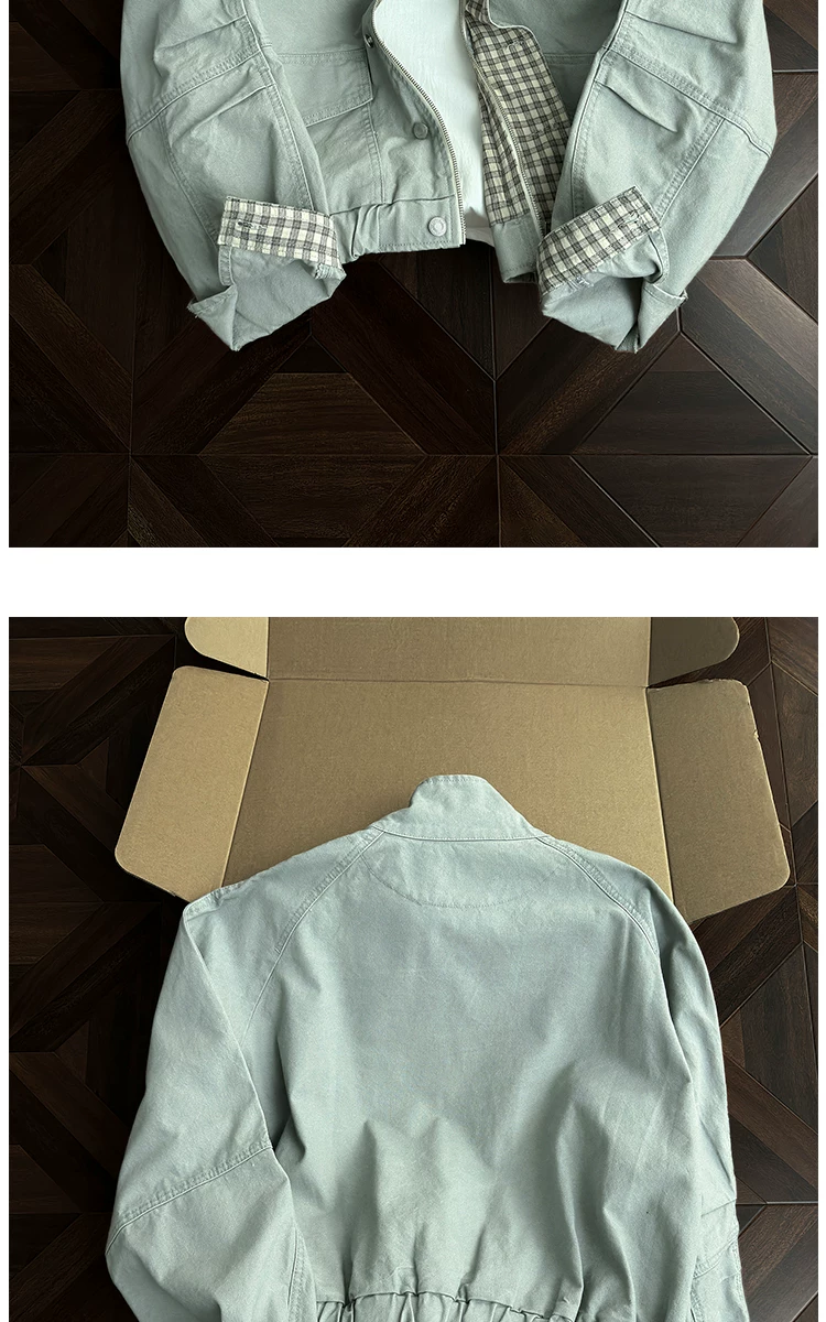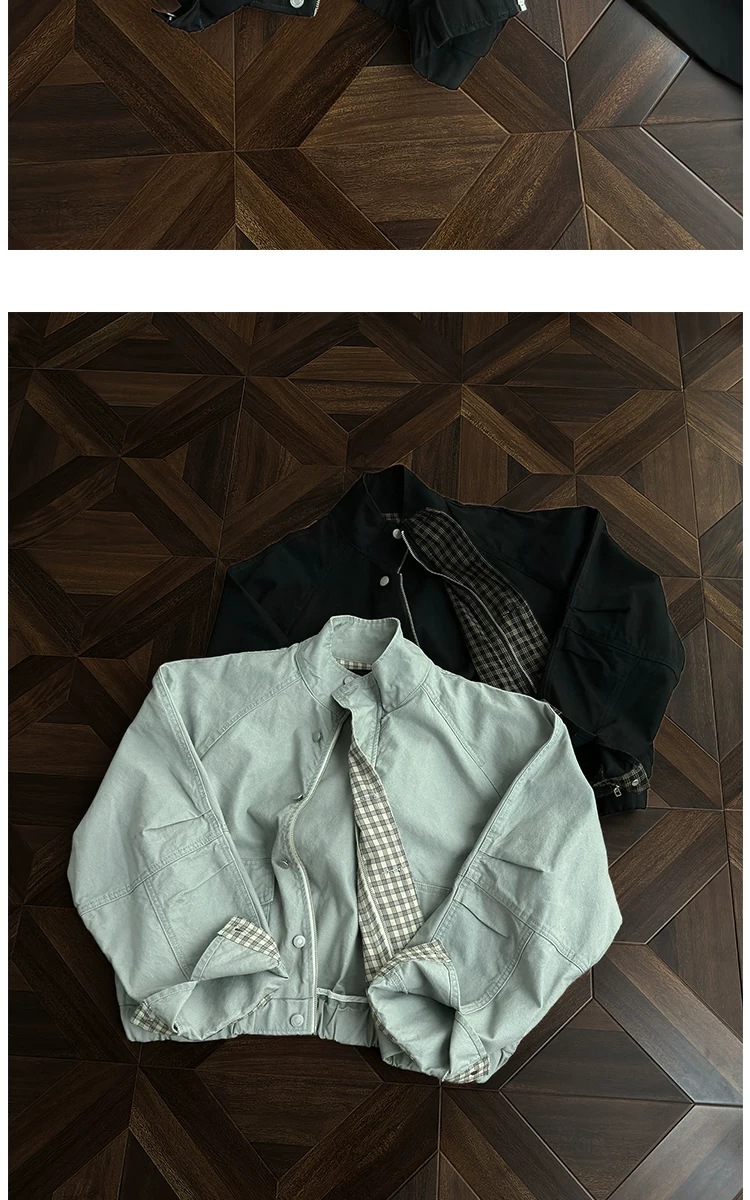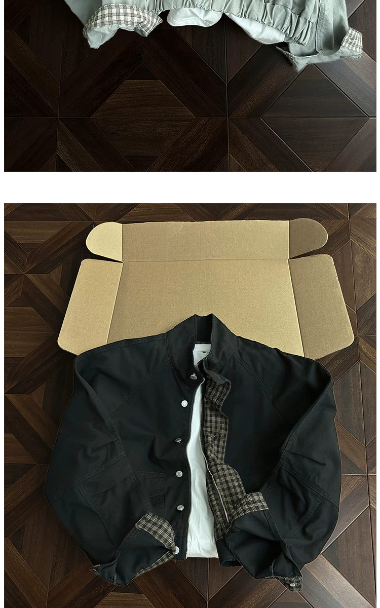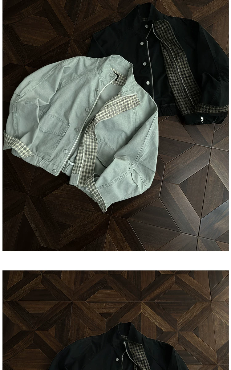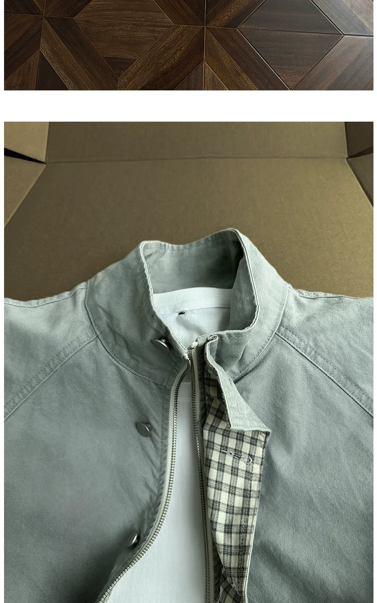 - Áo khoác công sở có cổ đứng, túi lớn dành cho nam, áo khoác houndstooth thời trang mùa thu, áo khoác rộng rãi phong cách retro Mỹ.