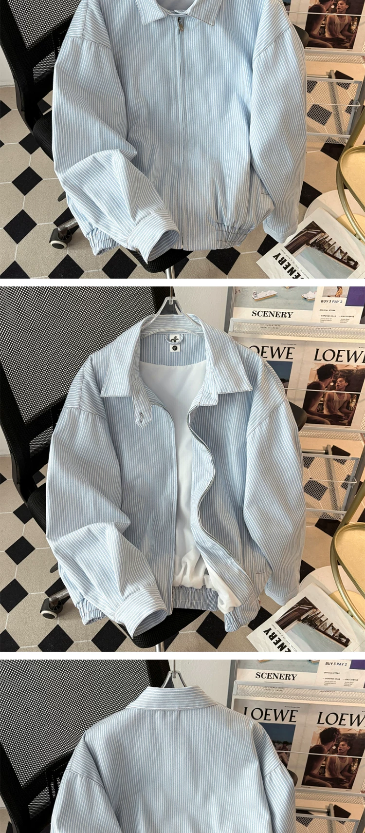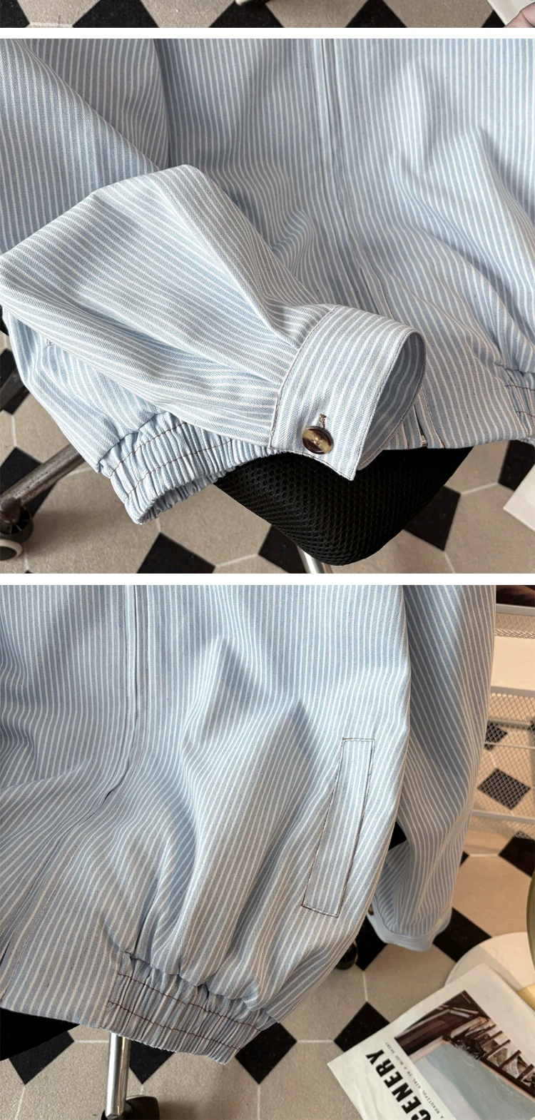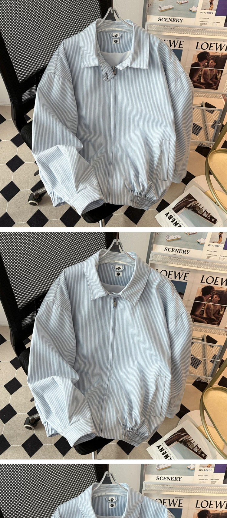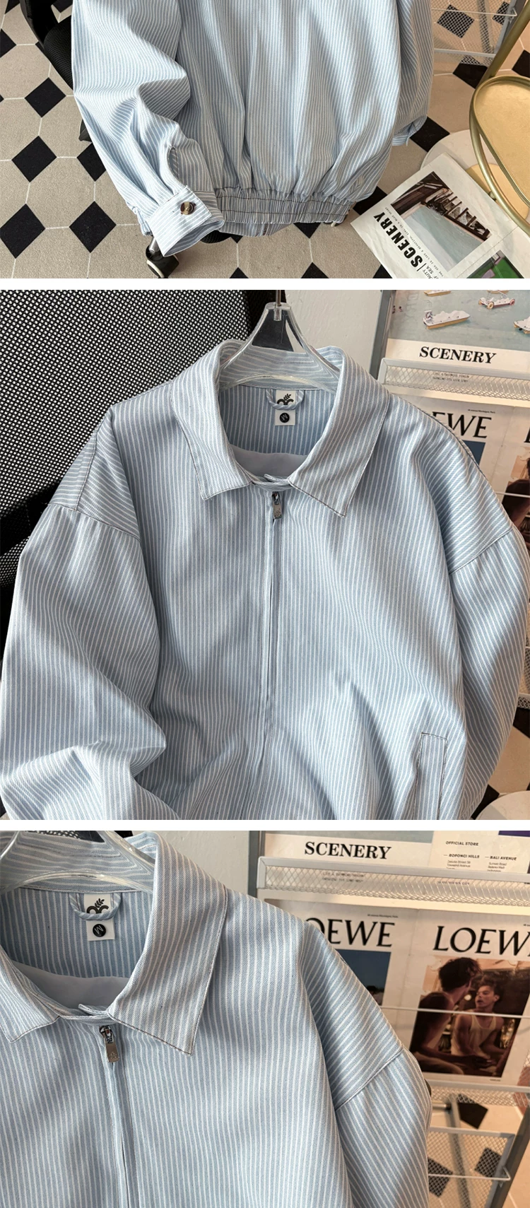 - Áo khoác công sở sọc kiểu Nhật dành cho nam, thương hiệu thời trang xuân thu, dáng rộng, cổ bẻ, áo khoác ngoài thông thường kiểu Mỹ dành cho cặp đôi.