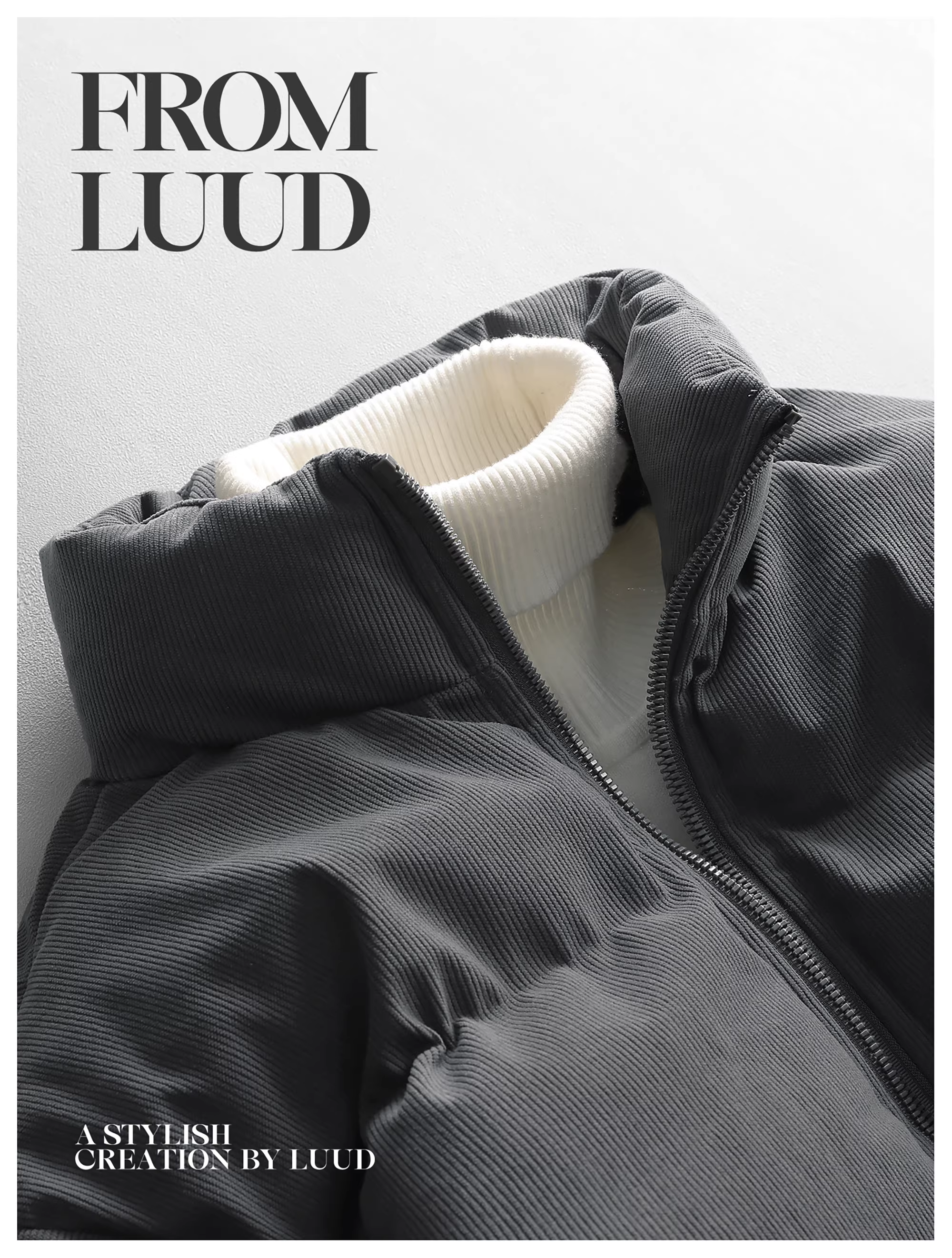 Áo khoác cotton có gân LUUD dành cho nam, áo khoác cotton ấm áp thương hiệu hợp thời trang mùa đông, áo khoác phao cổ đứng dày dặn.