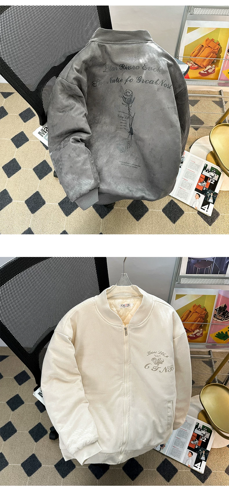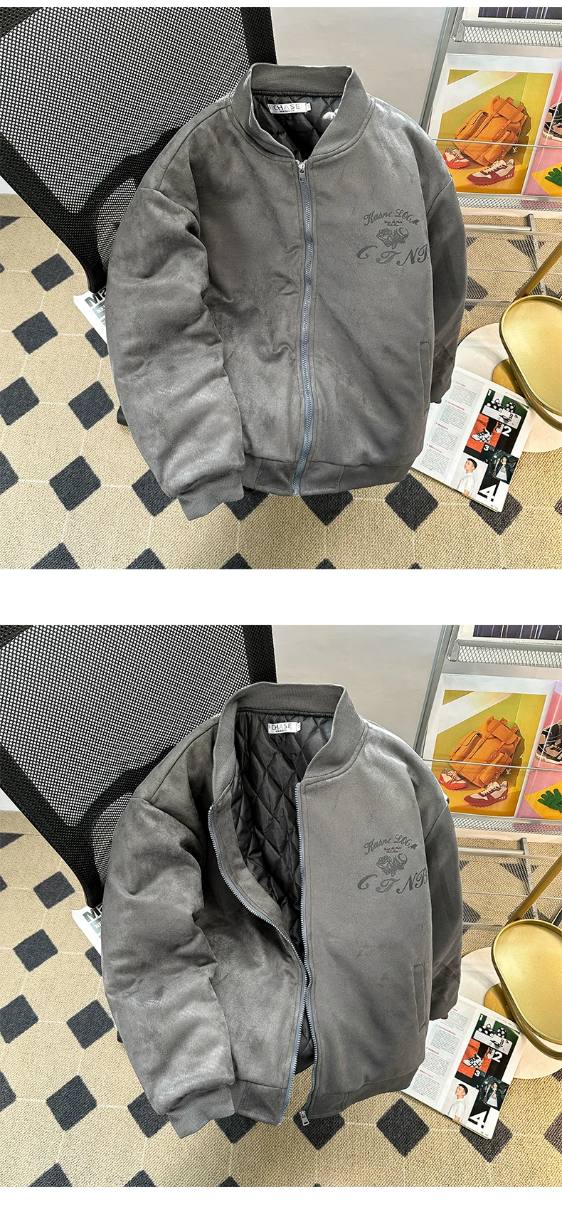Áo khoác cotton da lộn kiểu Mỹ dành cho nam, thiết kế mùa đông, áo khoác bóng chày dày dặn, áo khoác cotton ấm áp thời trang dành cho cặp đôi.