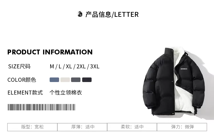 - Áo khoác cotton dày dặn cổ đứng màu trơn mùa đông của Wukong dành cho nam, thương hiệu thời thượng, dáng rộng, áo khoác cotton đa năng dành cho cặp đôi.