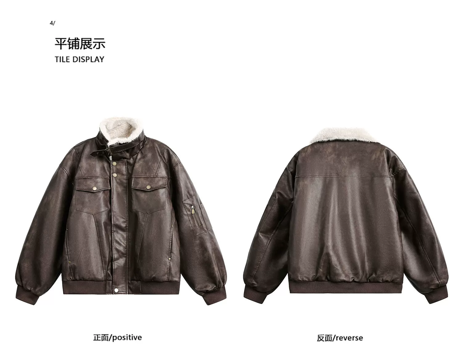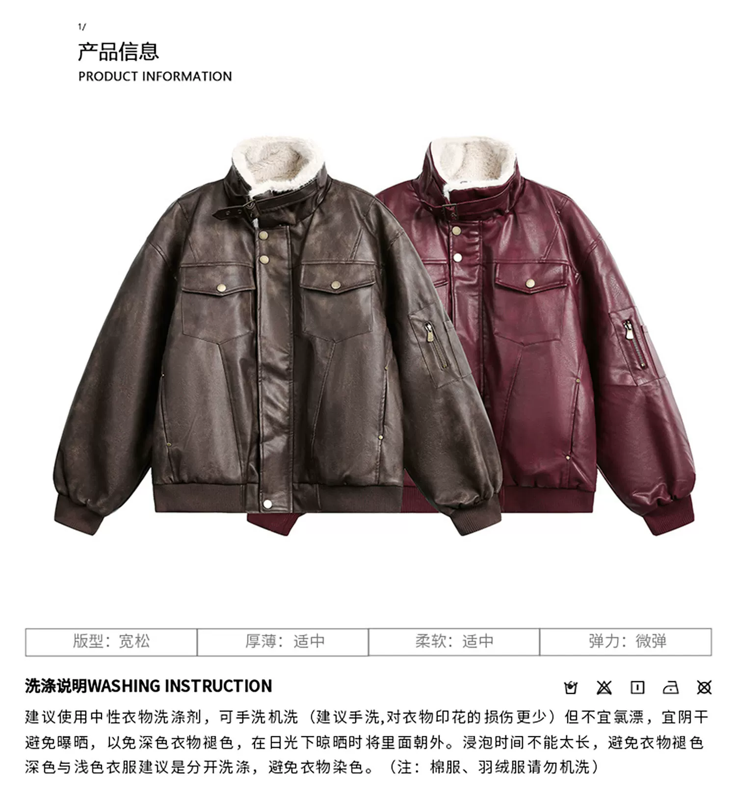 - Áo khoác cotton unisex dáng rộng phong cách retro Mỹ K787 chất liệu da PU phối vải kiểu dáng cổ đứng, thiết kế độc đáo, ấm áp, thời trang, dành cho cặp đôi.