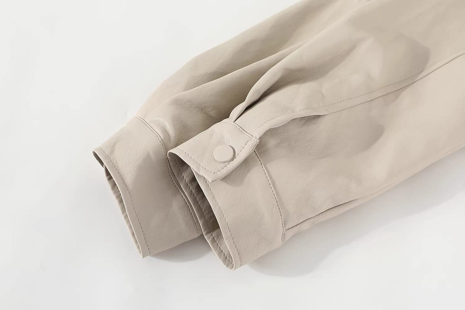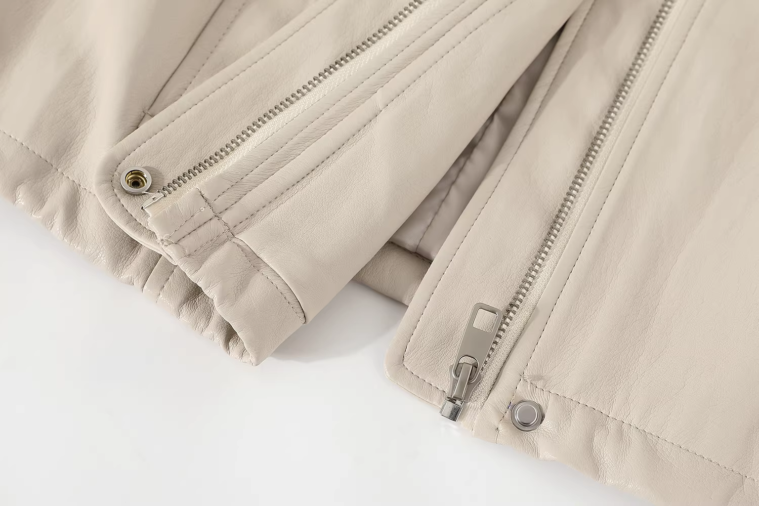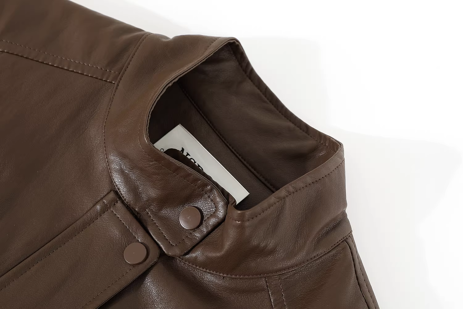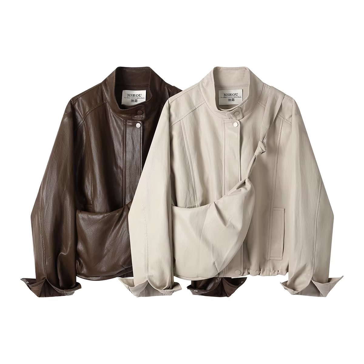 - Áo khoác da cổ đứng kiểu cổ điển NSROU Hồng Kông dành cho nữ, áo khoác ngắn kiểu biker phong cách Mỹ mùa thu