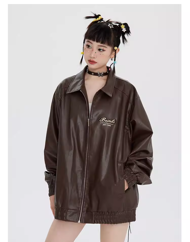 - Áo khoác da công sở màu trơn thêu cổ điển kiểu Trung Quốc K787 dành cho nam và nữ, áo khoác phi công thiết kế