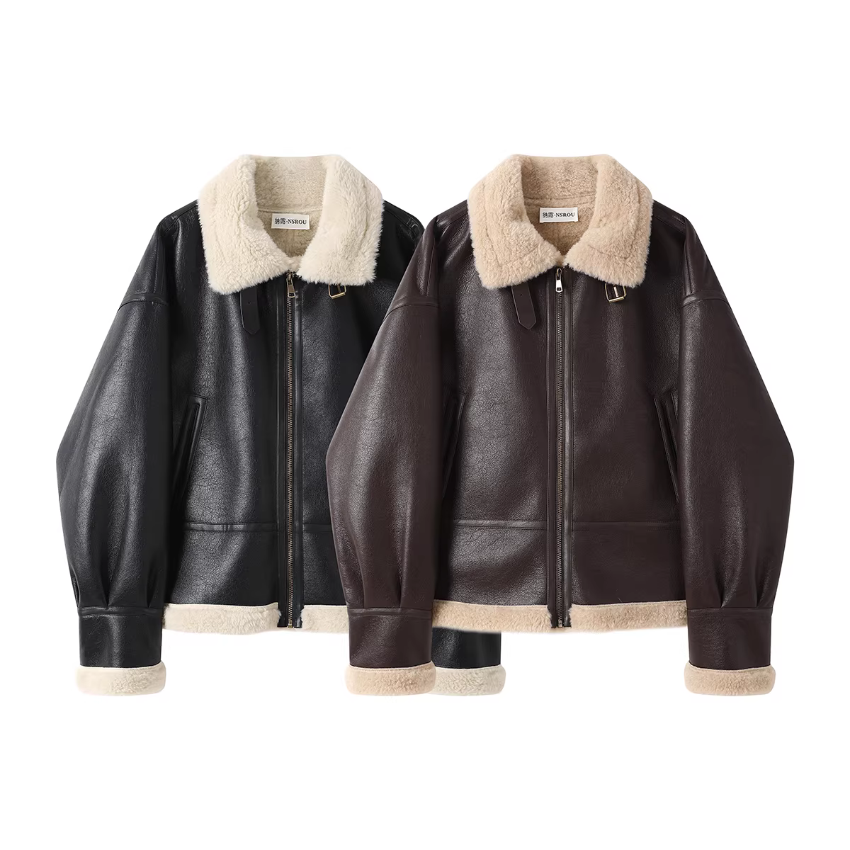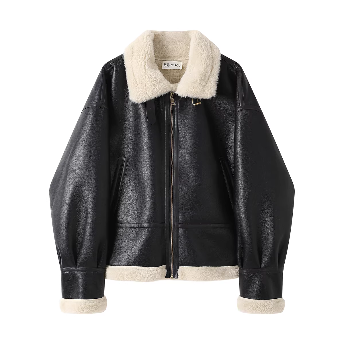 - Áo khoác da cừu cổ điển phong cách Hồng Kông dành cho nữ, áo khoác ngắn thời trang mùa đông