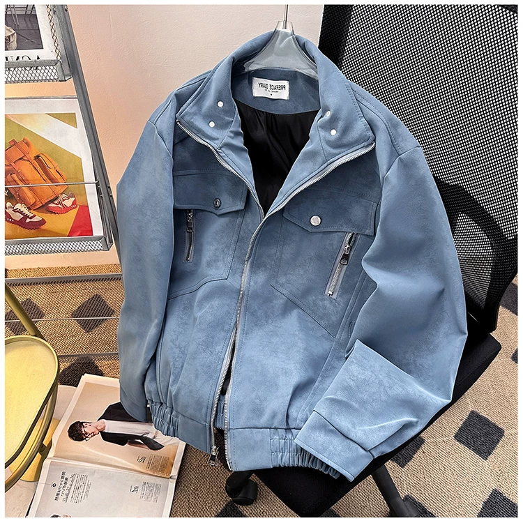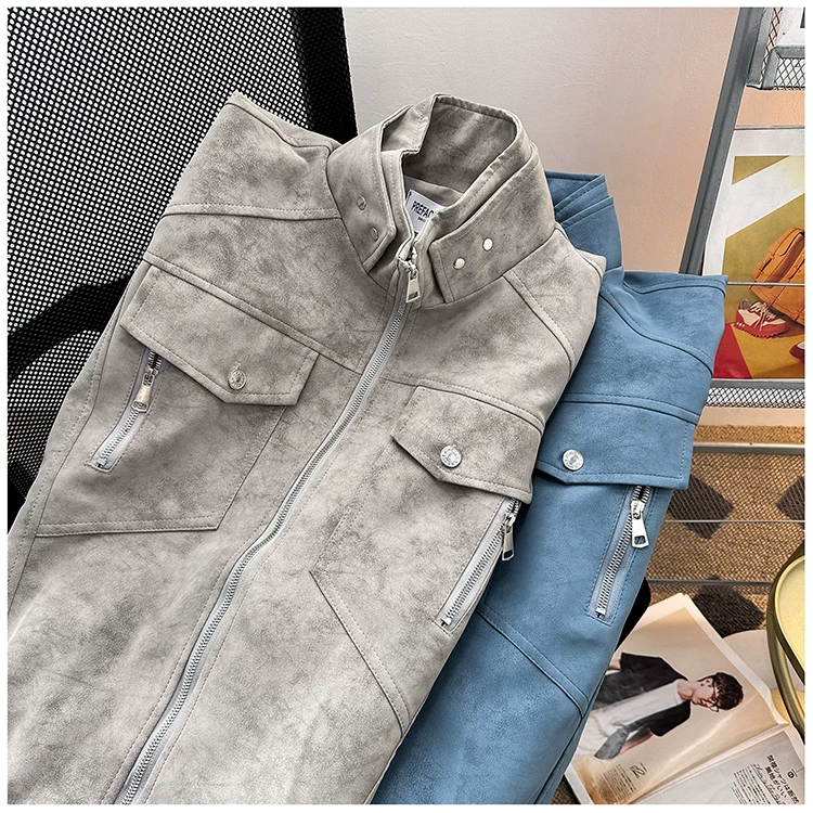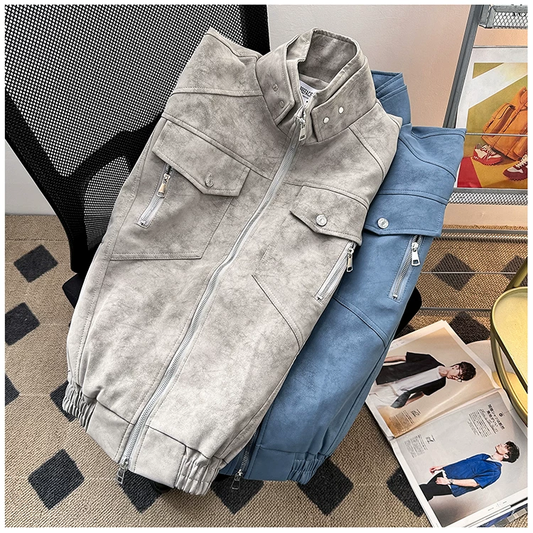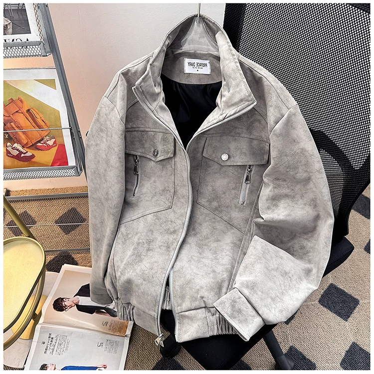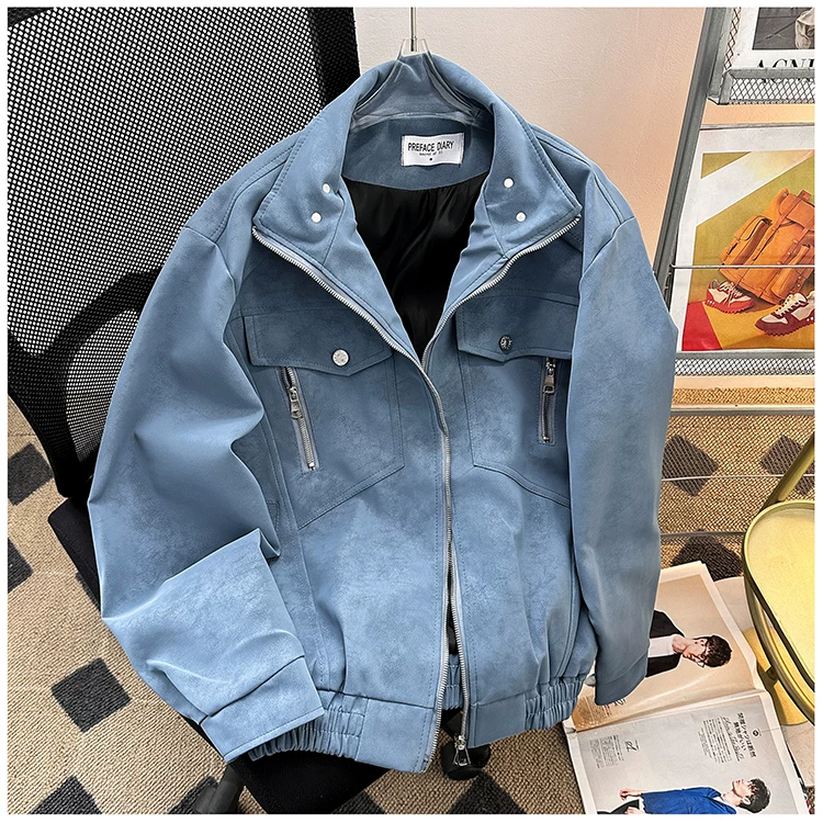 - Áo khoác da kiểu Mỹ dành cho nam, mùa xuân, cao cấp, áo khoác da PU cá tính và thời trang, áo khoác Harrington cổ đứng kiểu dáng gọn gàng.