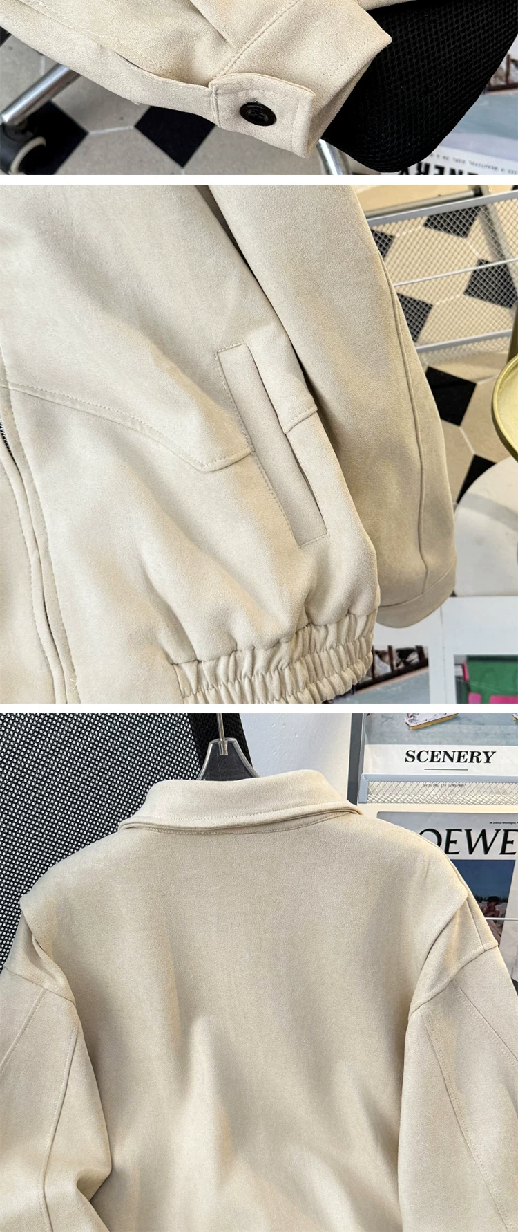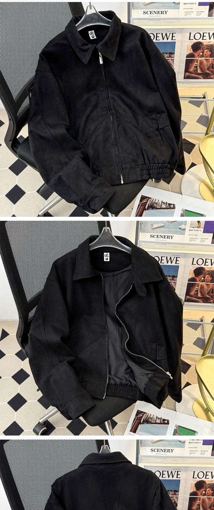 - Áo khoác da lộn nam, kiểu dáng ôm sát, áo khoác bomber đa năng mùa thu, áo khoác ngoài thời trang, phong cách thường ngày.
