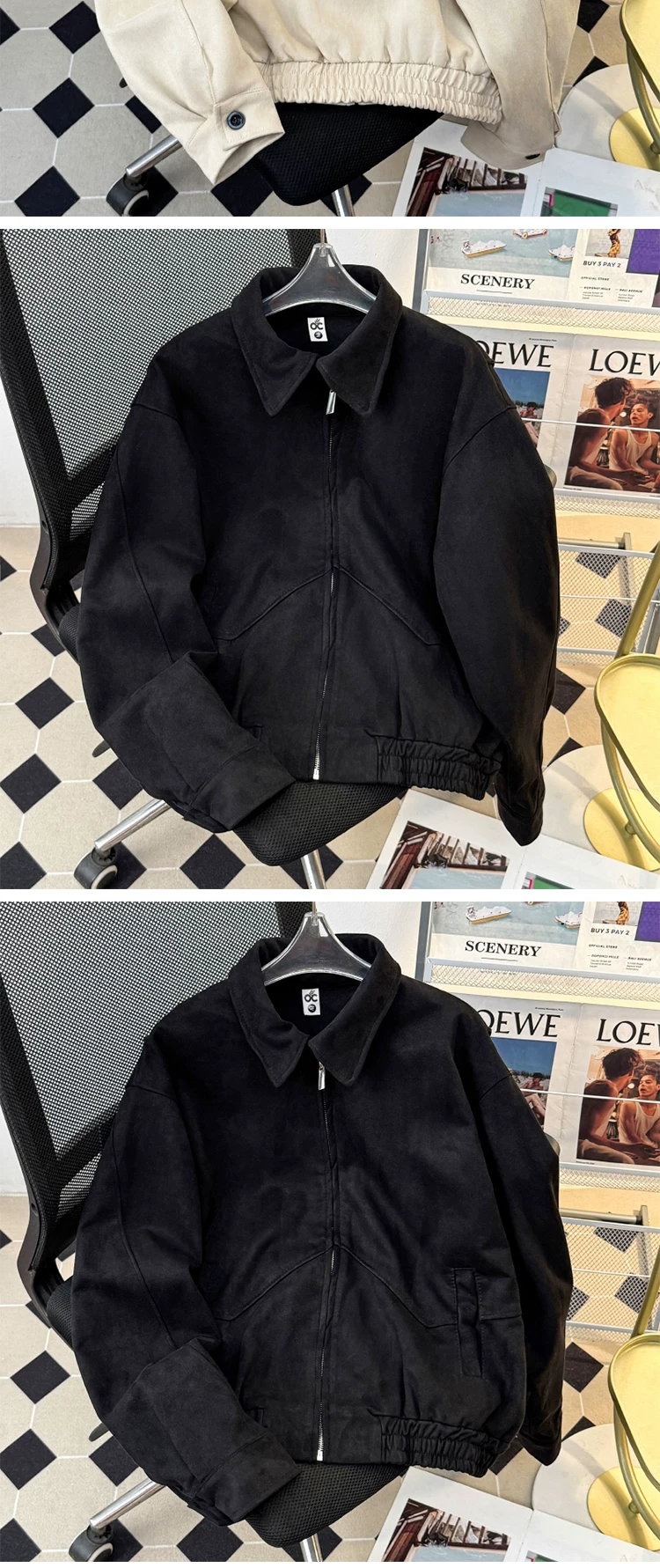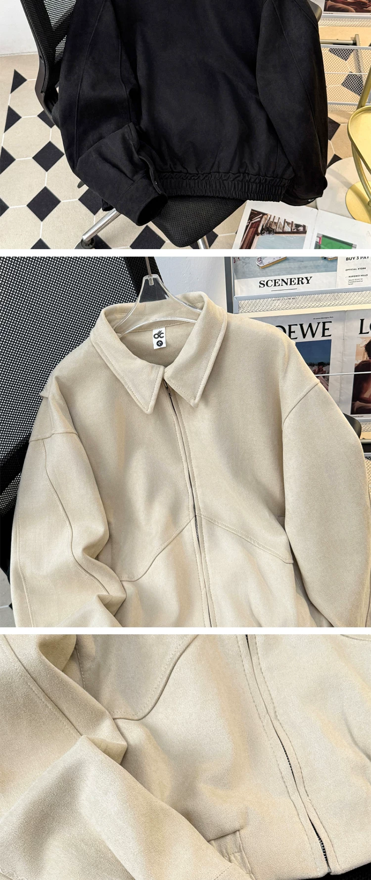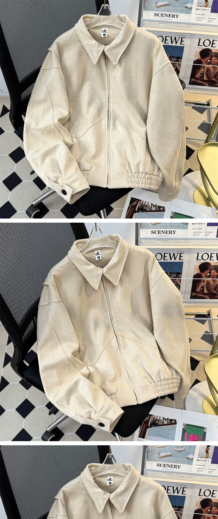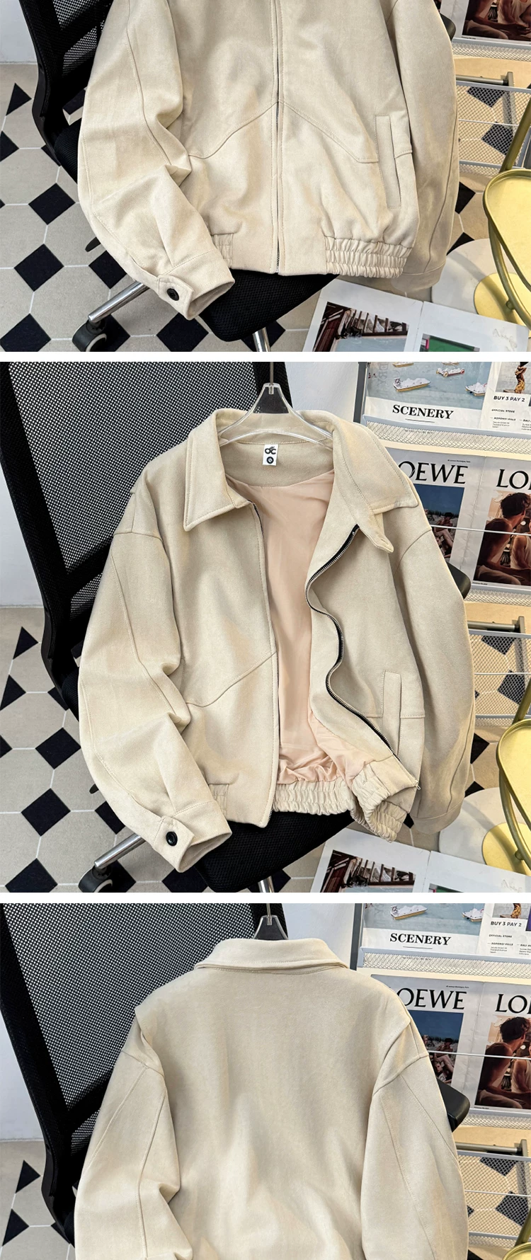 Áo khoác da lộn nam, kiểu dáng ôm sát, áo khoác bomber đa năng mùa thu, áo khoác ngoài thời trang, phong cách thường ngày.