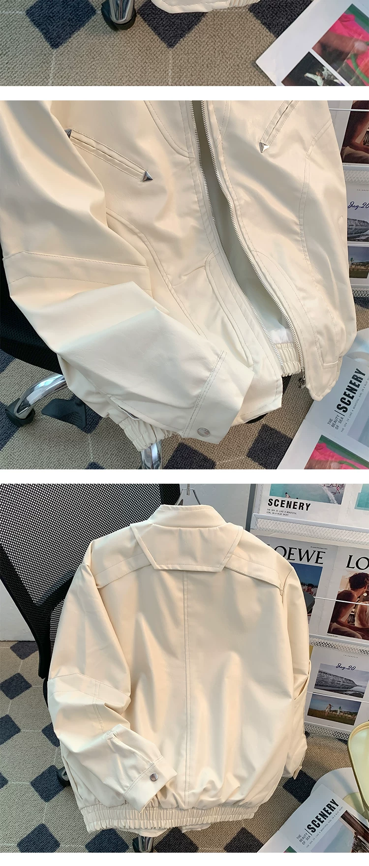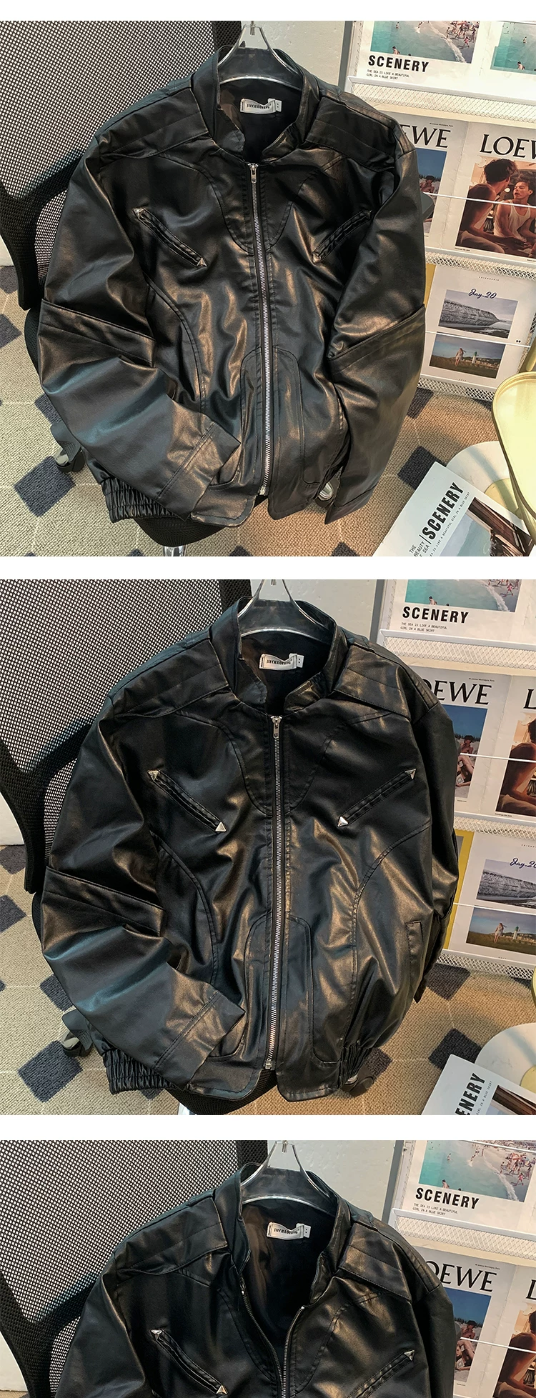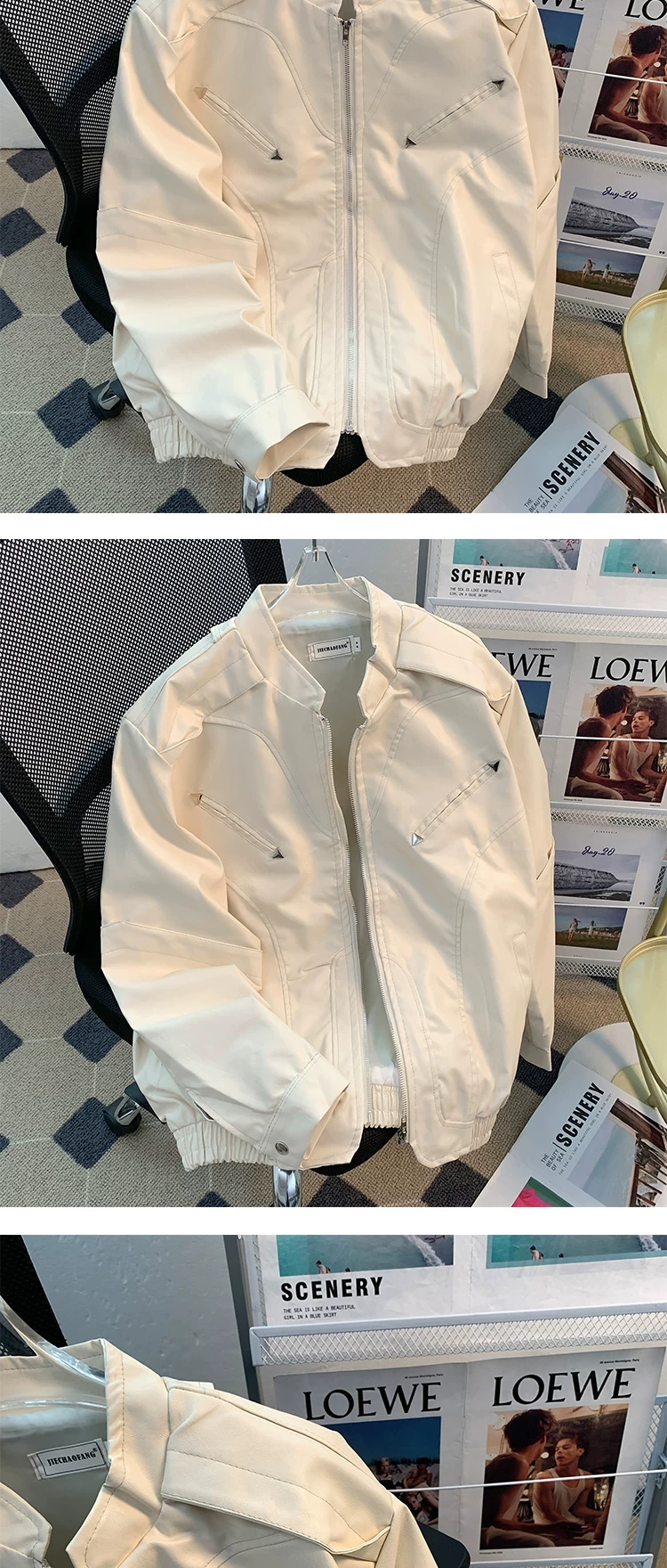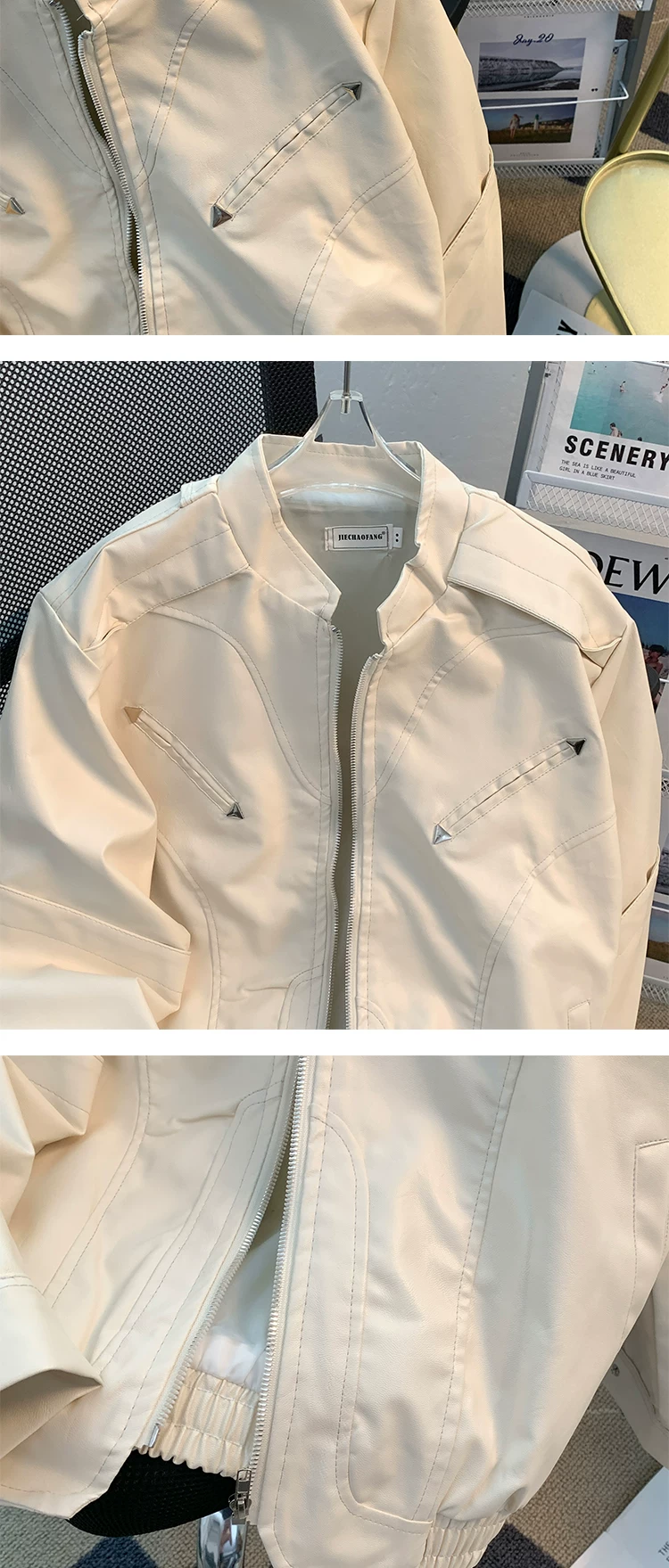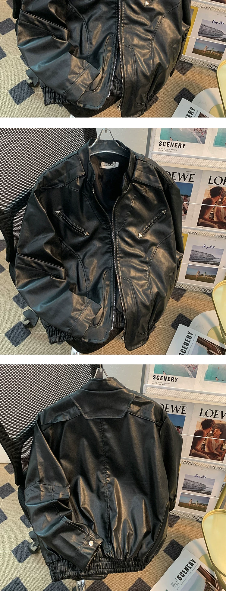 - Áo khoác da mô tô đường phố cao cấp dành cho nam, mùa xuân thu, thiết kế khóa kéo, kiểu dáng rộng rãi phong cách Mỹ, áo khoác cleanfit thời thượng.