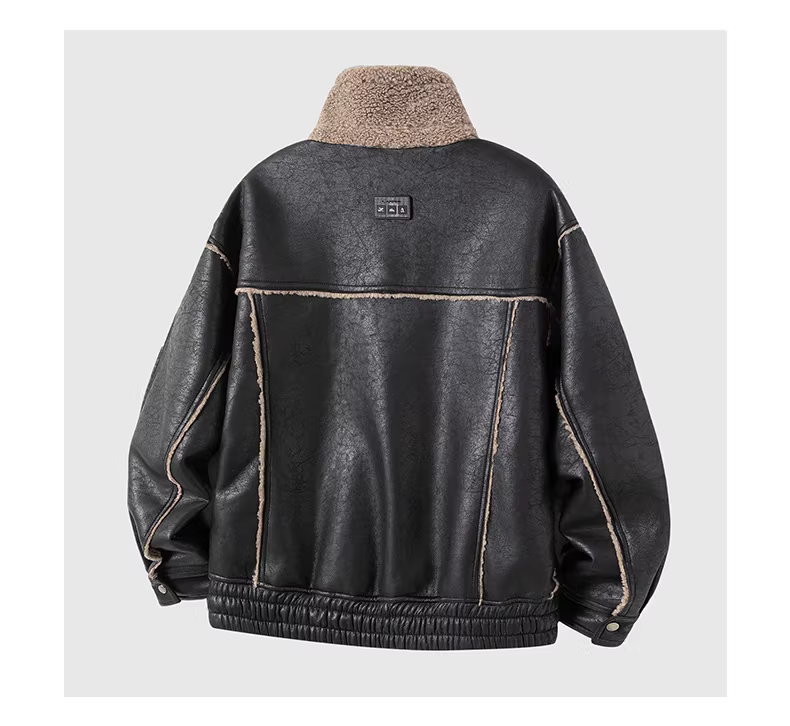 - Áo khoác da nam mùa đông có lớp lót lông cừu, áo khoác biker cổ điển ngắn dày dặn