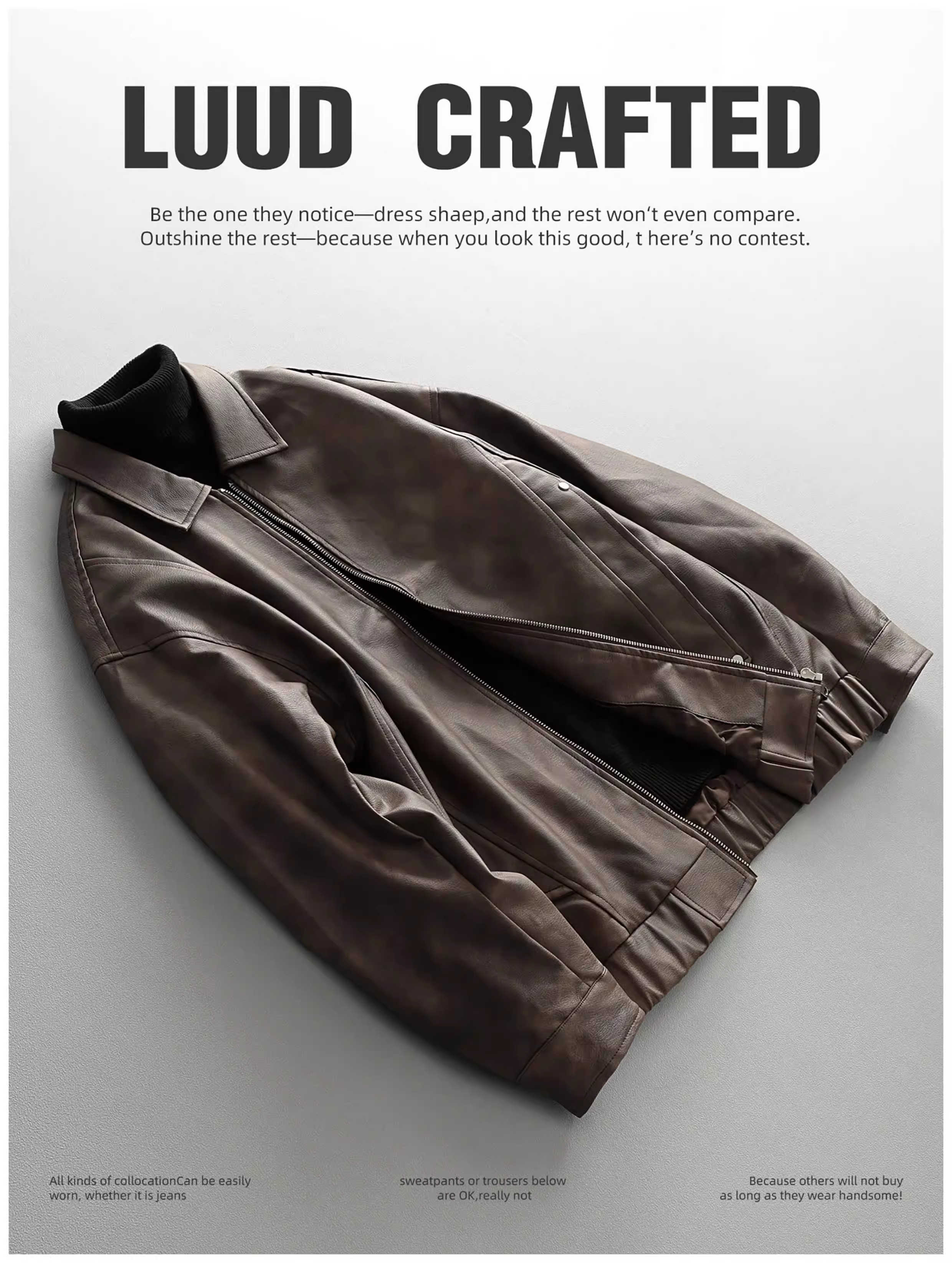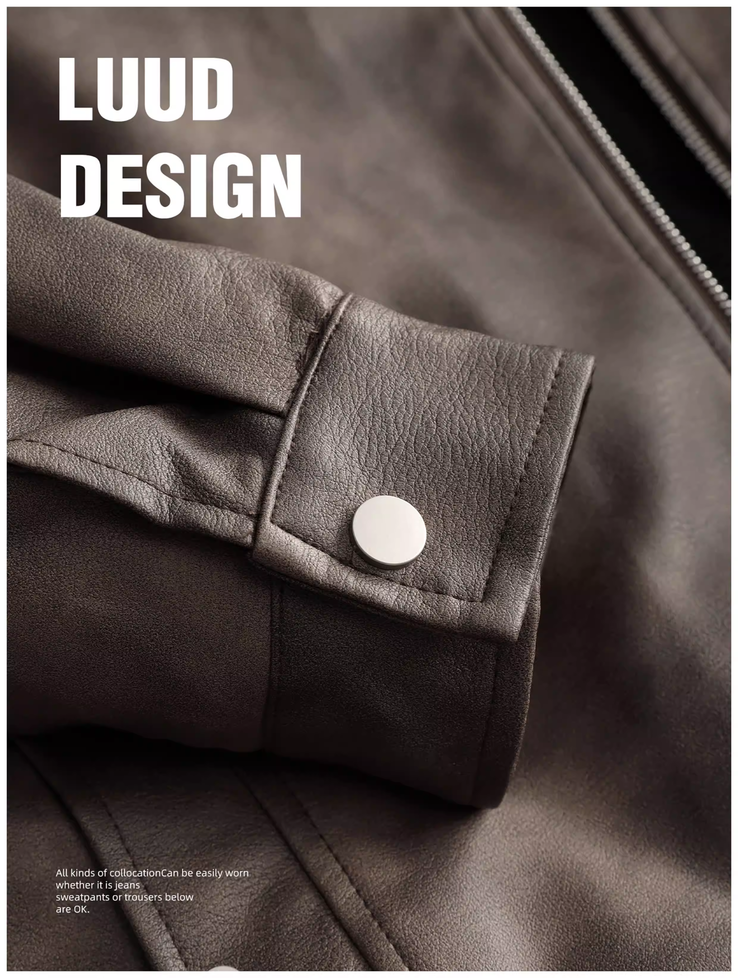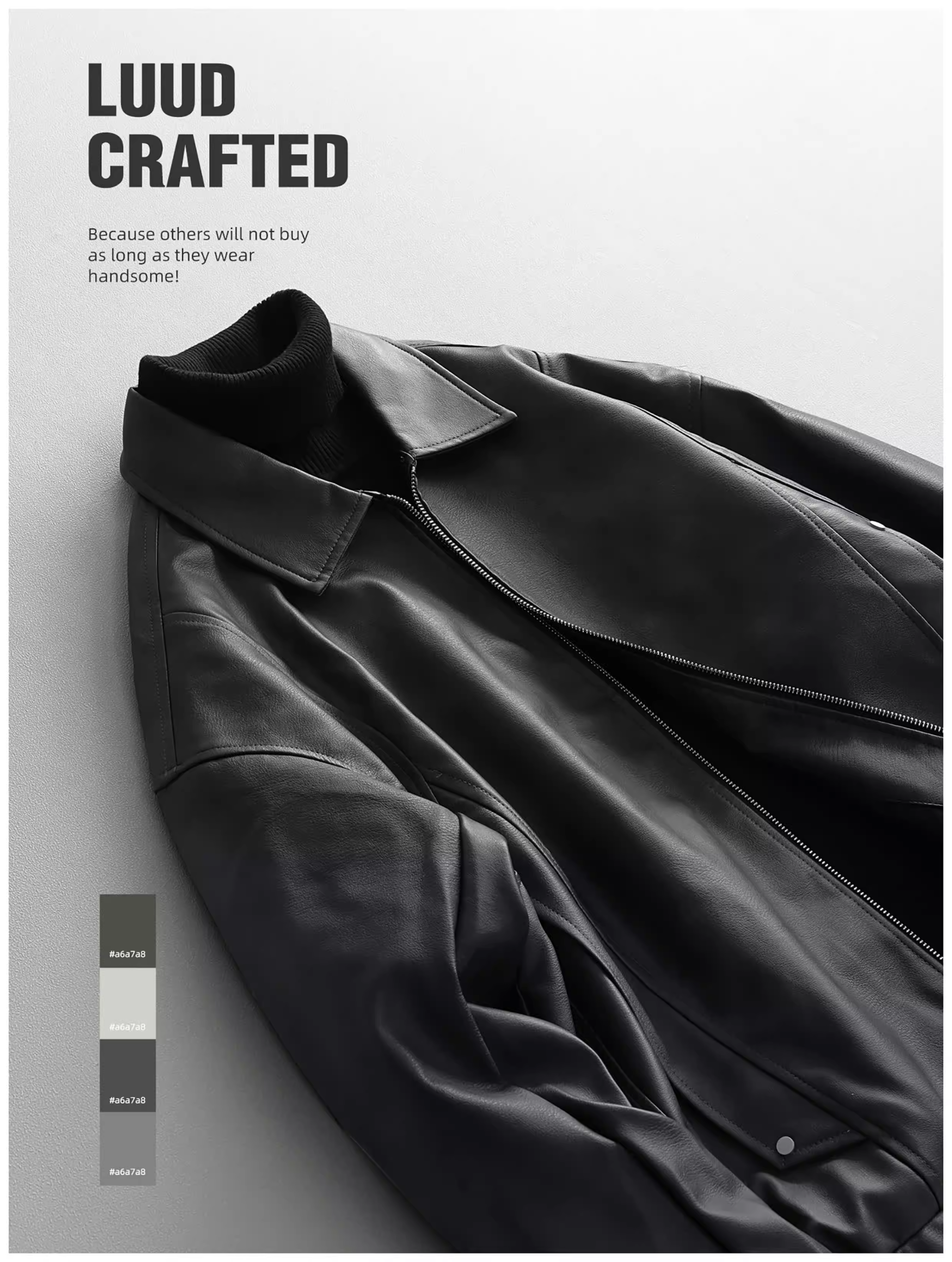 - Áo khoác da nam thiết kế gradient LUUD, cá tính và sành điệu, áo khoác da PU cổ Melard, áo khoác biker ngắn