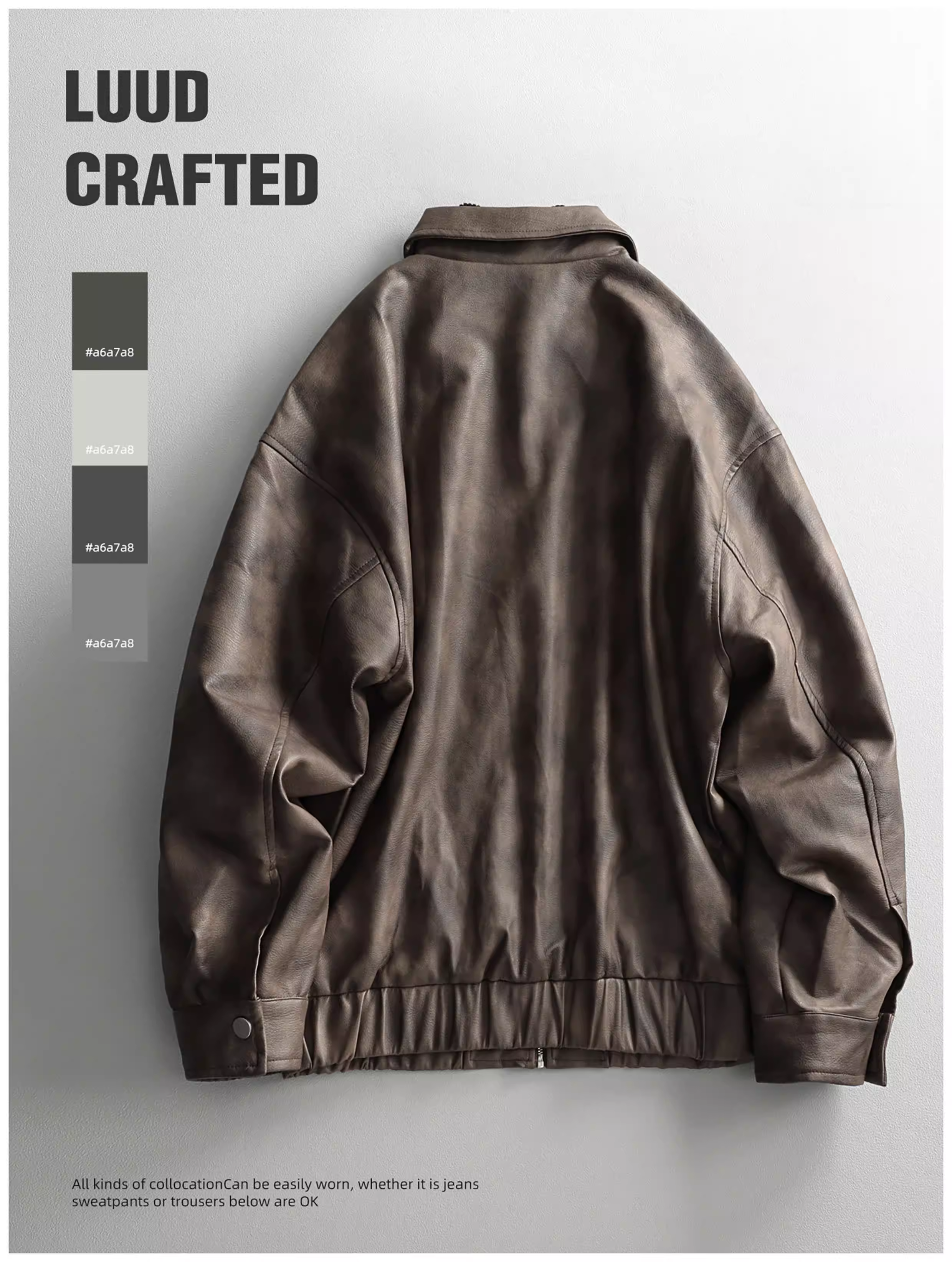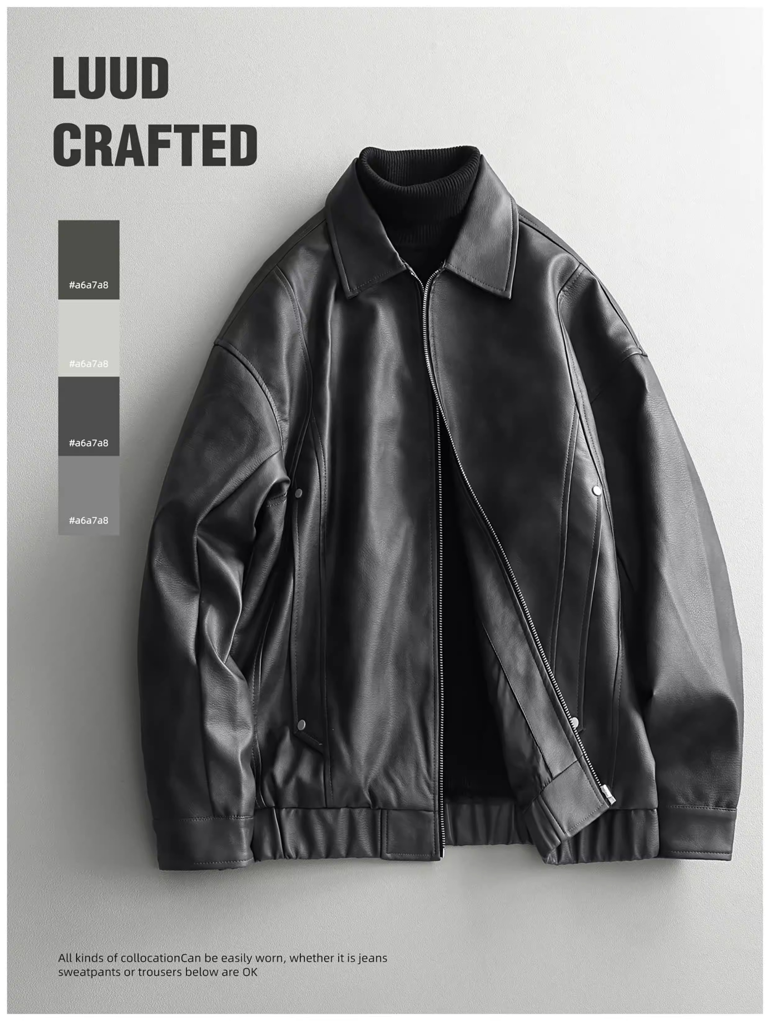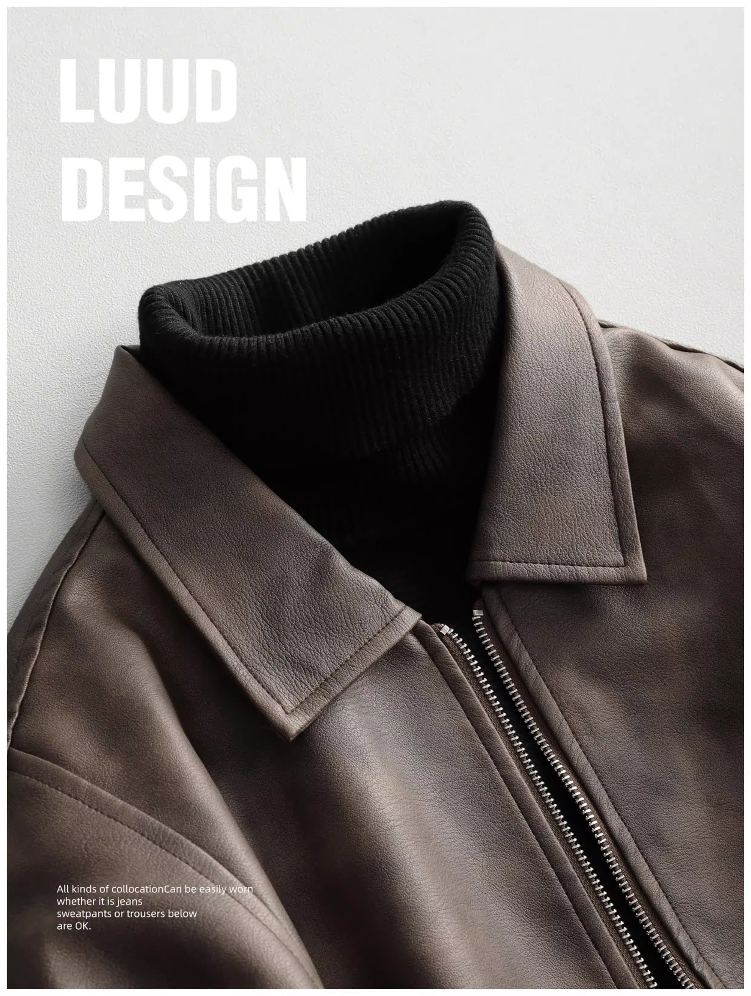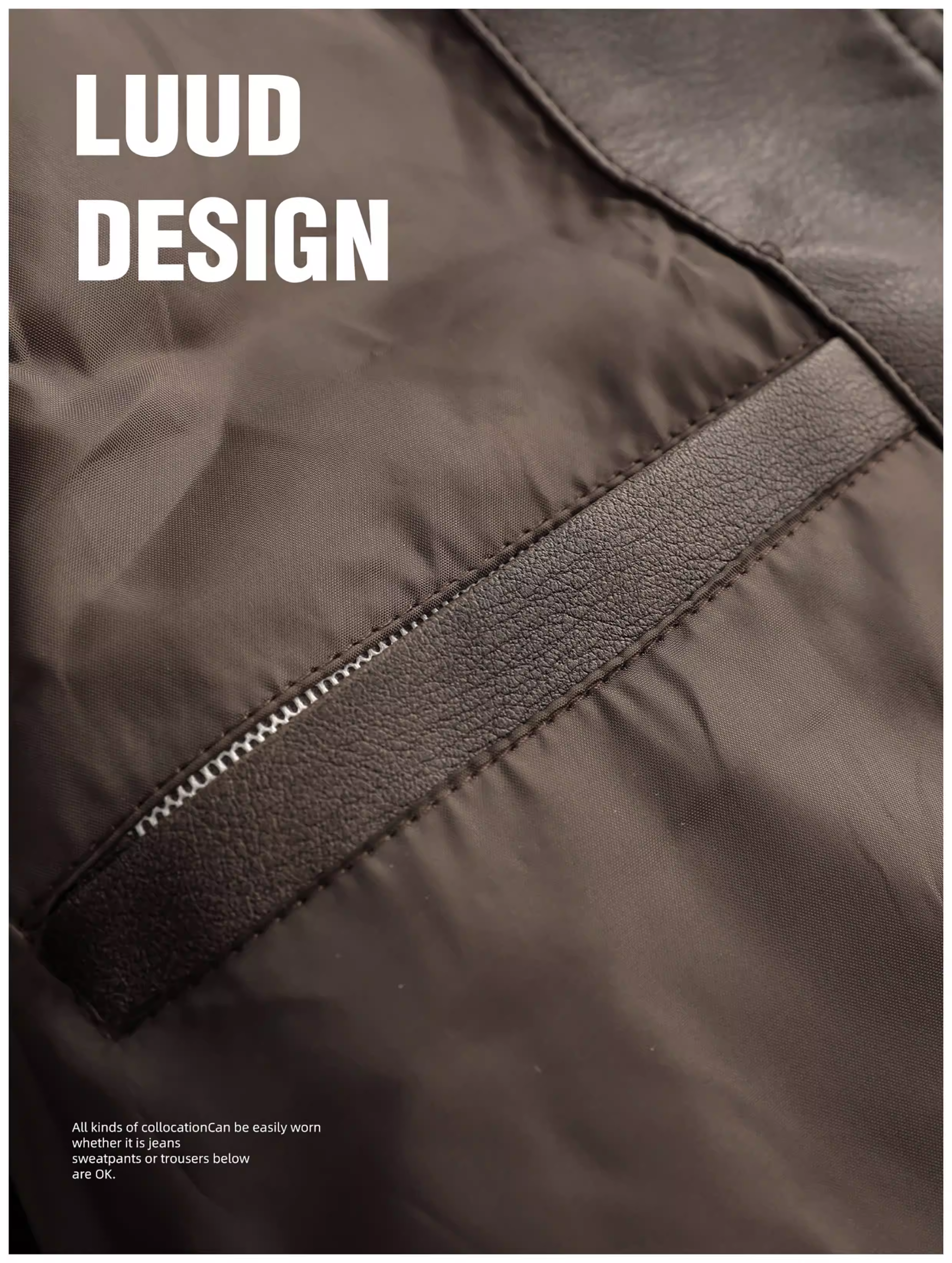 - Áo khoác da nam thiết kế gradient LUUD, cá tính và sành điệu, áo khoác da PU cổ Melard, áo khoác biker ngắn