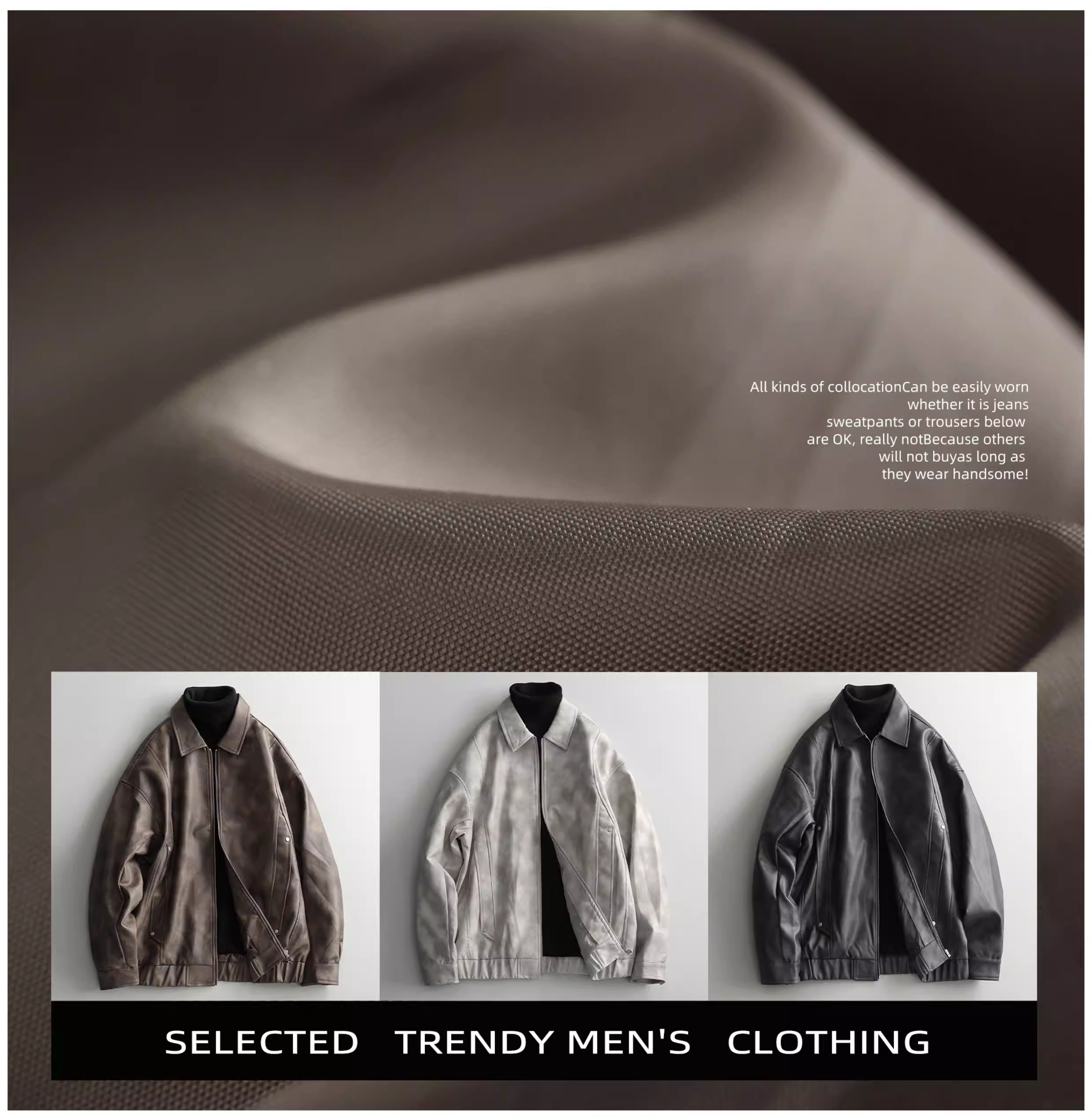Áo khoác da nam thiết kế gradient LUUD, cá tính và sành điệu, áo khoác da PU cổ Melard, áo khoác biker ngắn