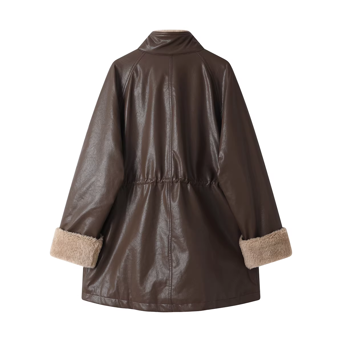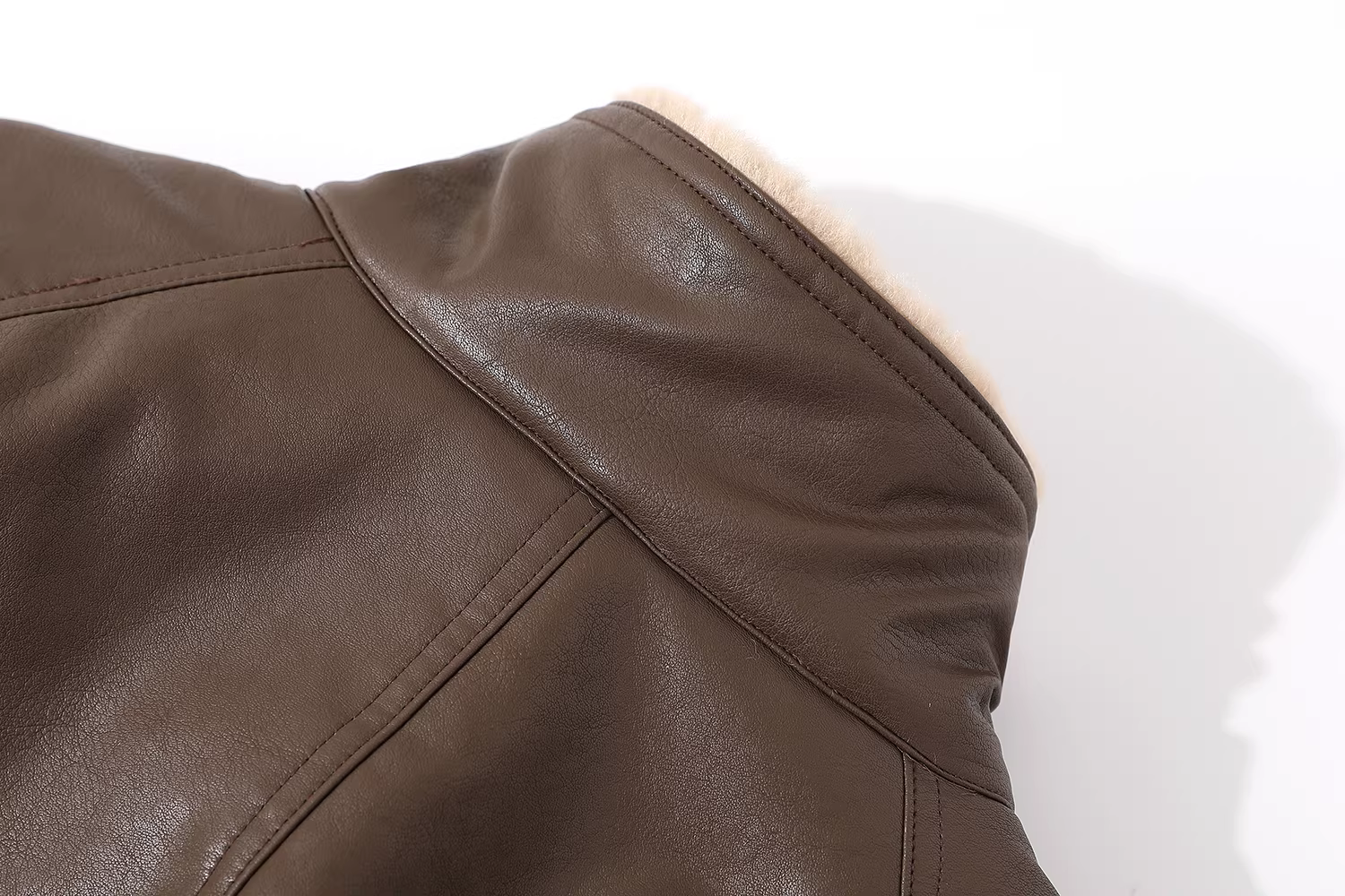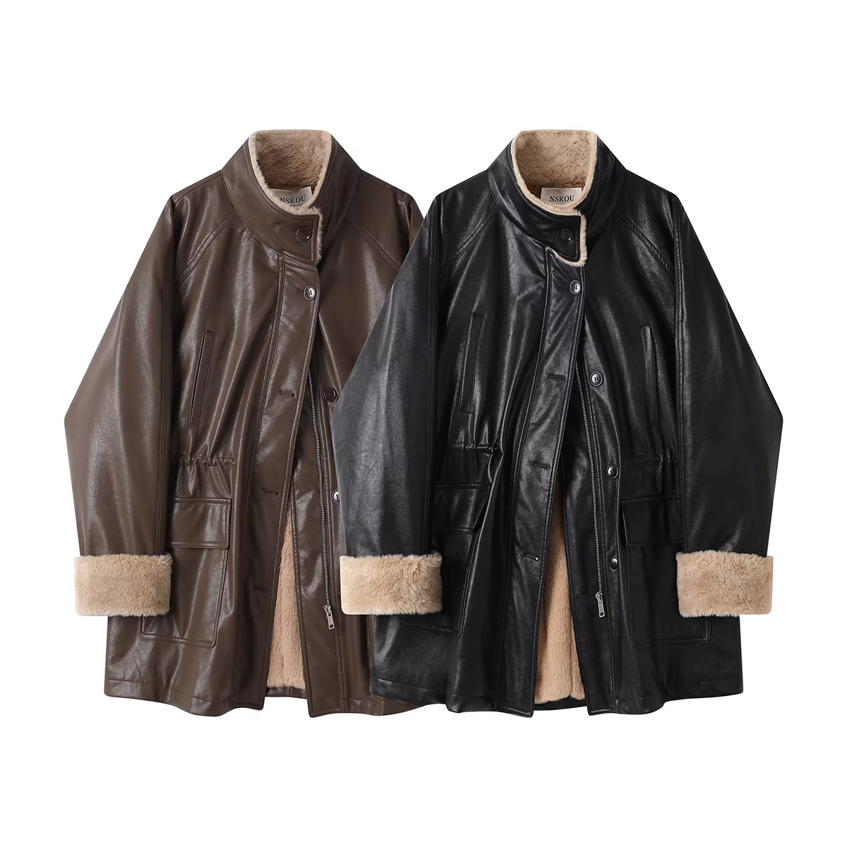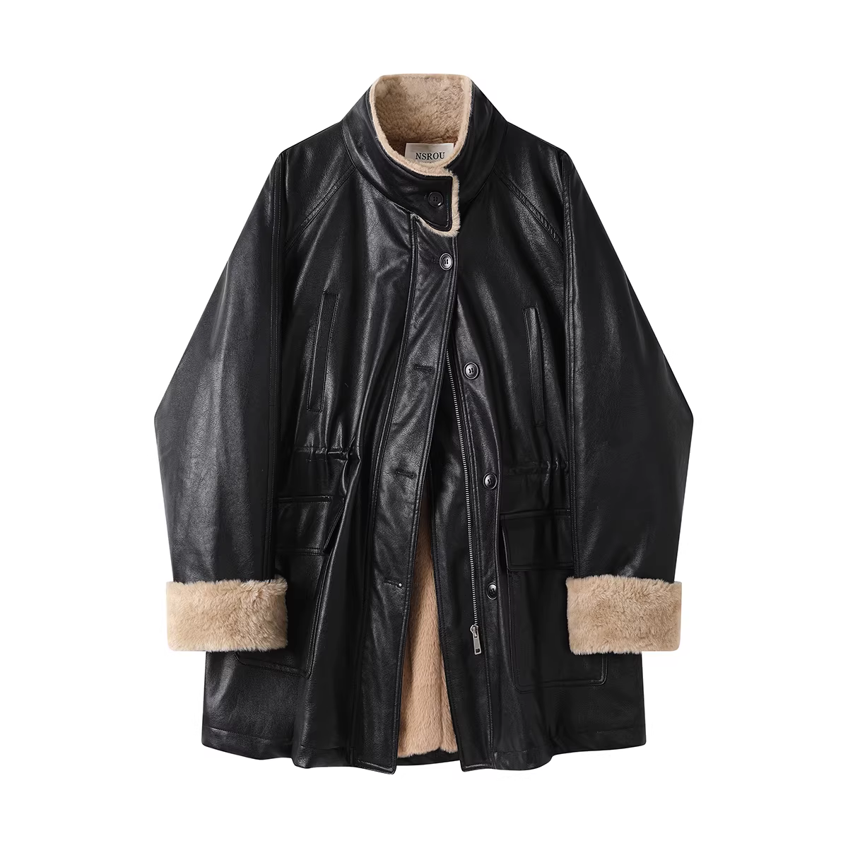 - Áo khoác da phong cách retro kiểu Mỹ dành cho nữ, áo khoác cổ đứng có lót lông cừu mùa thu đông mới phổ biến