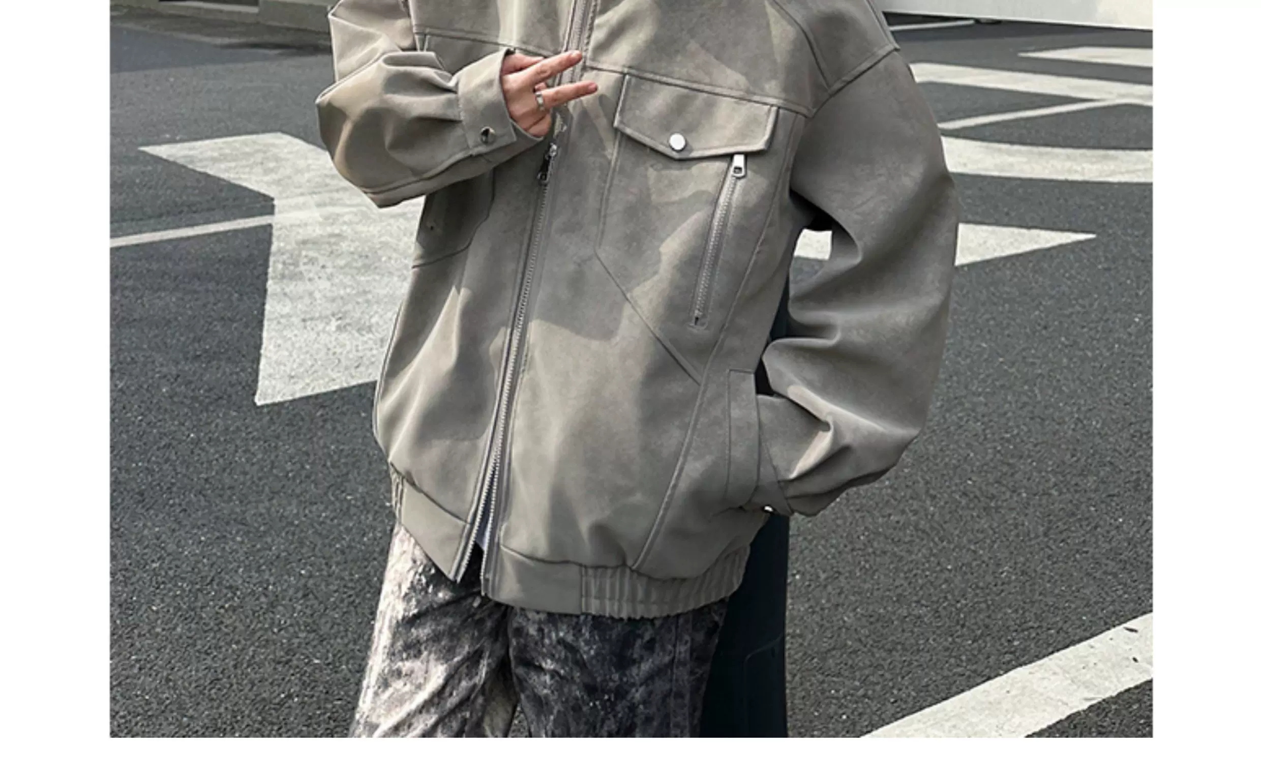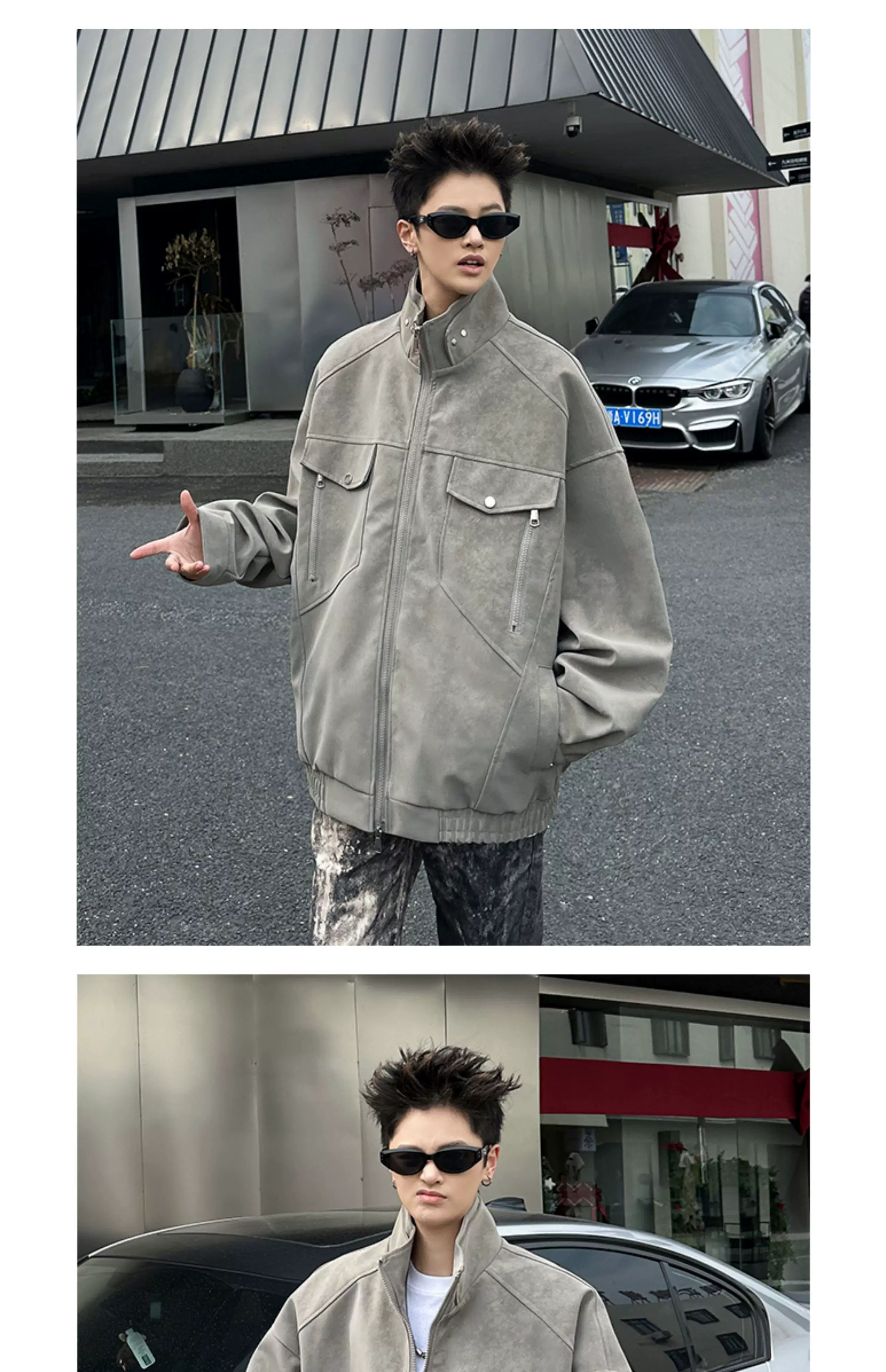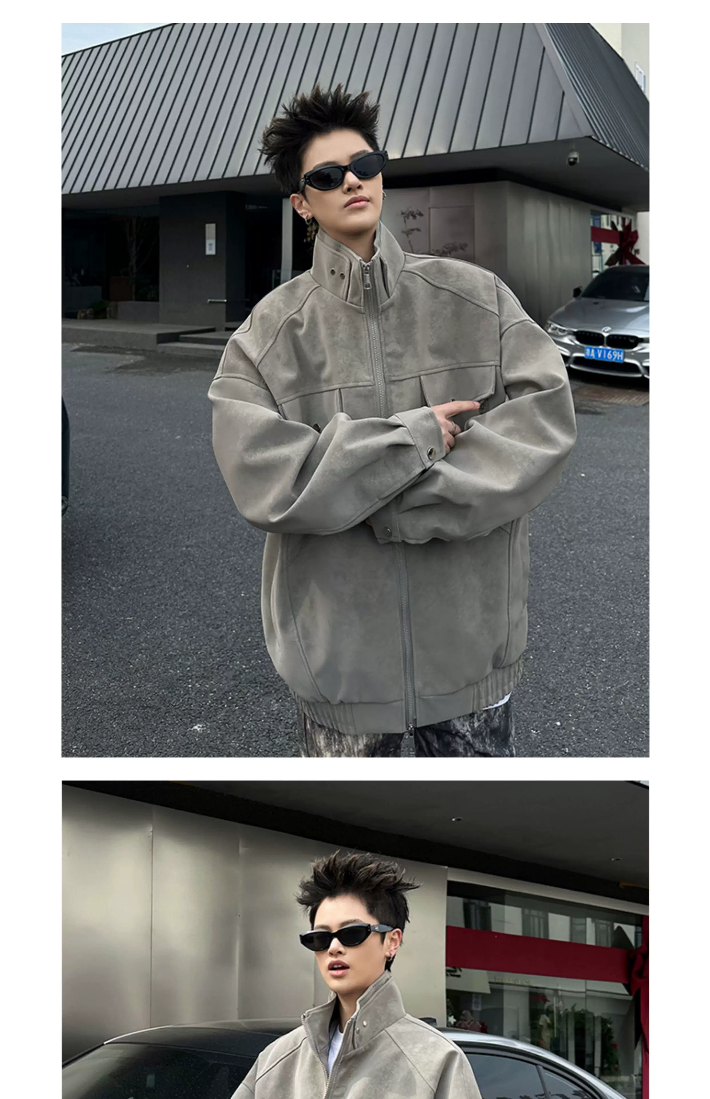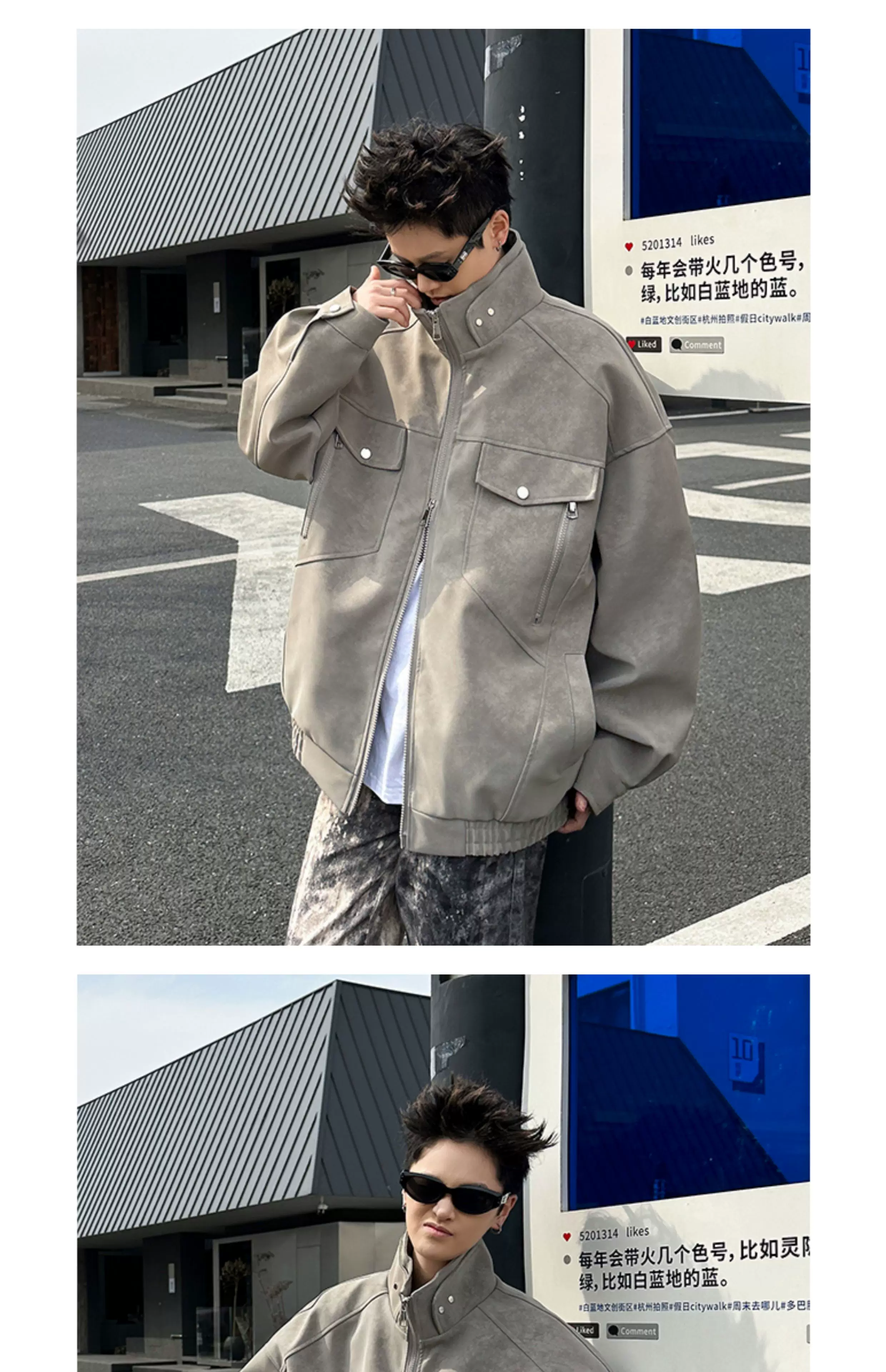 - Áo khoác da PU cao cấp dành cho nam, áo khoác da biker cổ đứng phong cách Mỹ cổ điển, áo khoác cặp đôi thương hiệu thời thượng dáng rộng dành cho mùa xuân và mùa thu.