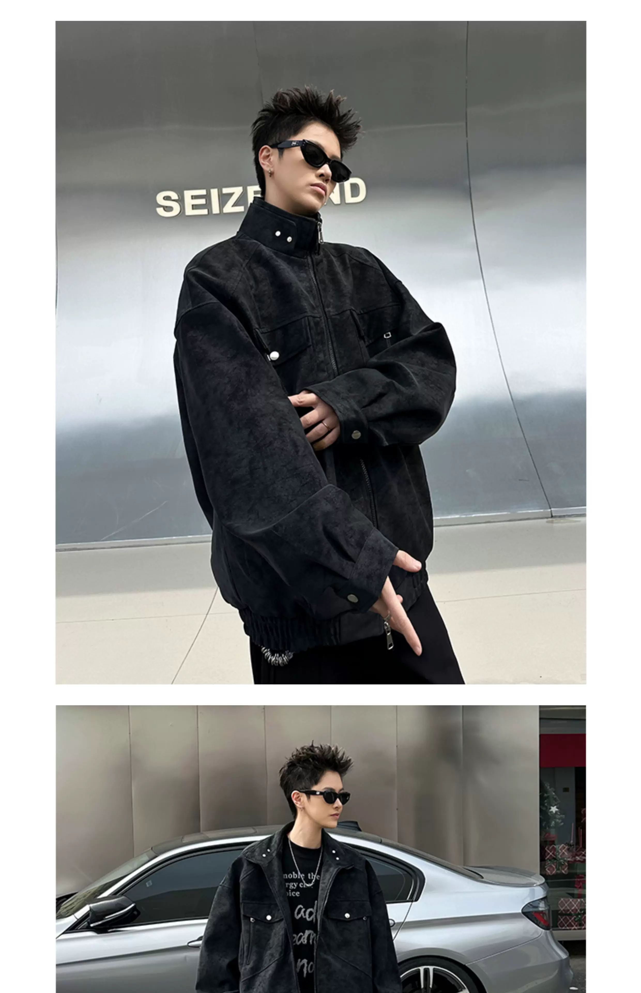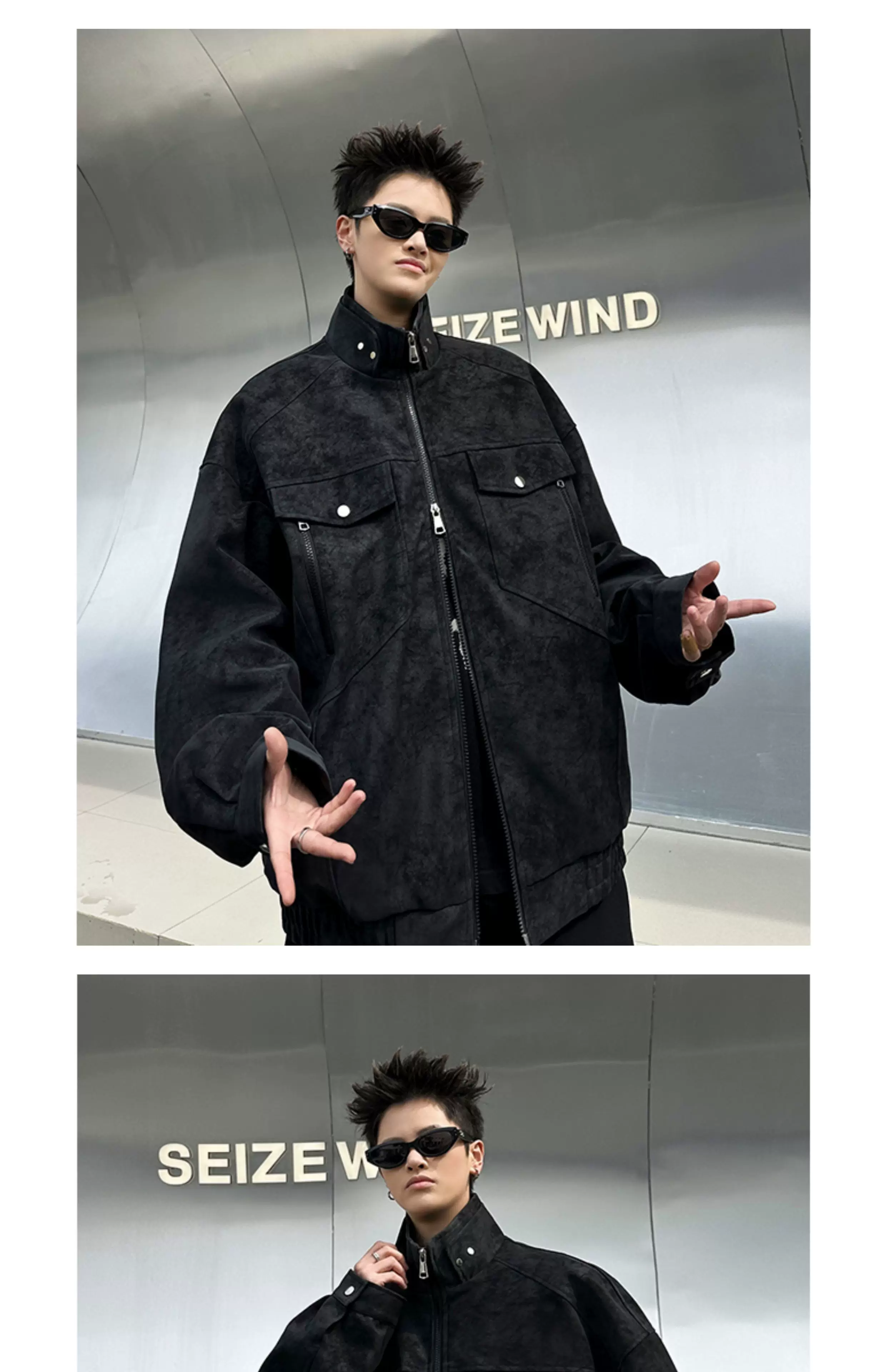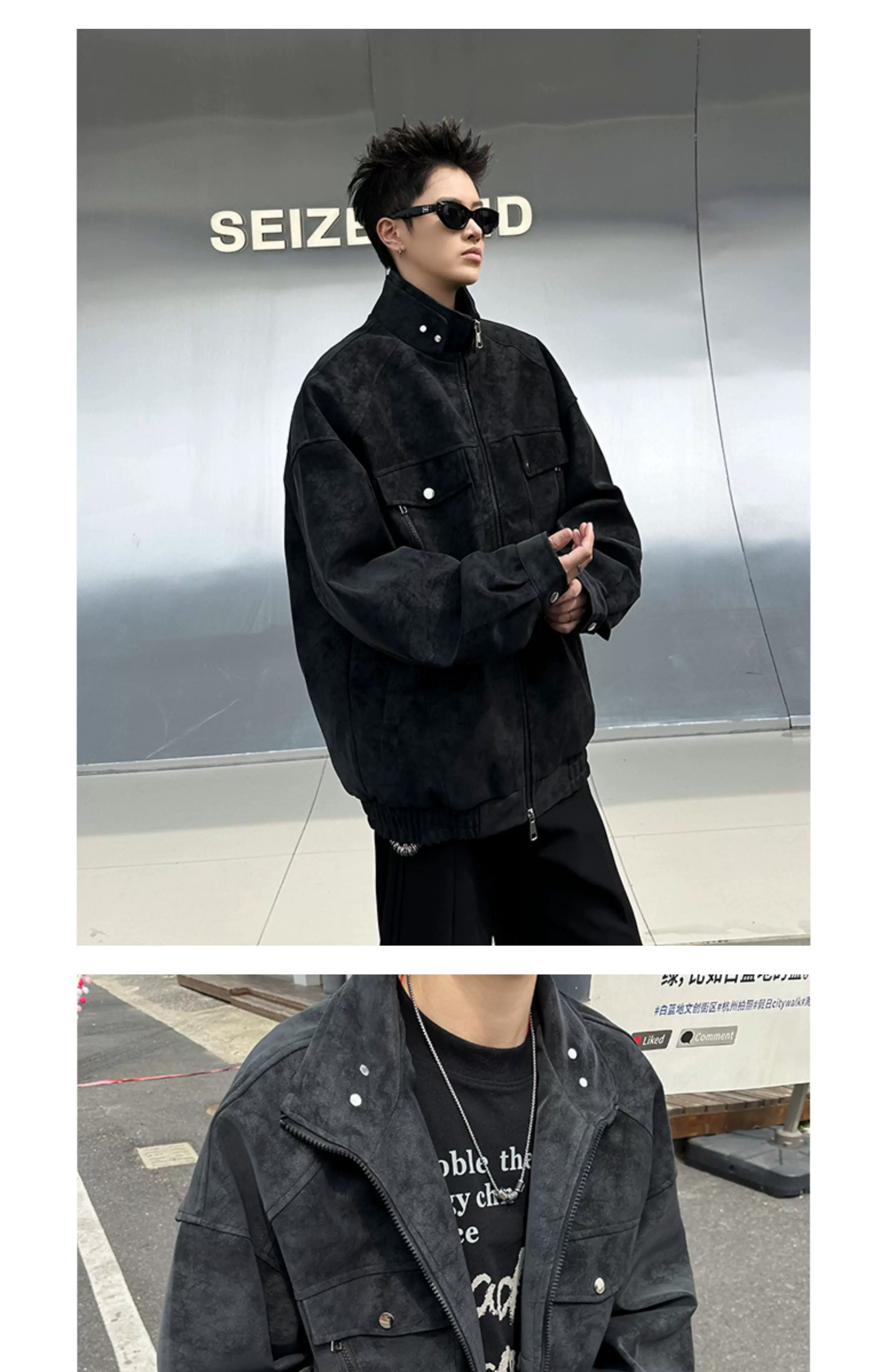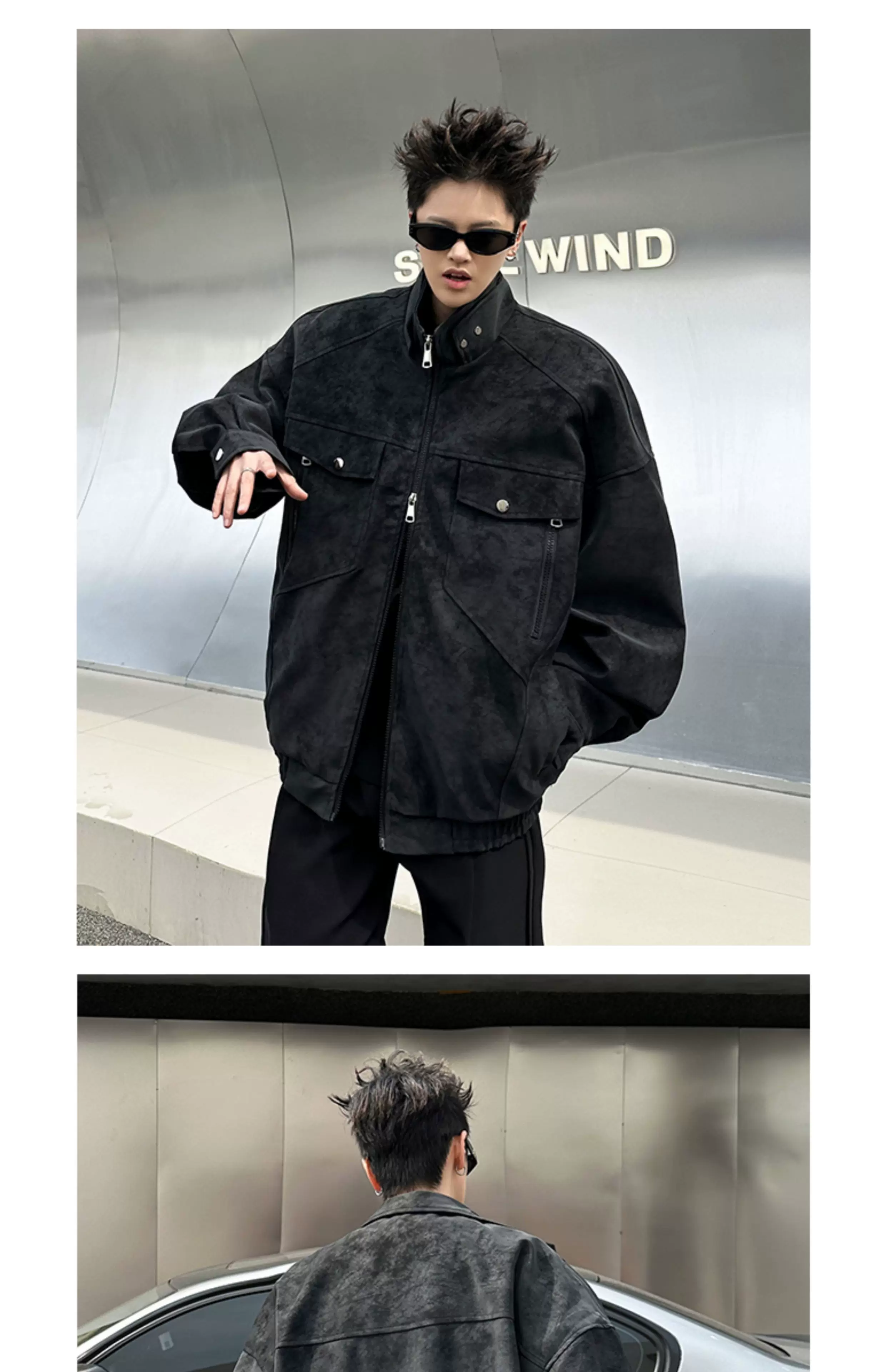 - Áo khoác da PU cao cấp dành cho nam, áo khoác da biker cổ đứng phong cách Mỹ cổ điển, áo khoác cặp đôi thương hiệu thời thượng dáng rộng dành cho mùa xuân và mùa thu.