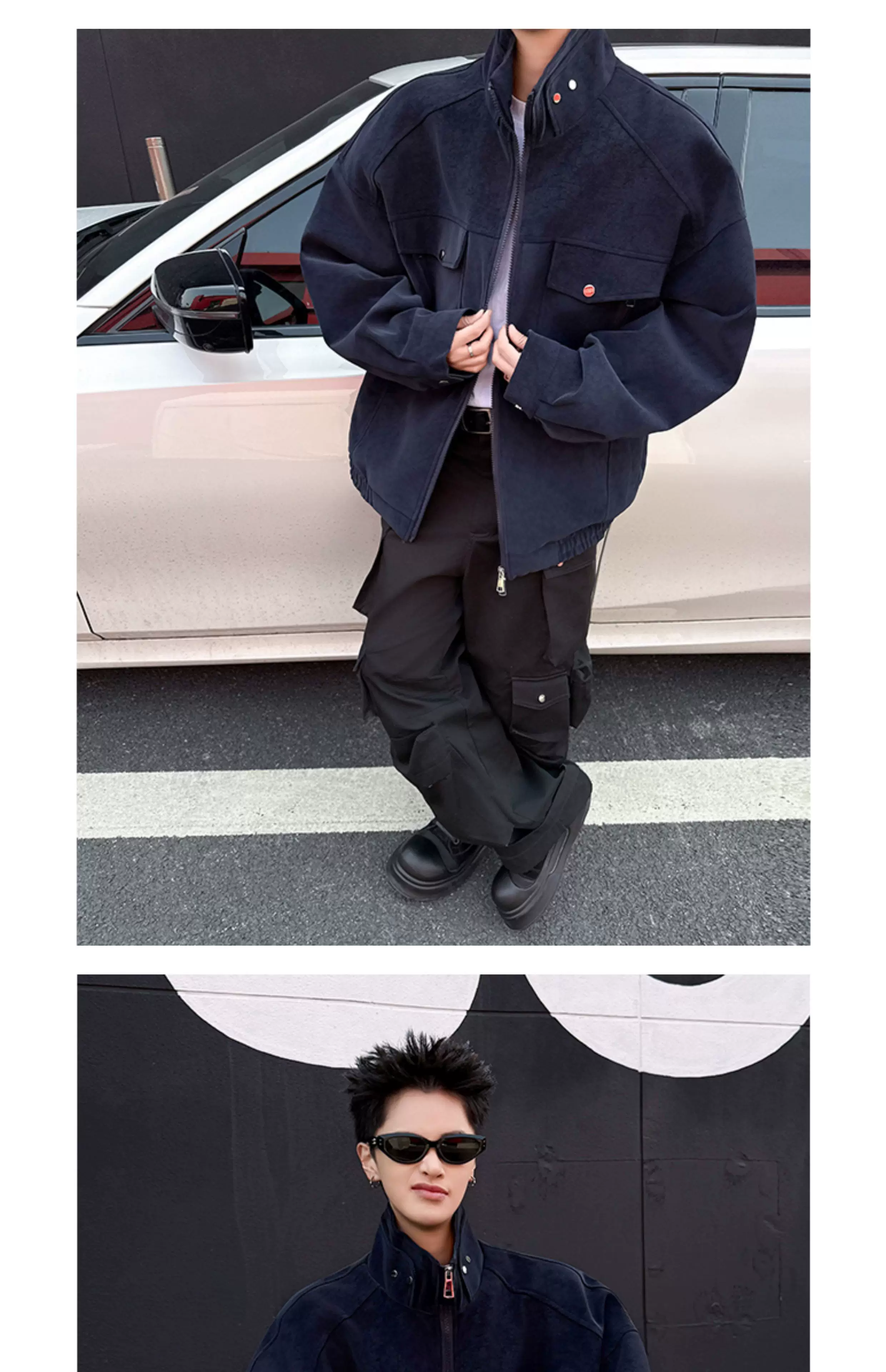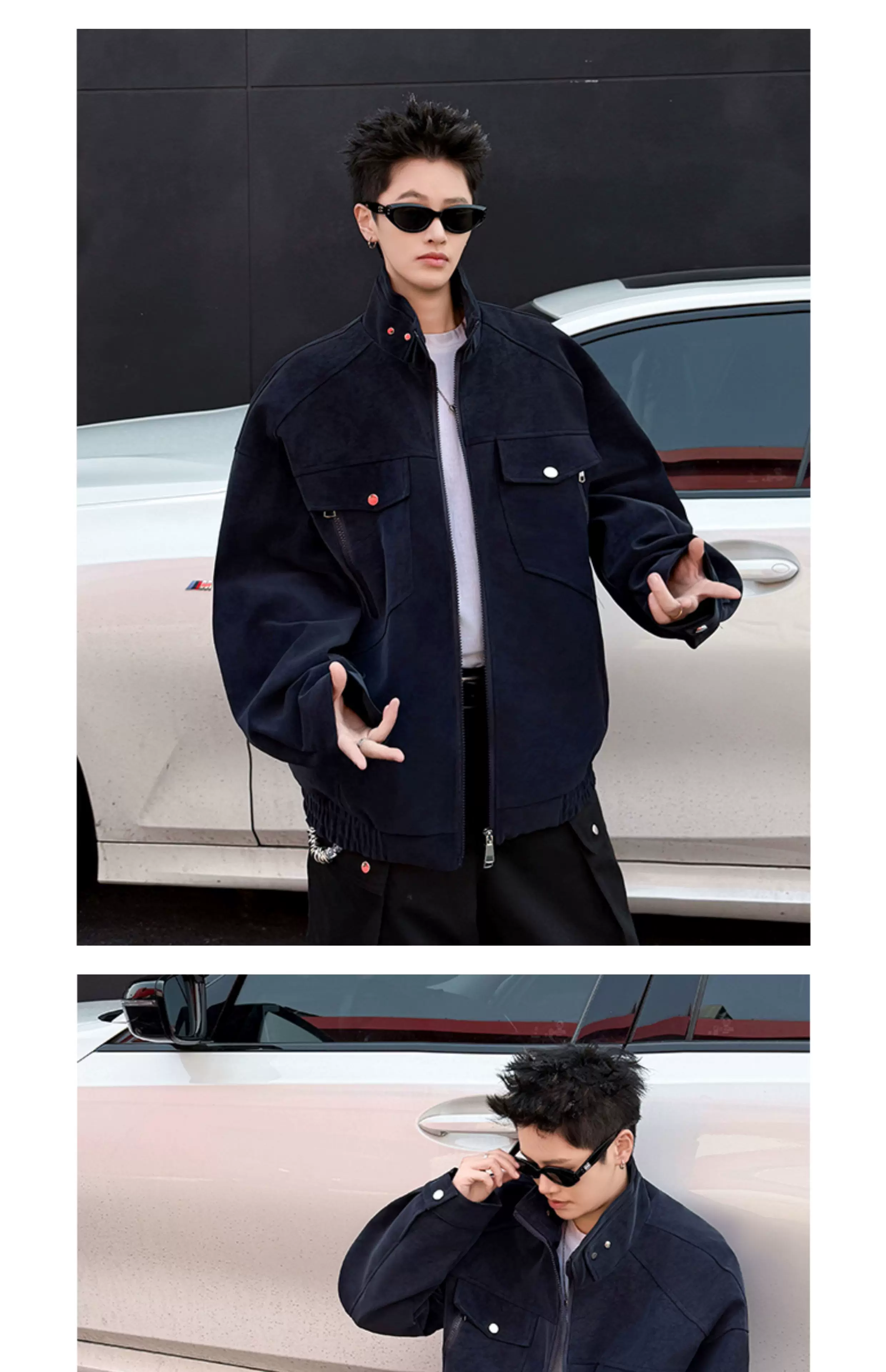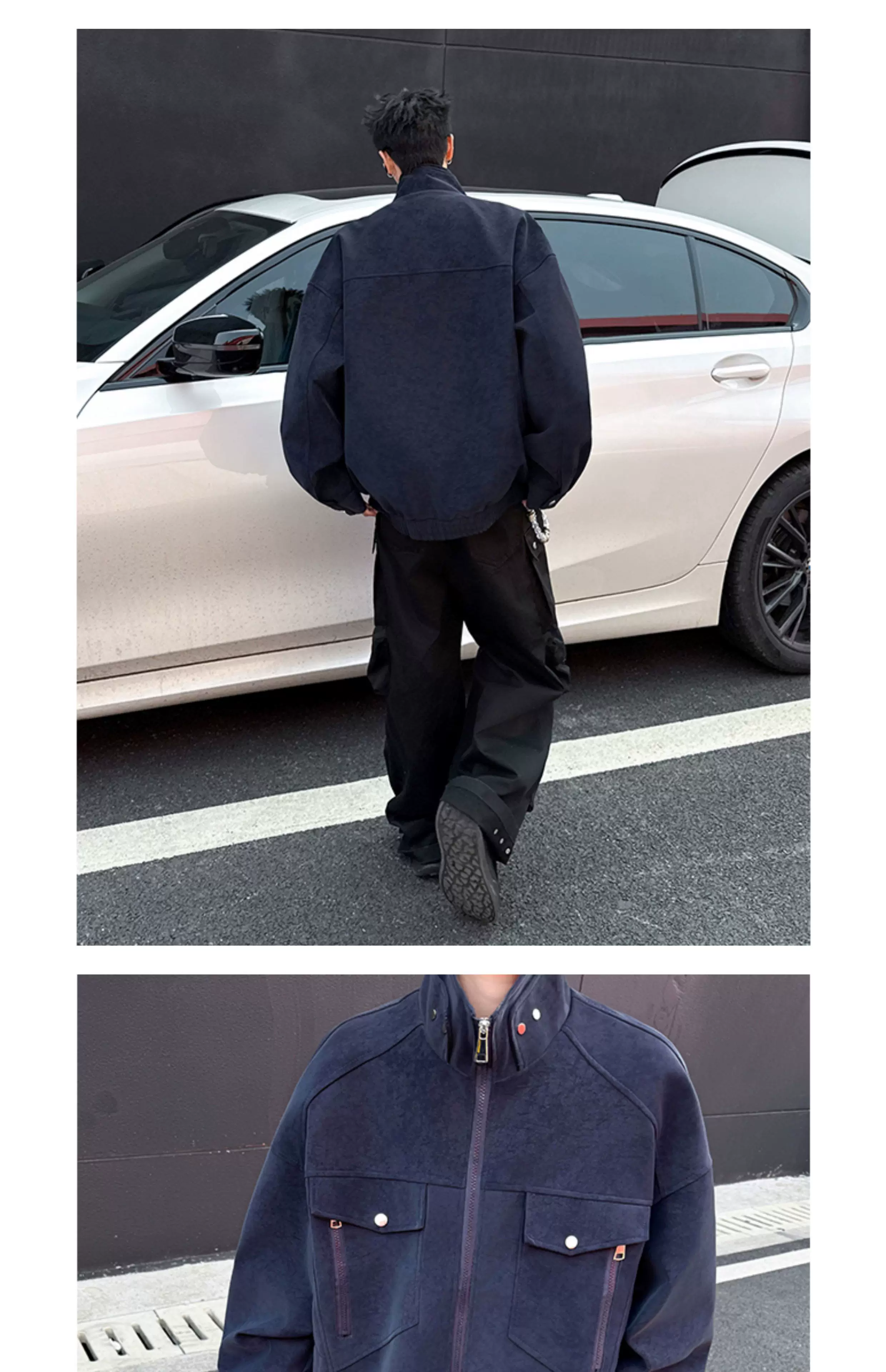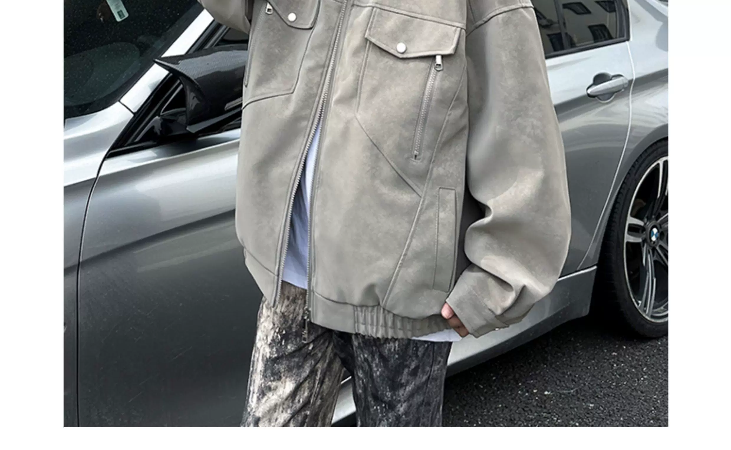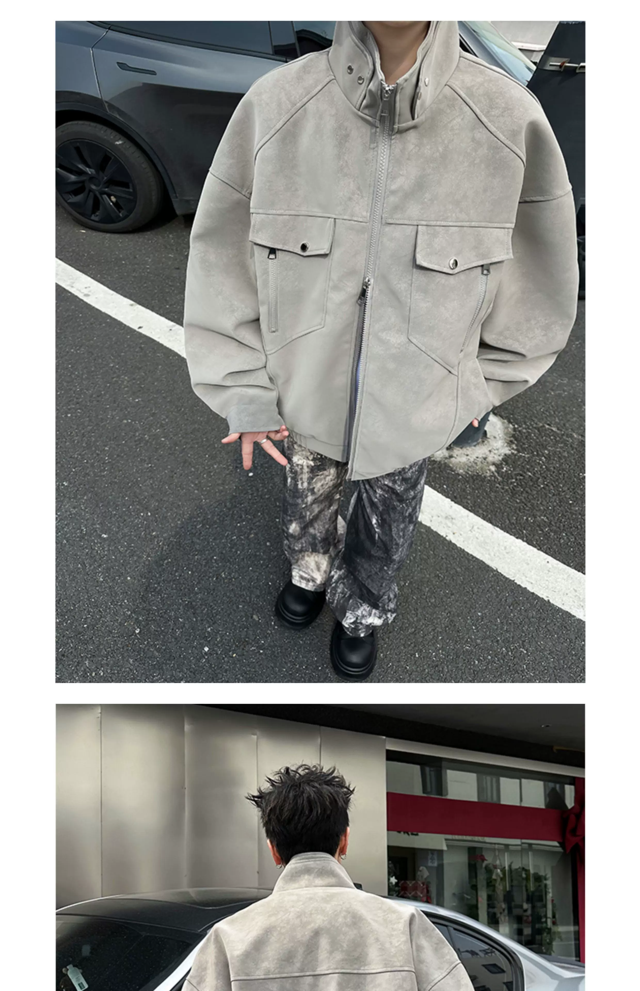 - Áo khoác da PU cao cấp dành cho nam, áo khoác da biker cổ đứng phong cách Mỹ cổ điển, áo khoác cặp đôi thương hiệu thời thượng dáng rộng dành cho mùa xuân và mùa thu.
