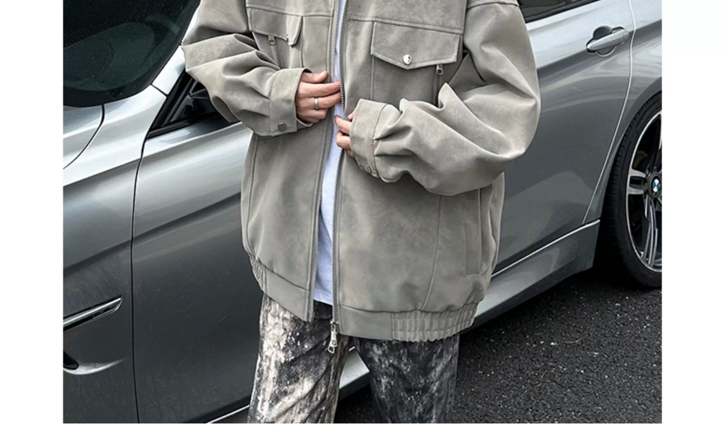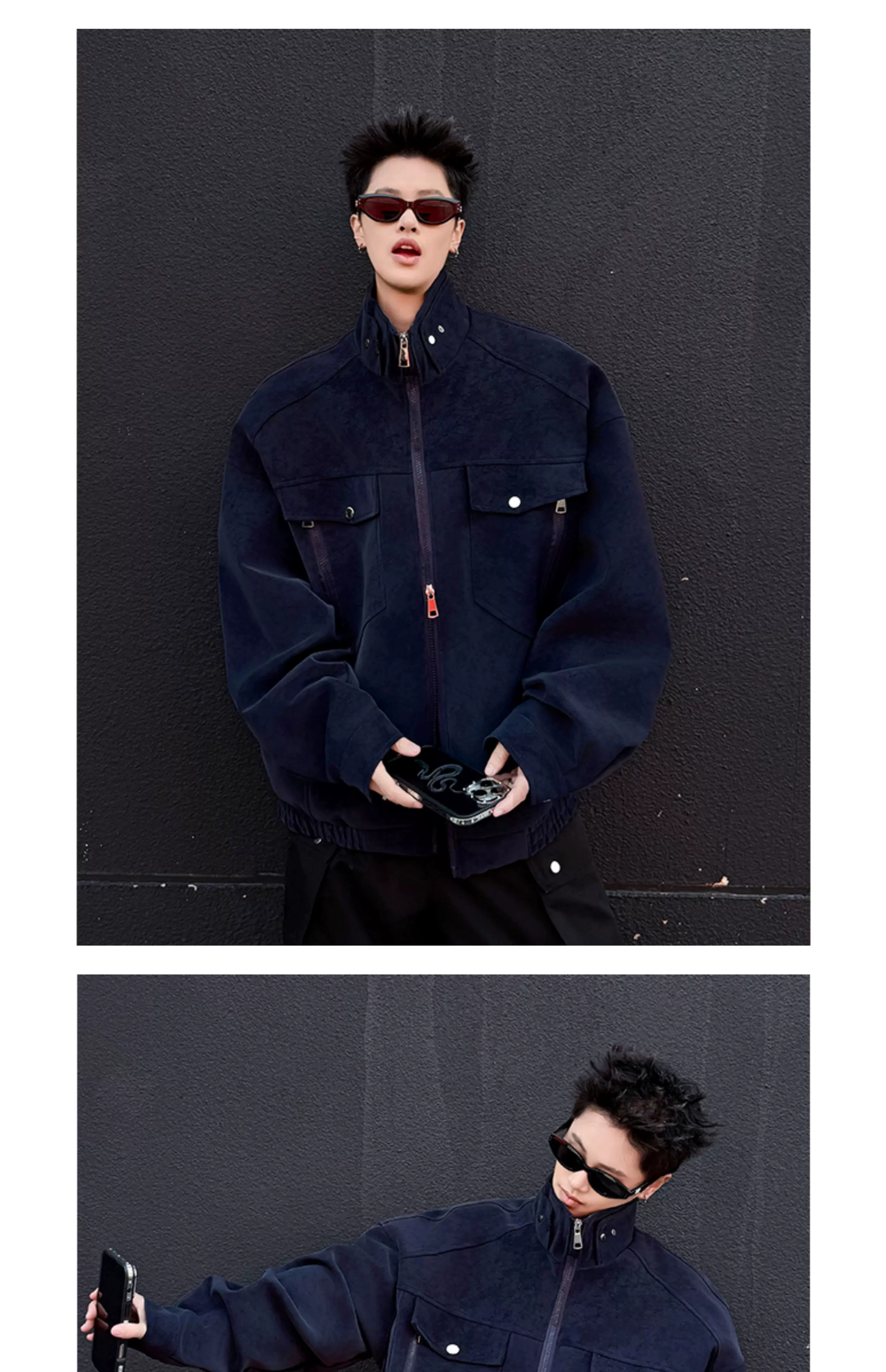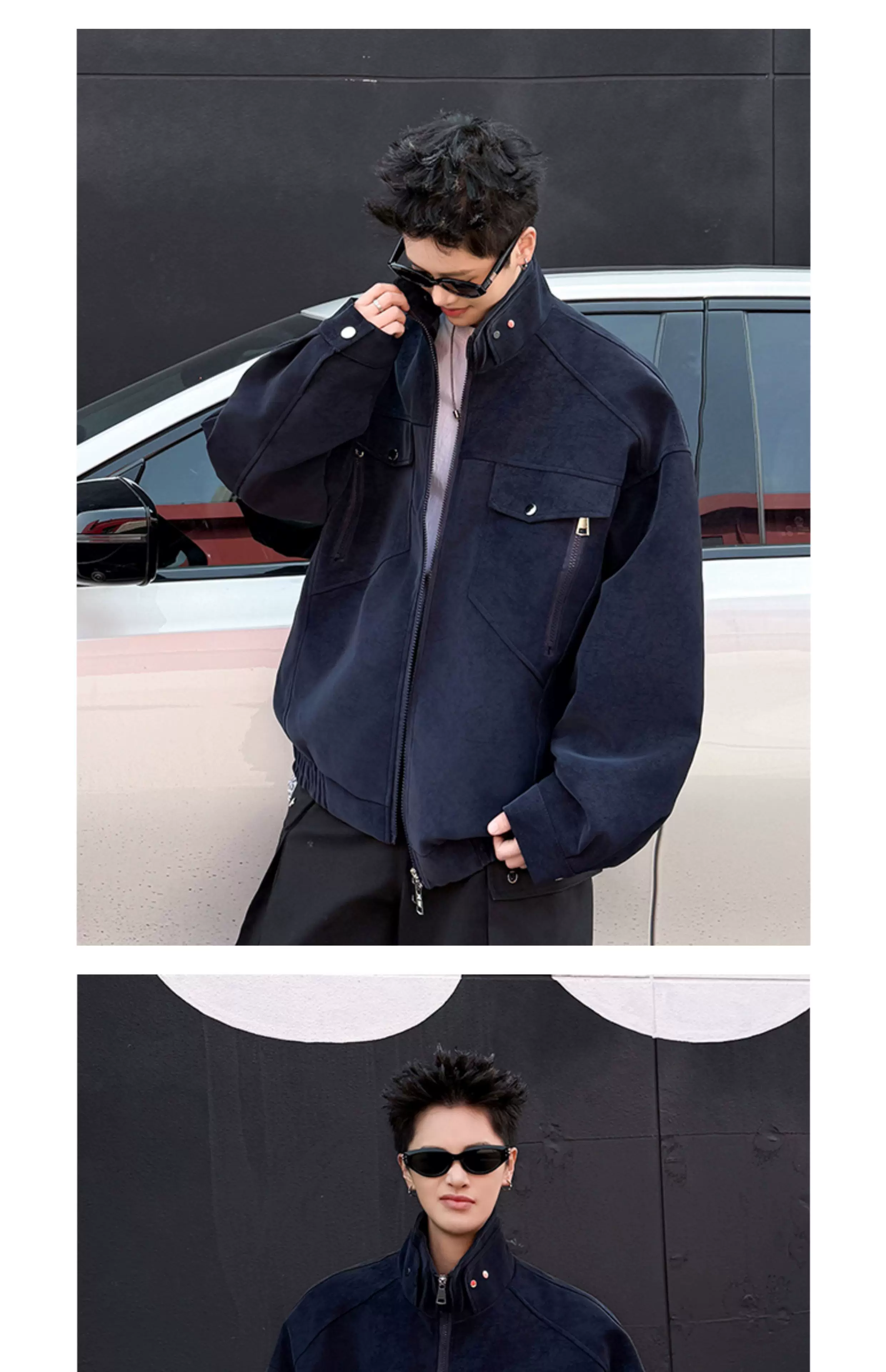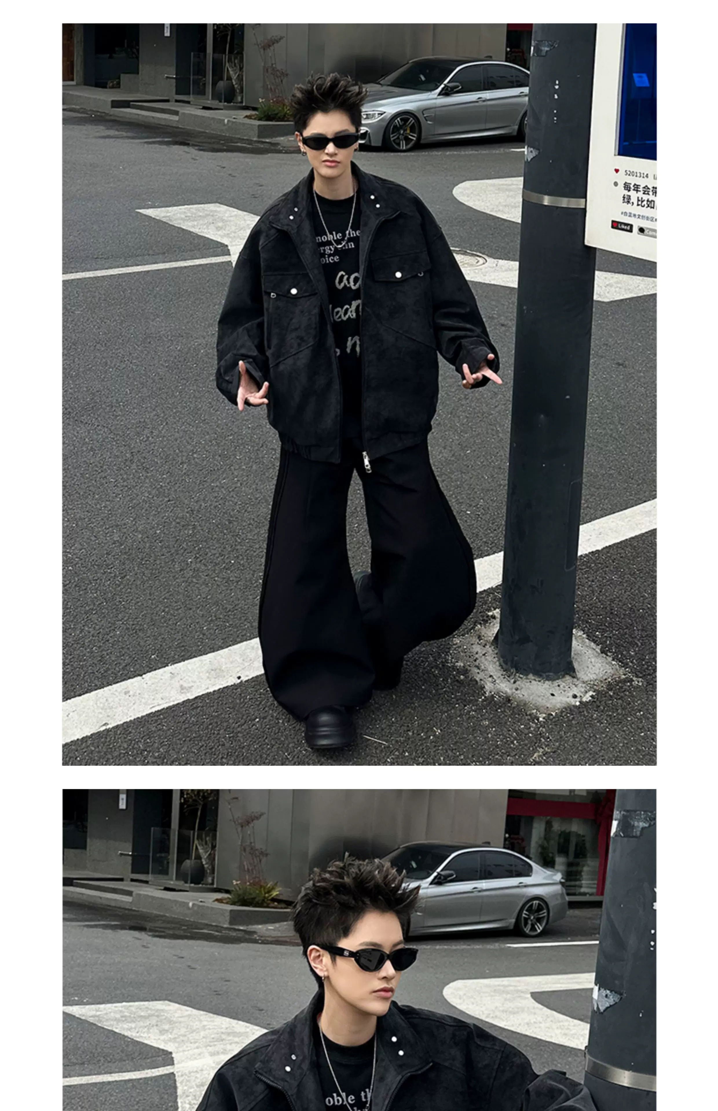 - Áo khoác da PU cao cấp dành cho nam, áo khoác da biker cổ đứng phong cách Mỹ cổ điển, áo khoác cặp đôi thương hiệu thời thượng dáng rộng dành cho mùa xuân và mùa thu.
