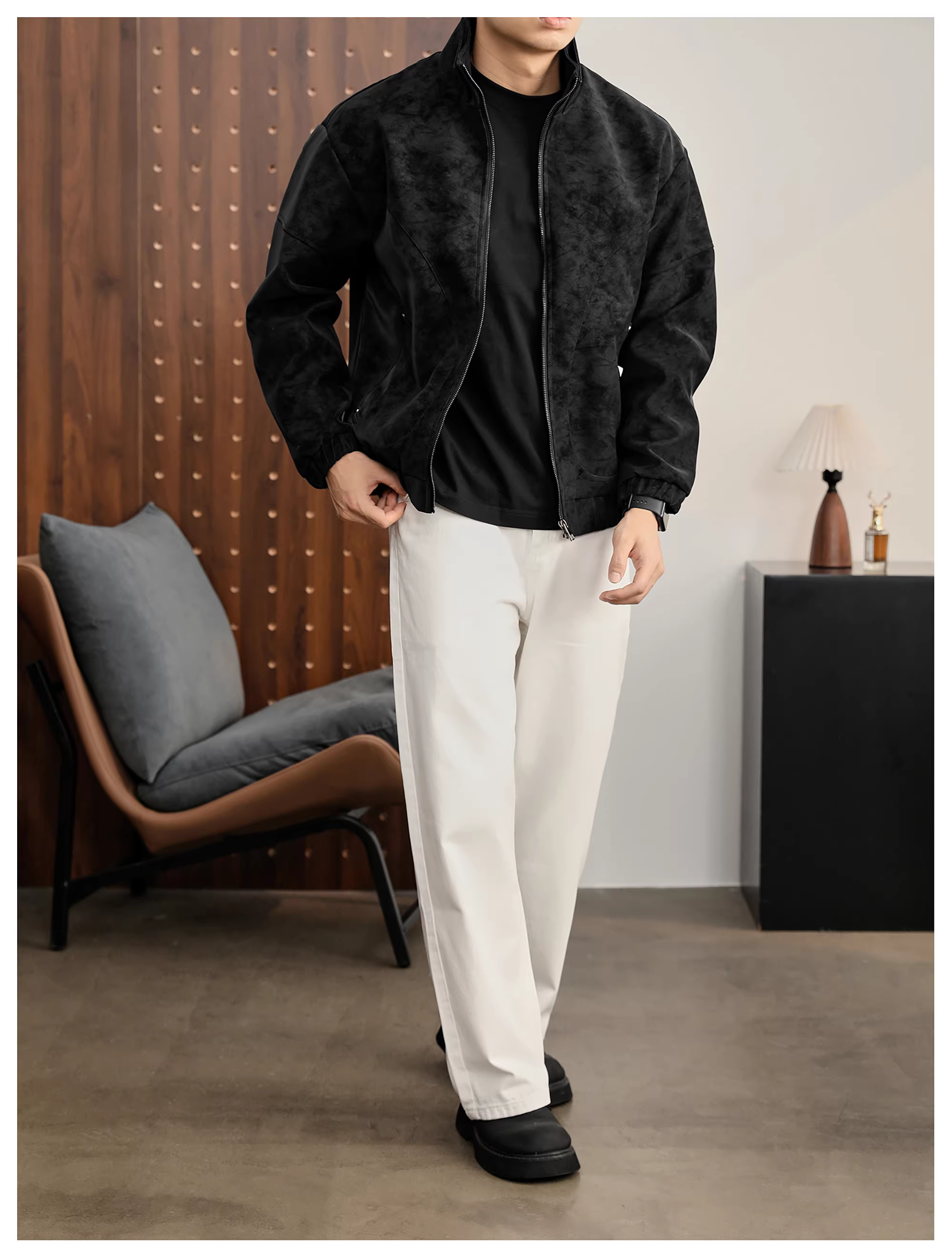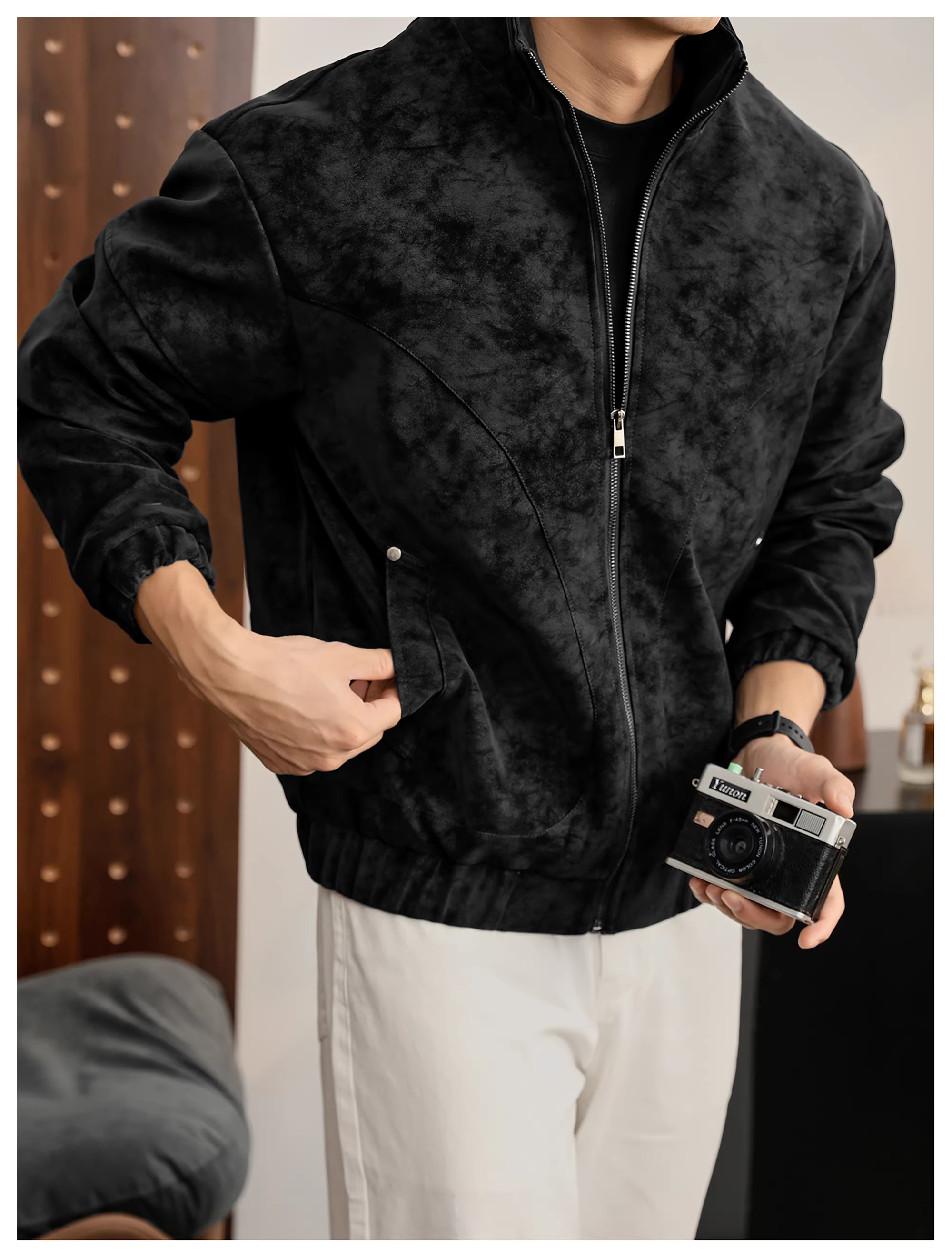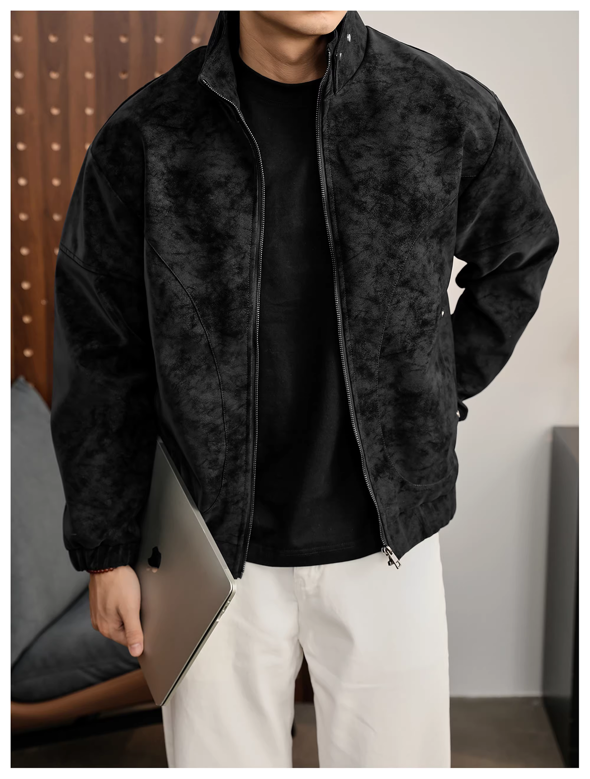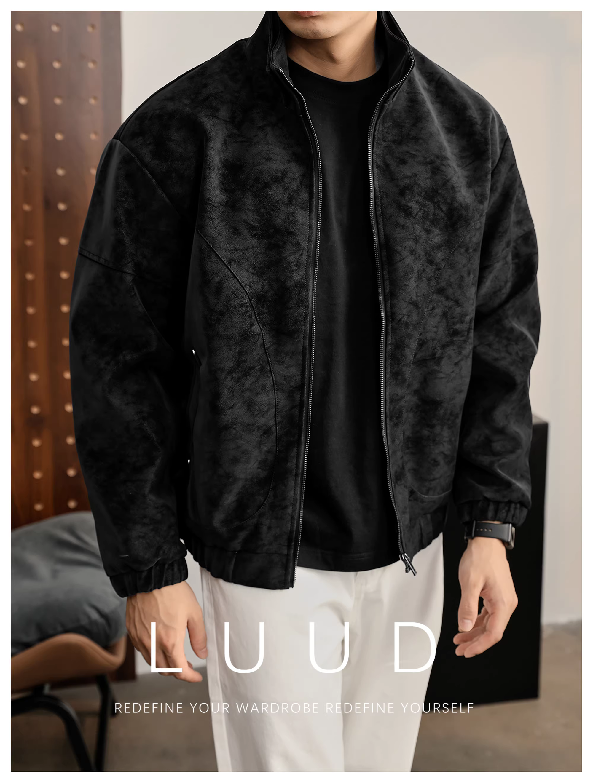 - Áo khoác da PU cổ đứng họa tiết cây đen mờ LUUD dành cho nam, áo khoác dày dặn ấm áp mùa đông kiểu dáng phá cách