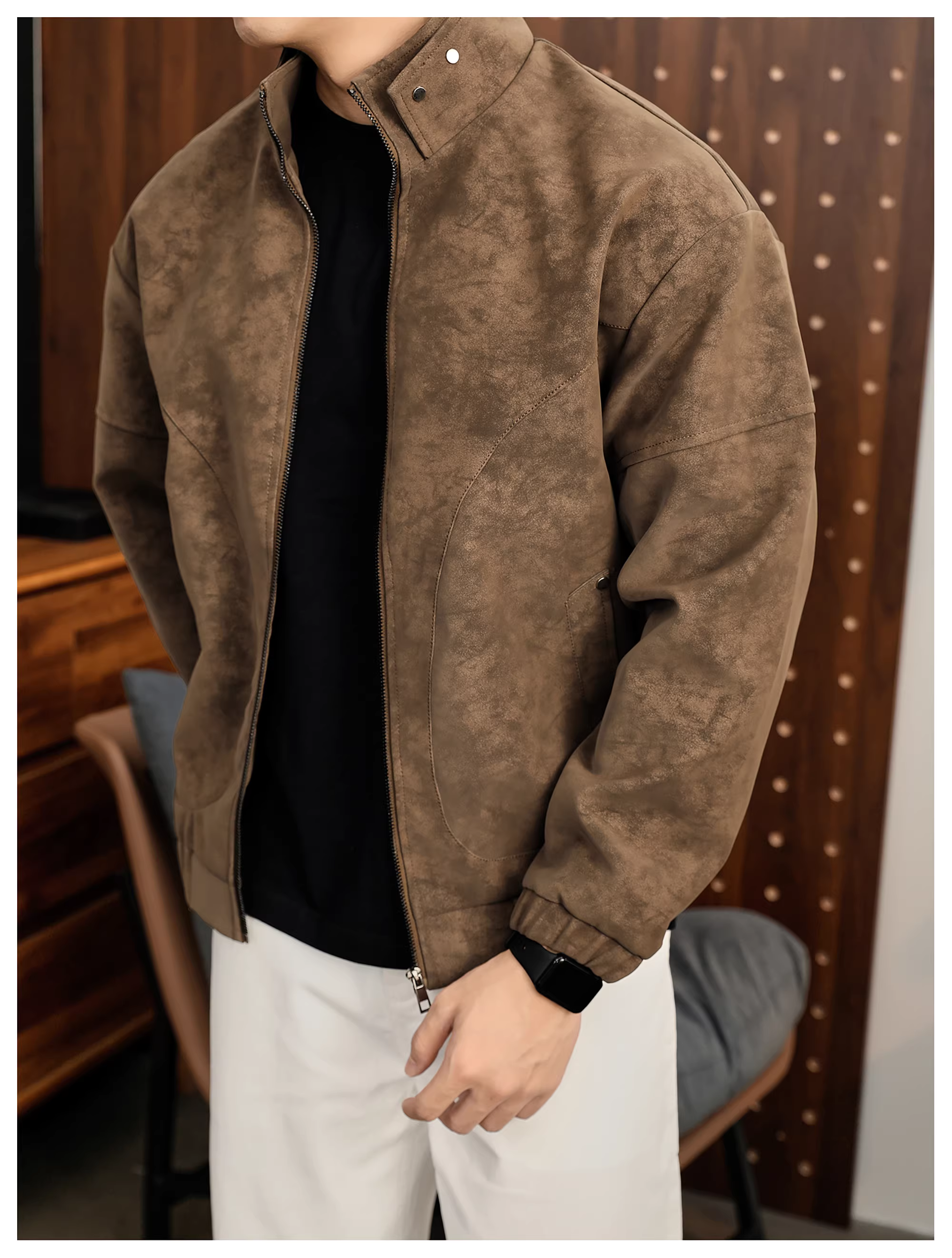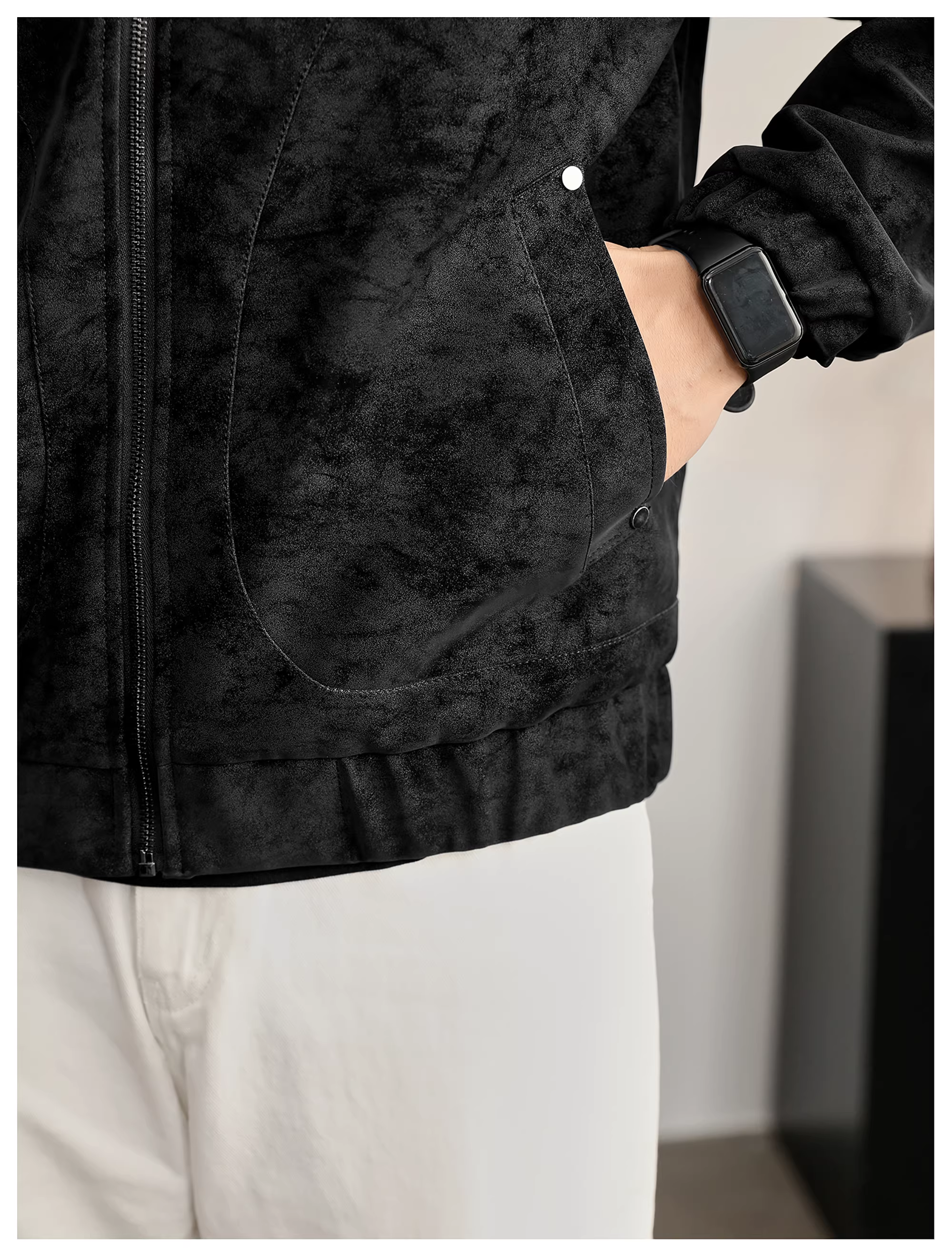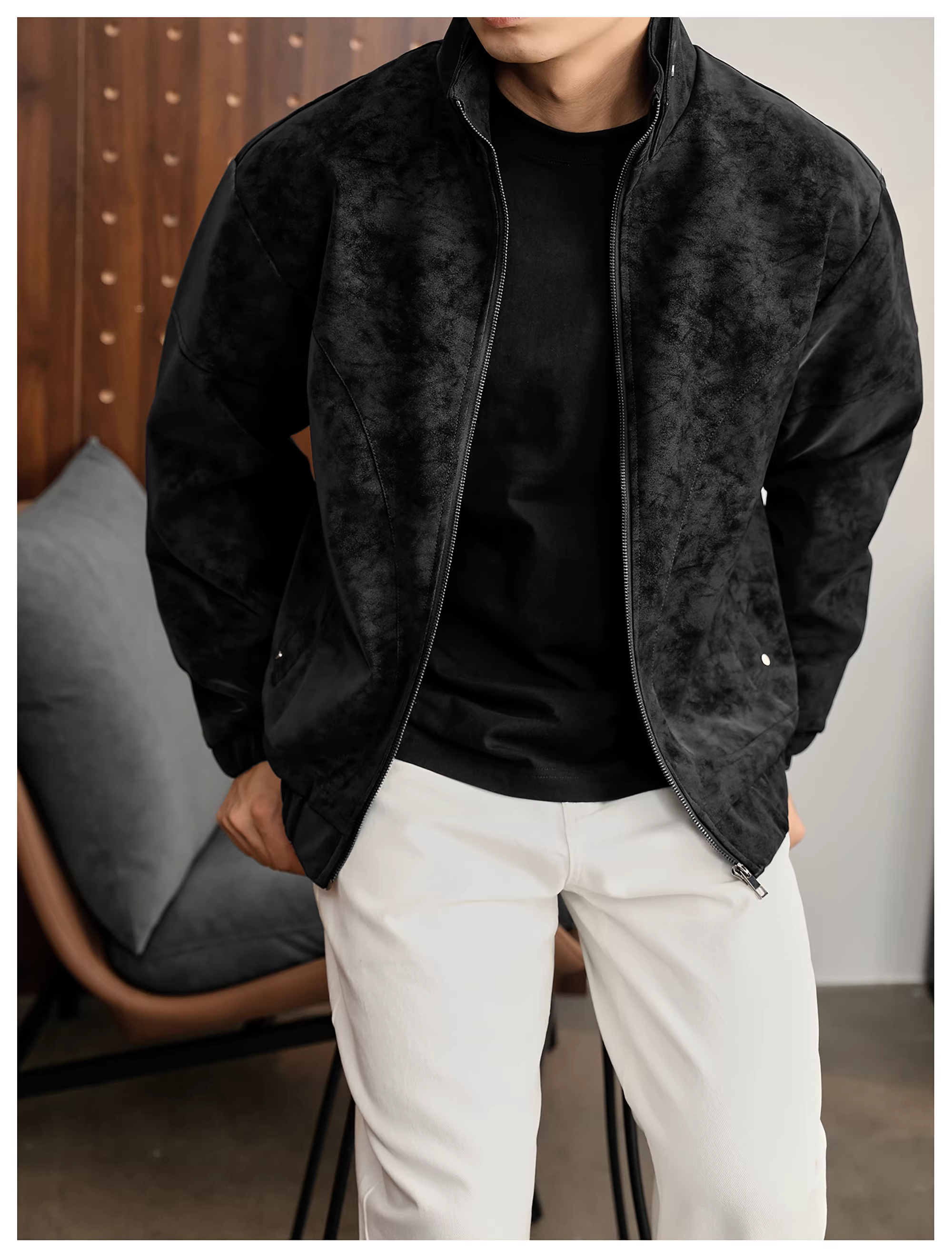 - Áo khoác da PU cổ đứng họa tiết cây đen mờ LUUD dành cho nam, áo khoác dày dặn ấm áp mùa đông kiểu dáng phá cách