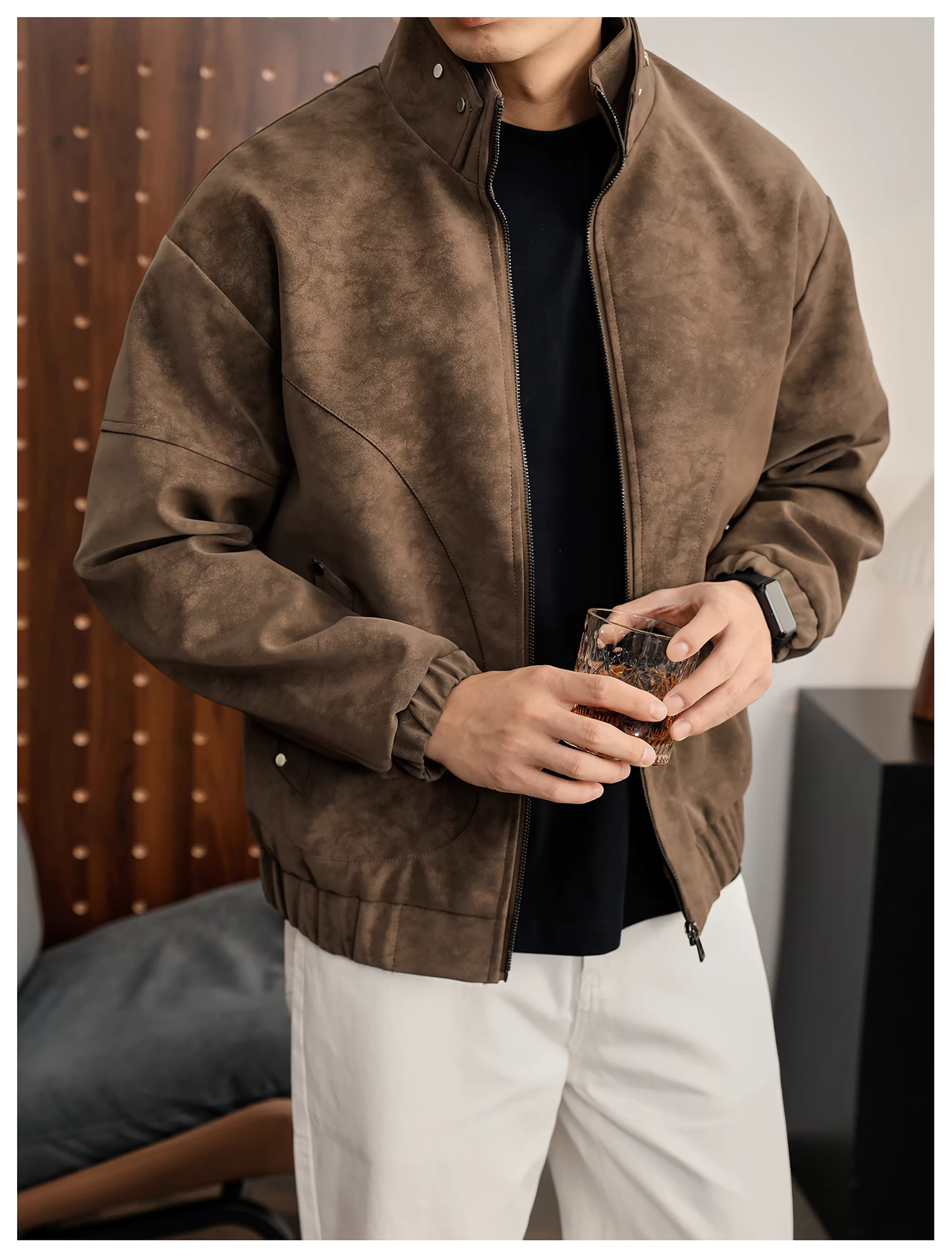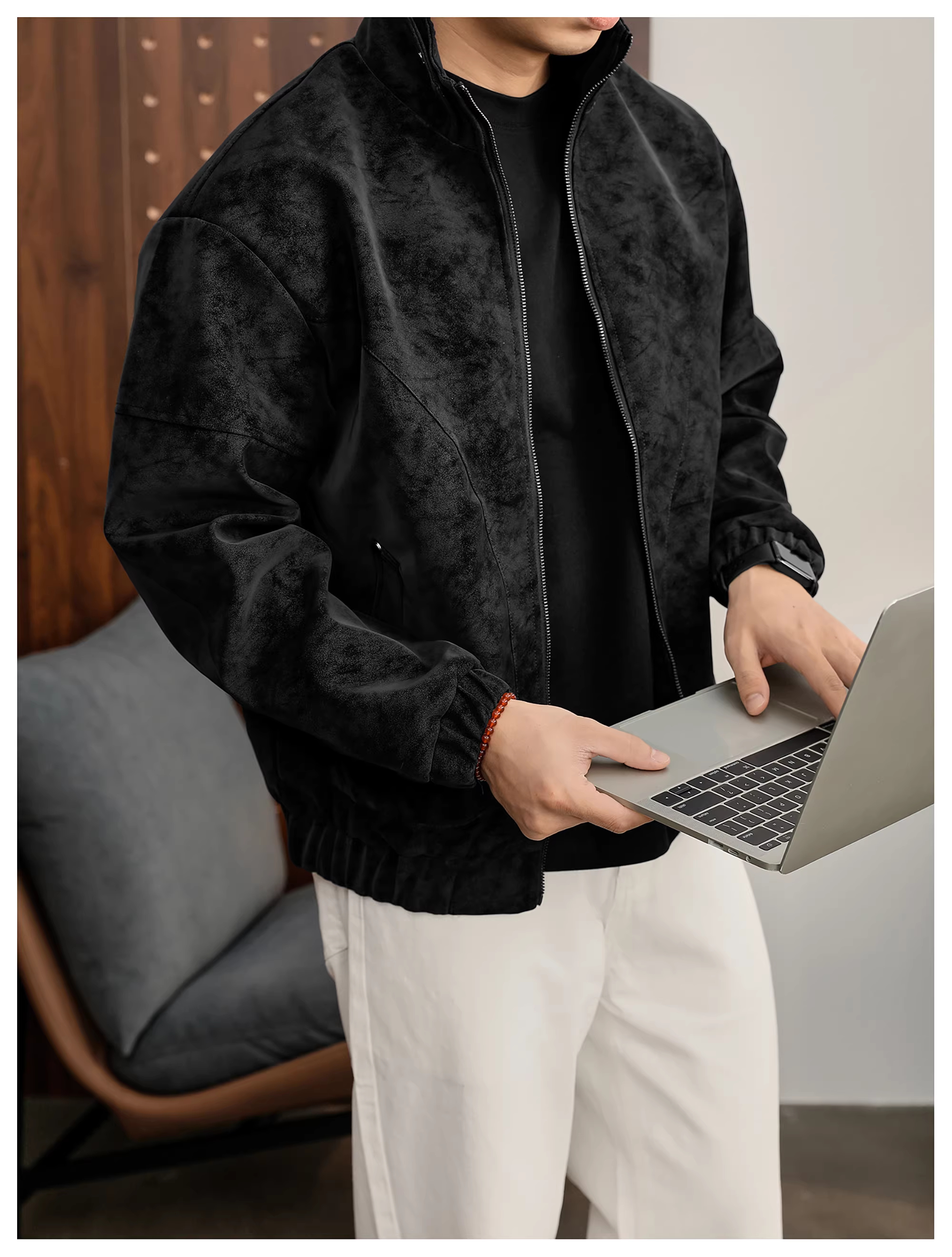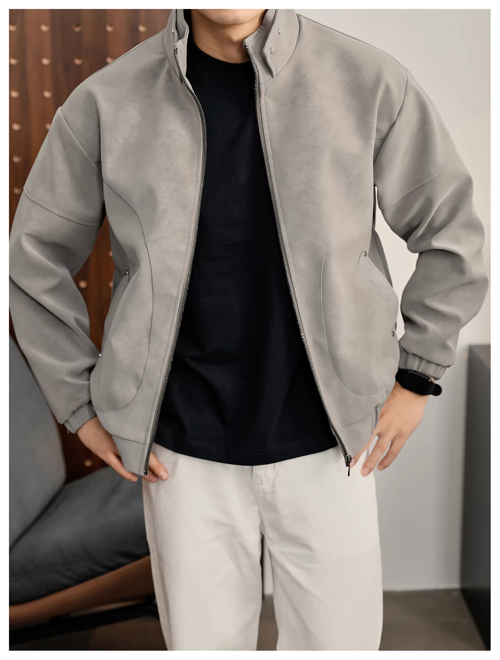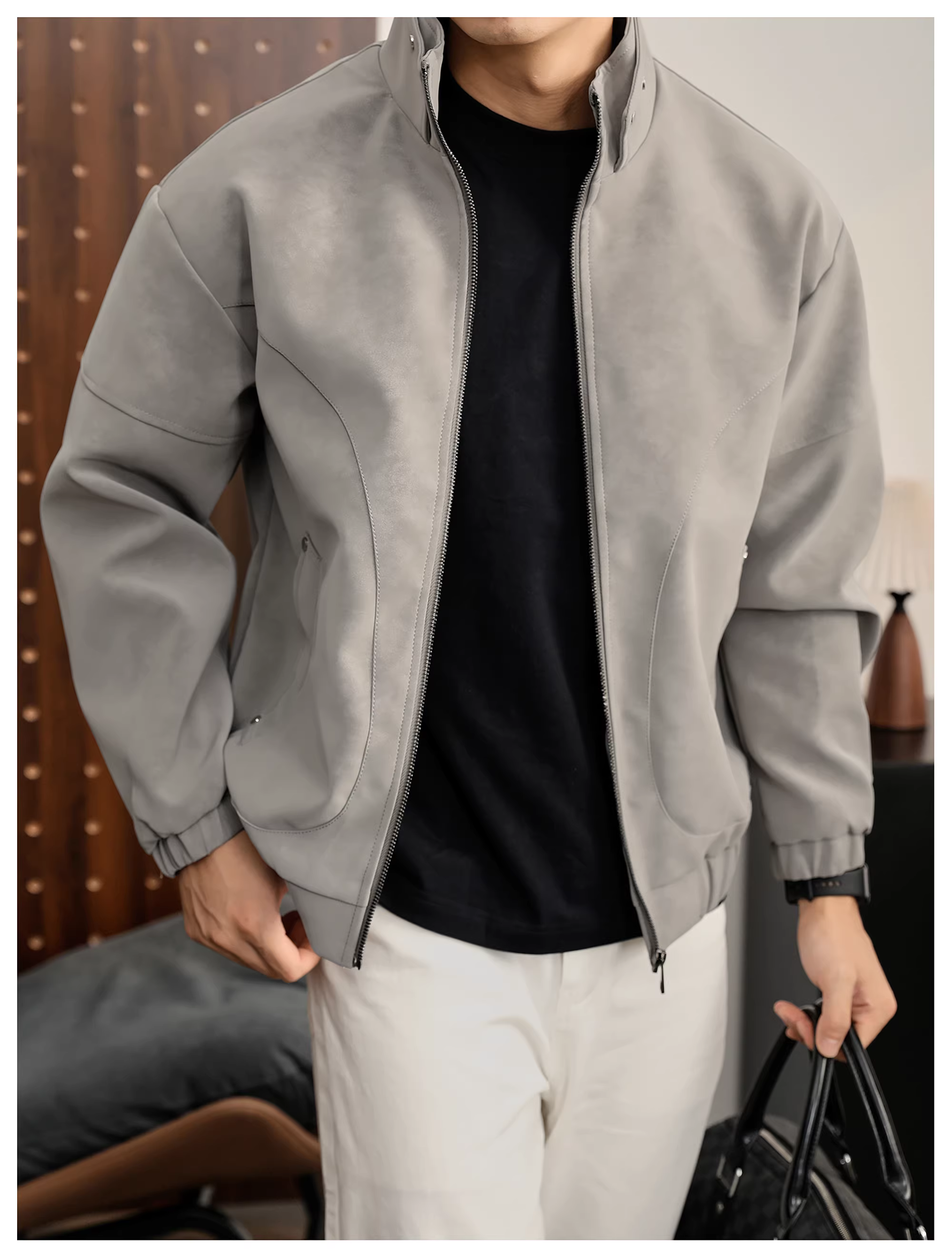 - Áo khoác da PU cổ đứng họa tiết cây đen mờ LUUD dành cho nam, áo khoác dày dặn ấm áp mùa đông kiểu dáng phá cách