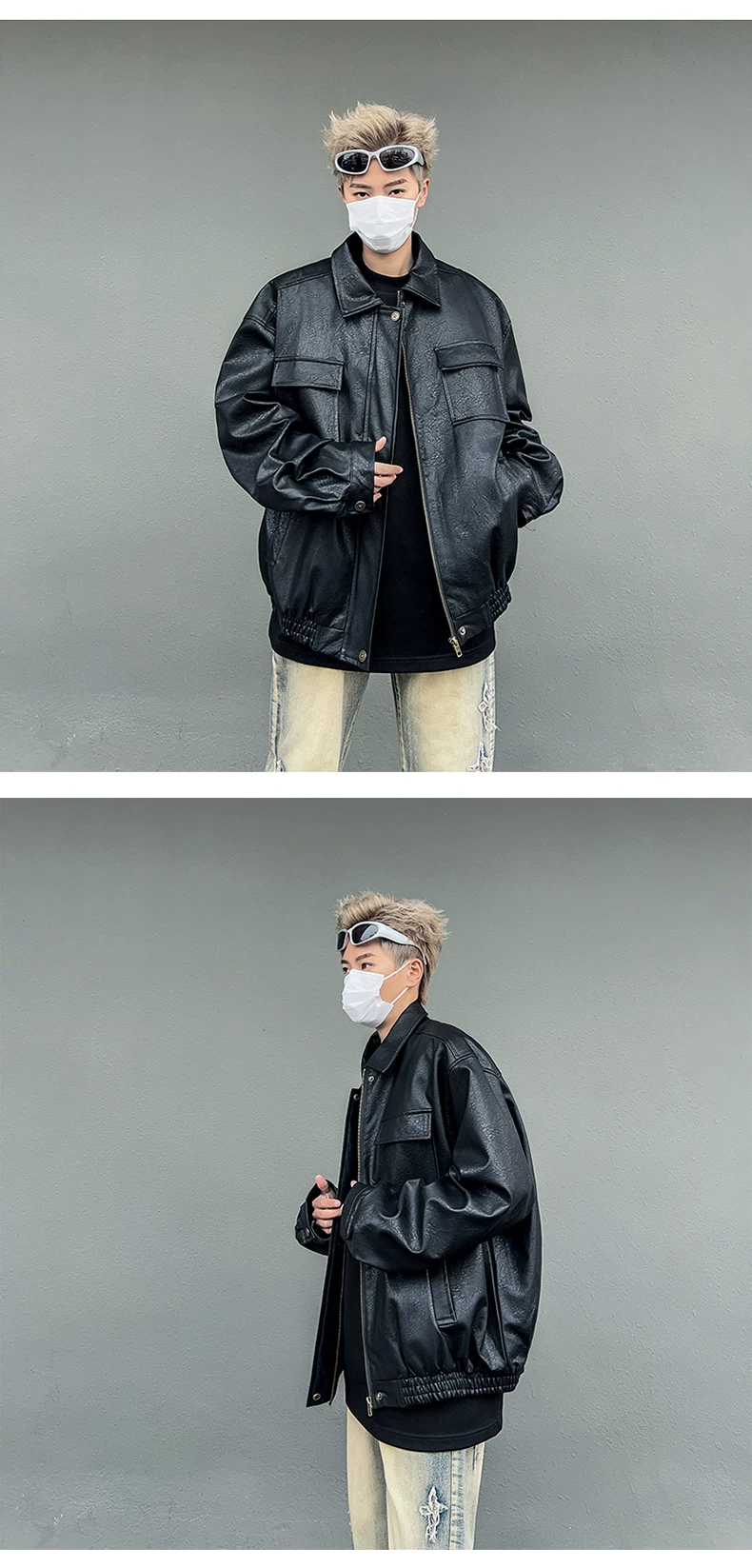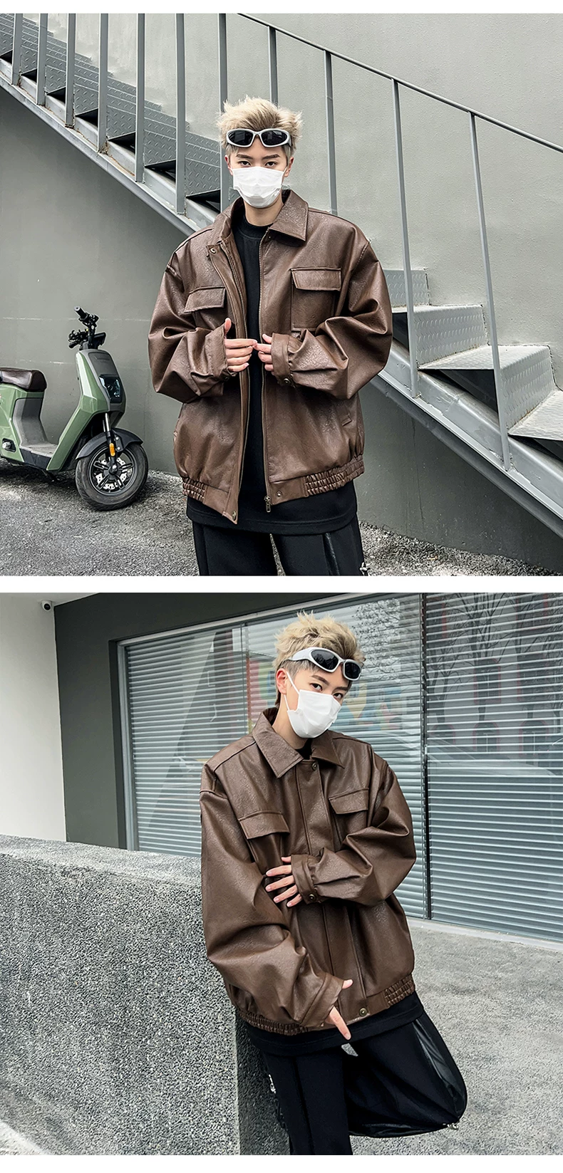 - Áo khoác da PU dáng rộng mùa xuân thu dành cho nam, áo khoác da xe máy cổ điển, thương hiệu thời thượng, áo khoác ngoài cá tính cho cặp đôi.