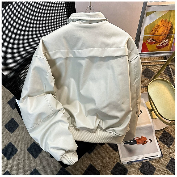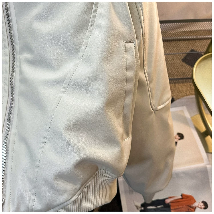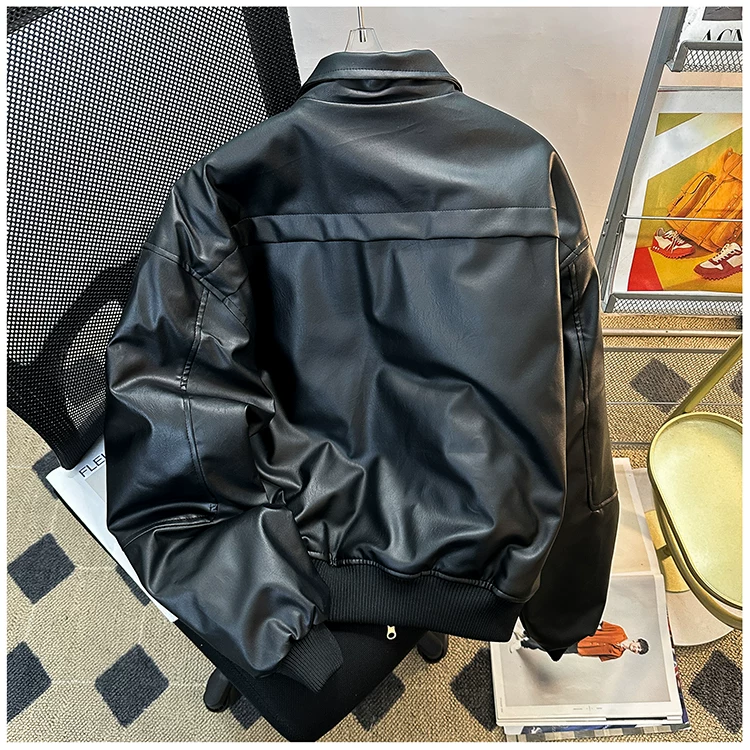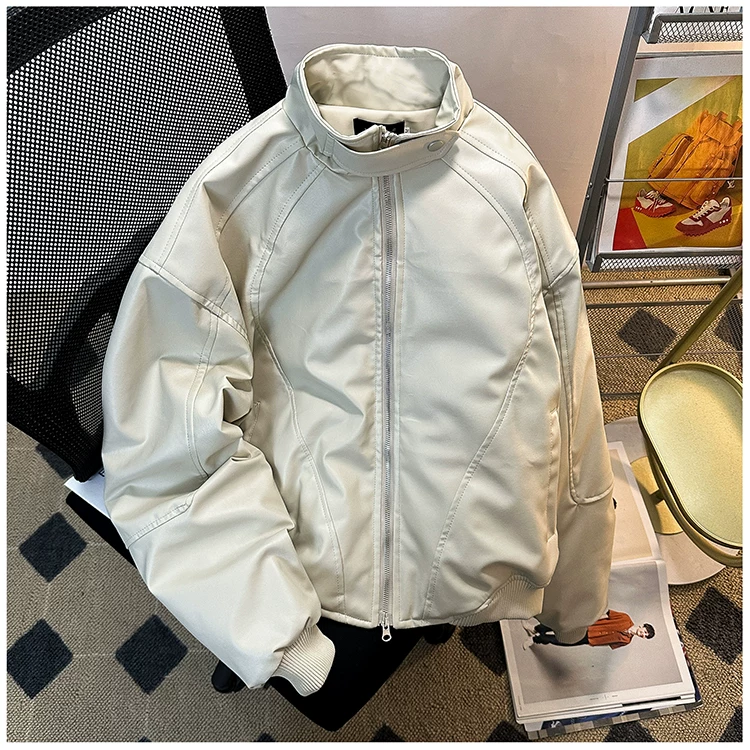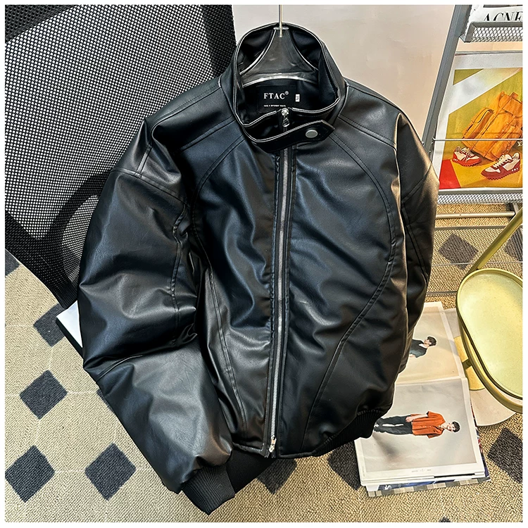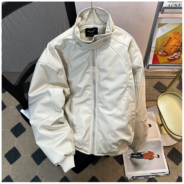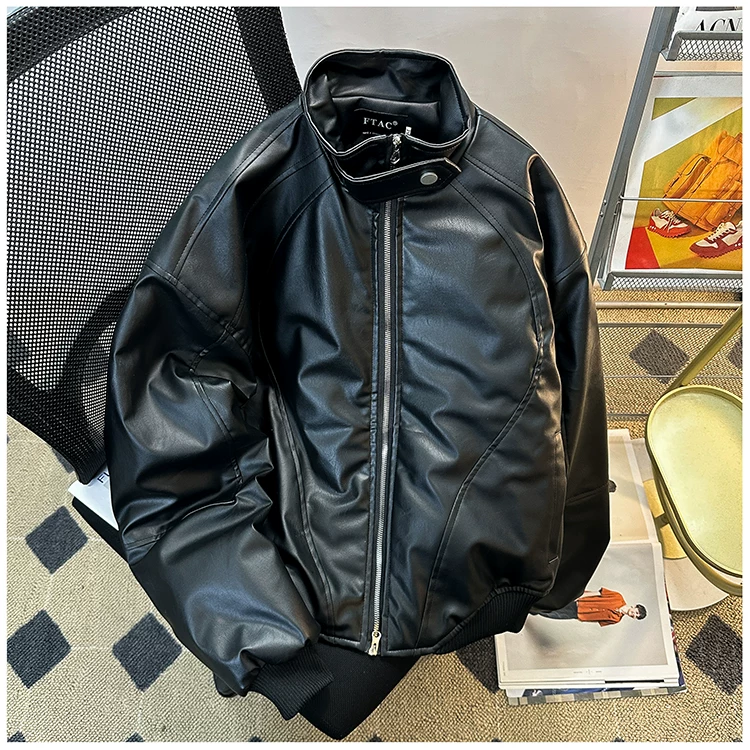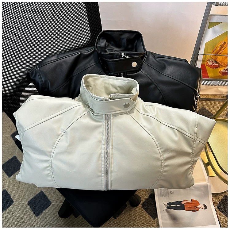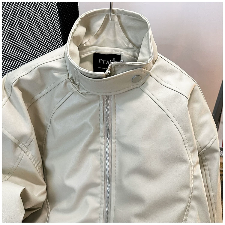 Áo khoác da PU dành cho nam giới mùa xuân và mùa thu, phong cách Mỹ thời thượng, áo khoác da cá tính và sành điệu với thiết kế độc đáo, áo khoác cổ đứng dày dặn dành cho cặp đôi.