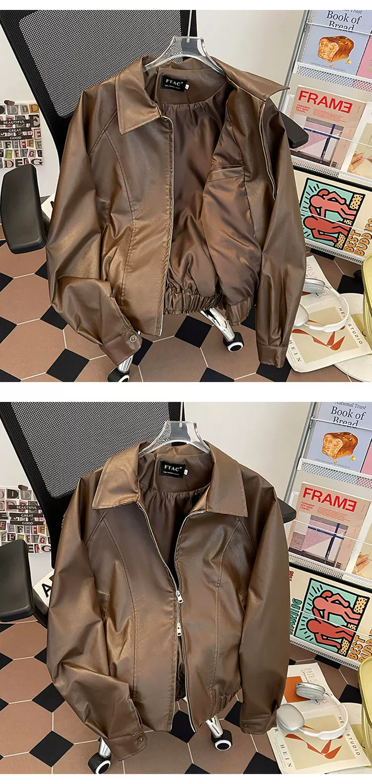 - Áo khoác da PU kiểu Mỹ dành cho nam, áo khoác dáng dài thời thượng mùa xuân thu, áo khoác biker cao cấp cá tính.