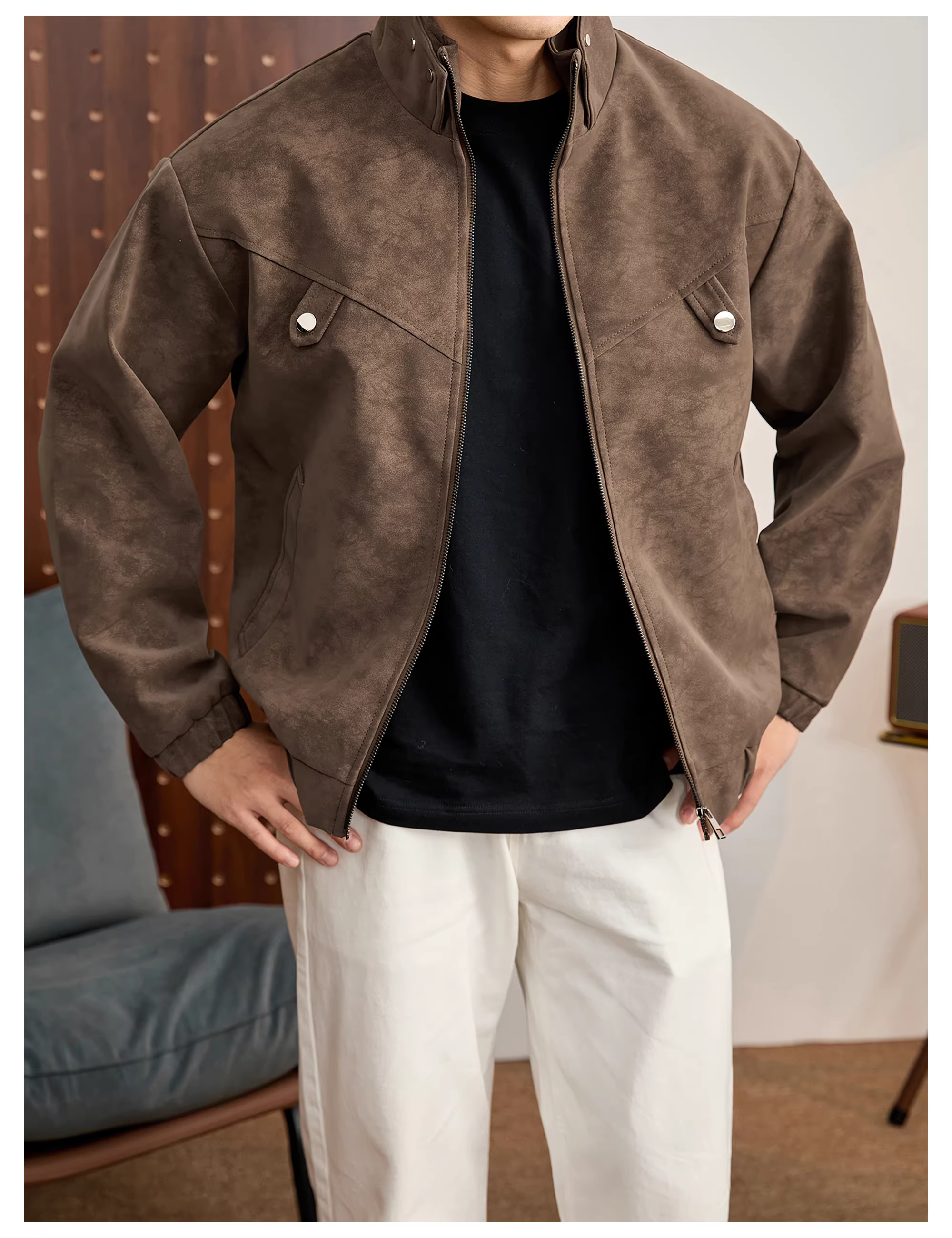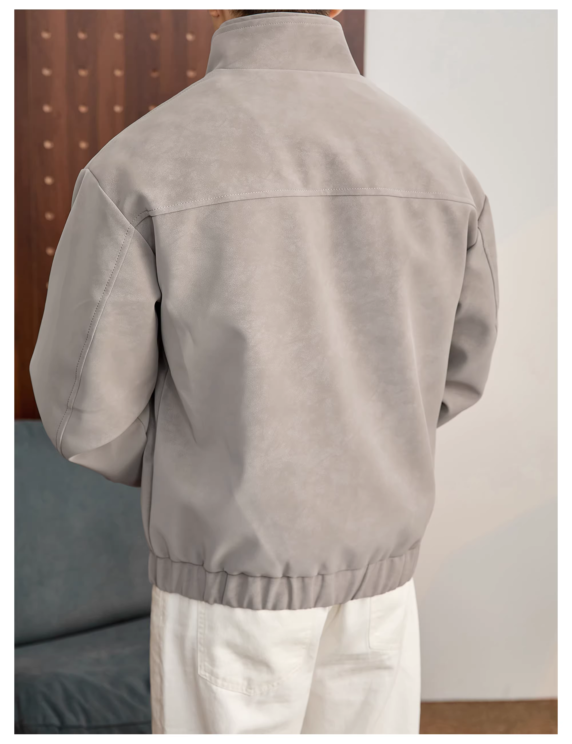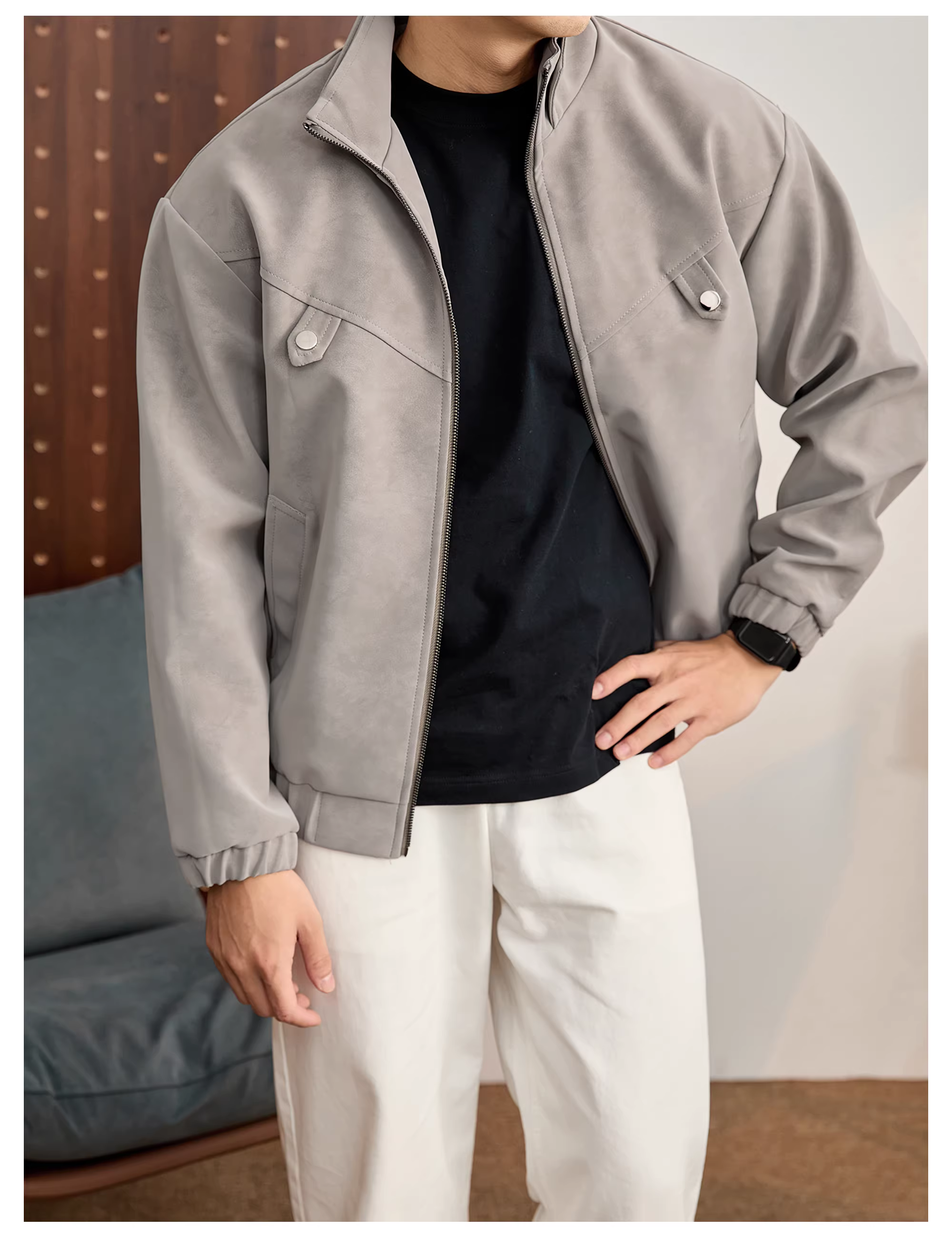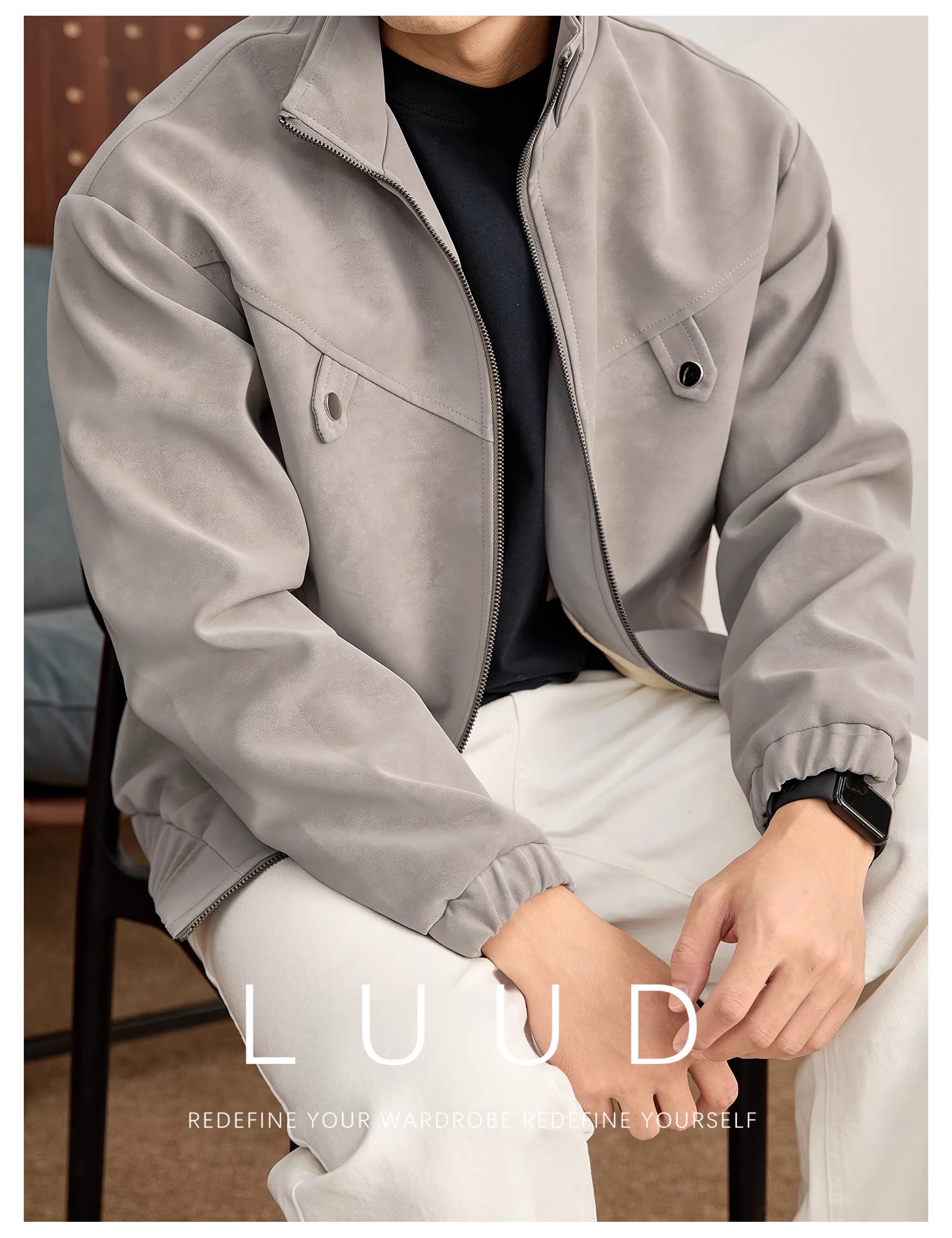 - Áo khoác da PU nam LUUD kiểu batik, màu mờ, rách khắp bề mặt, kiểu dáng cũ kỹ, có trang trí khuy và thiết kế đường nét phá cách