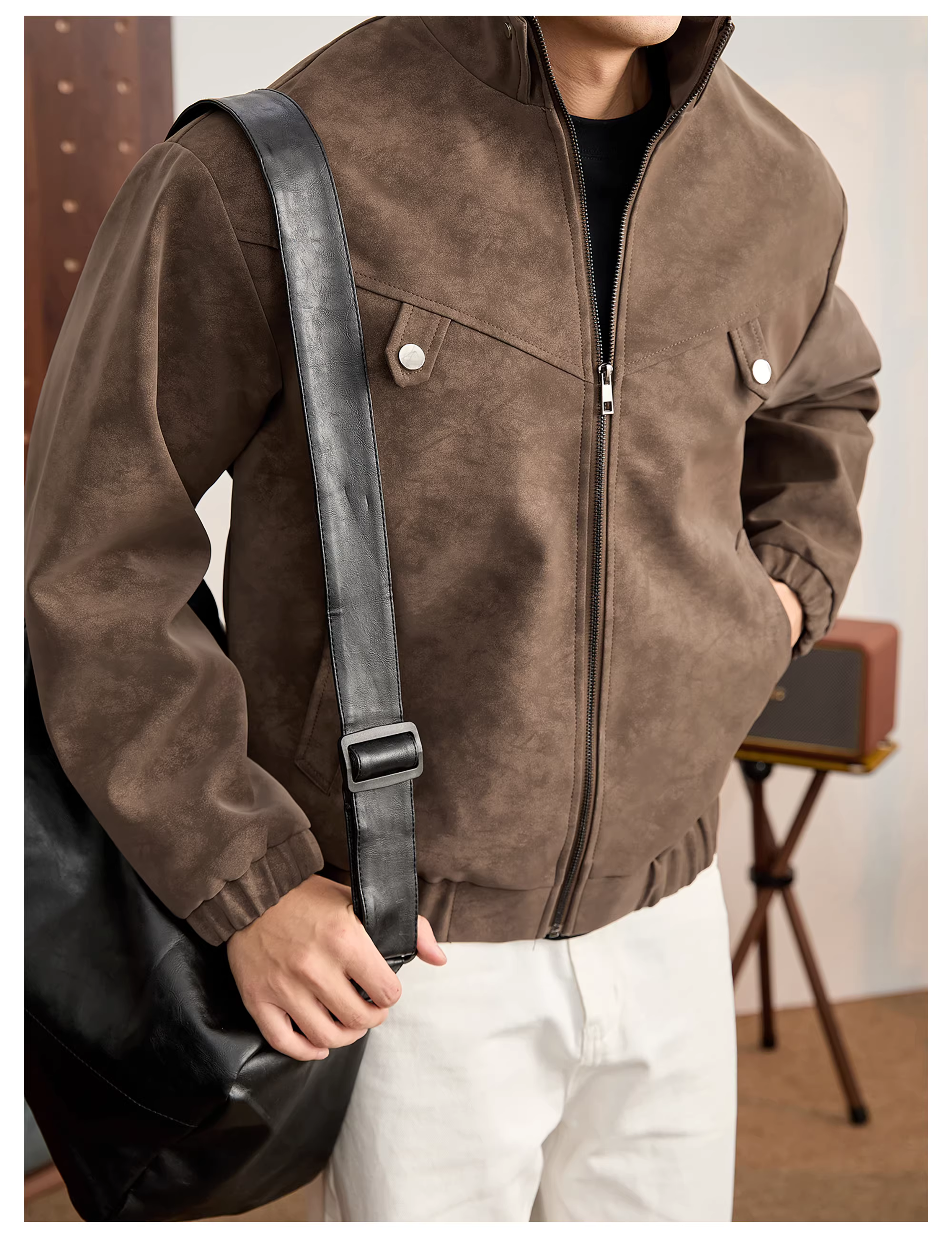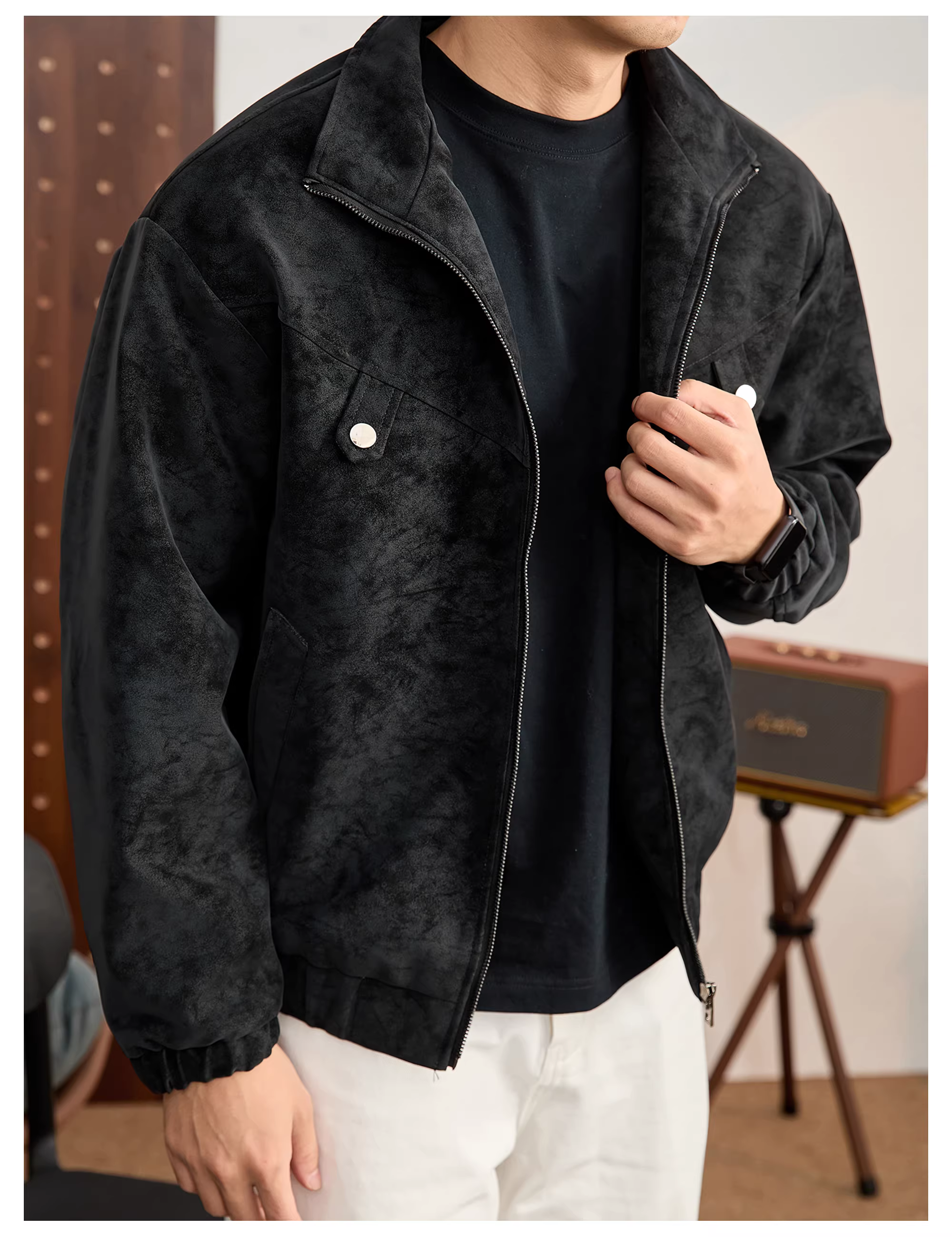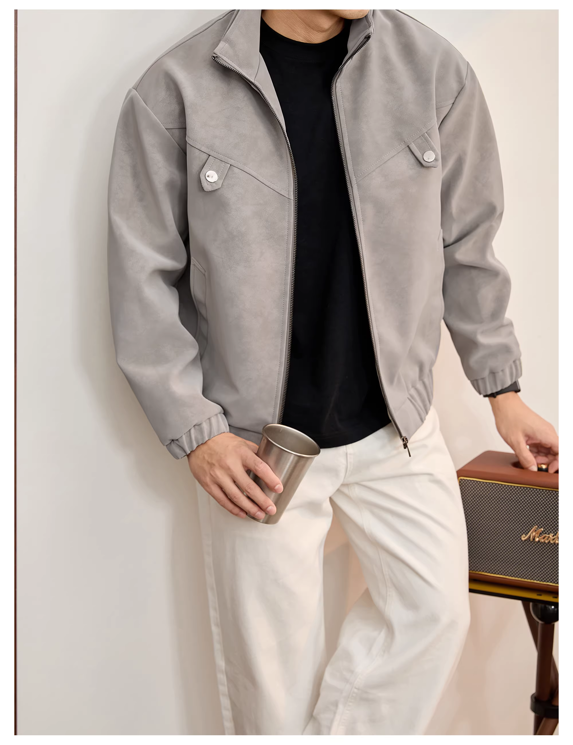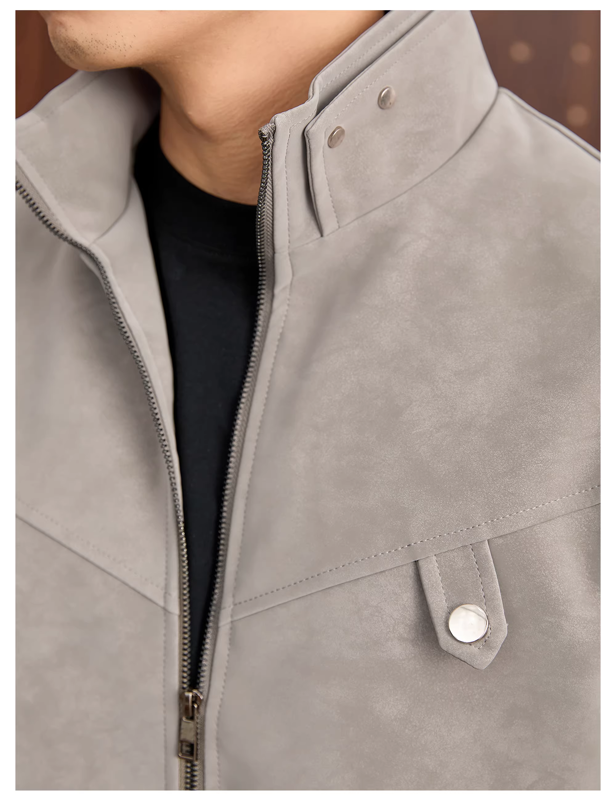 - Áo khoác da PU nam LUUD kiểu batik, màu mờ, rách khắp bề mặt, kiểu dáng cũ kỹ, có trang trí khuy và thiết kế đường nét phá cách