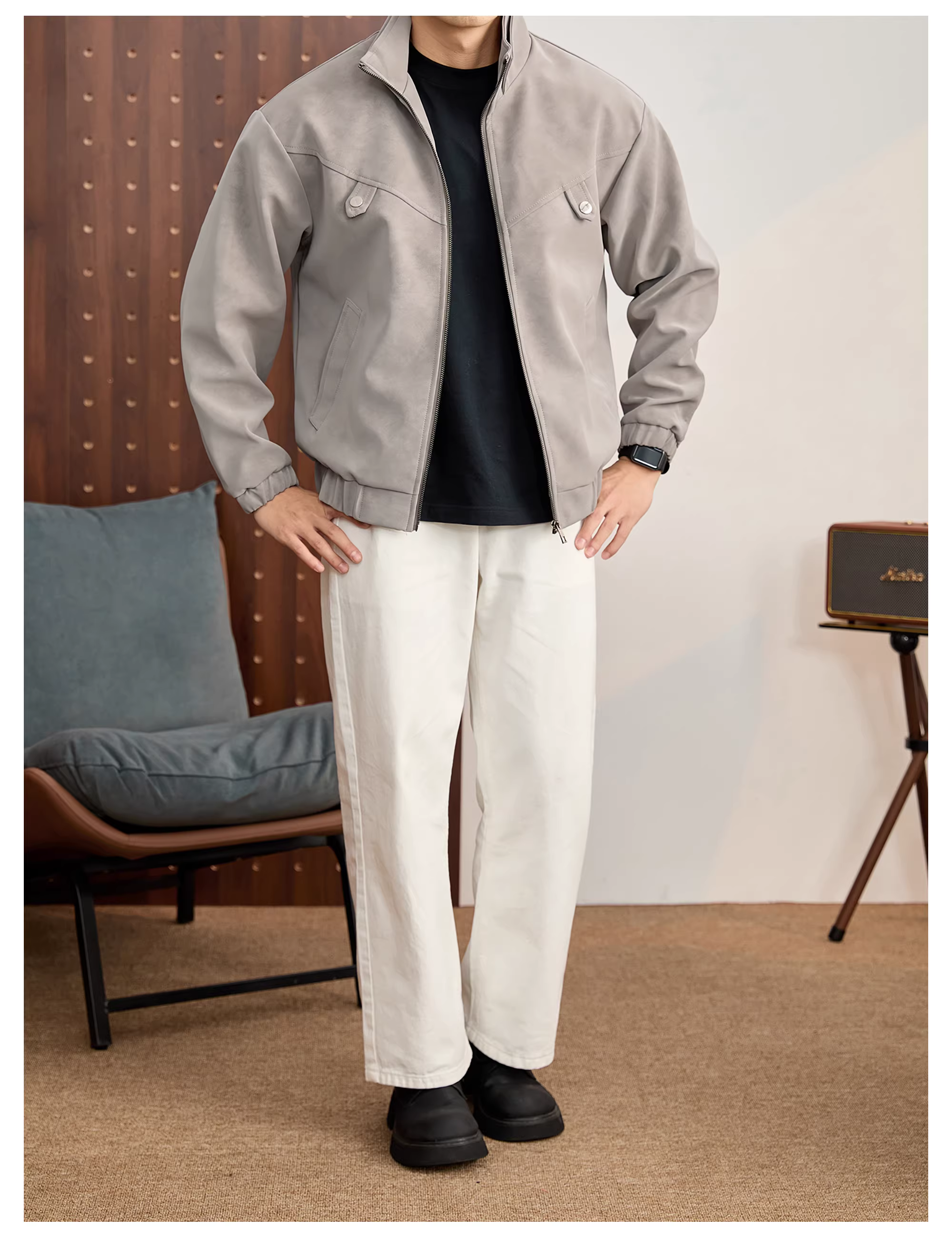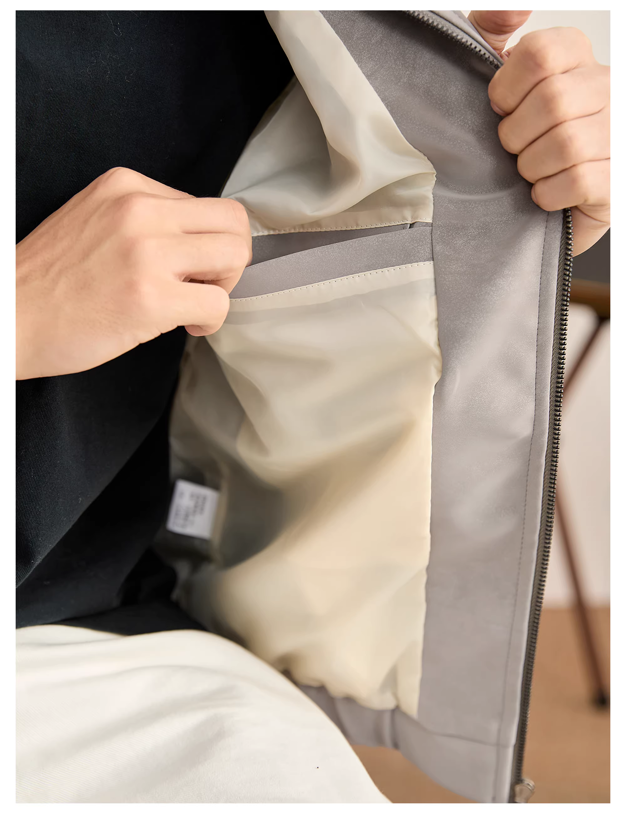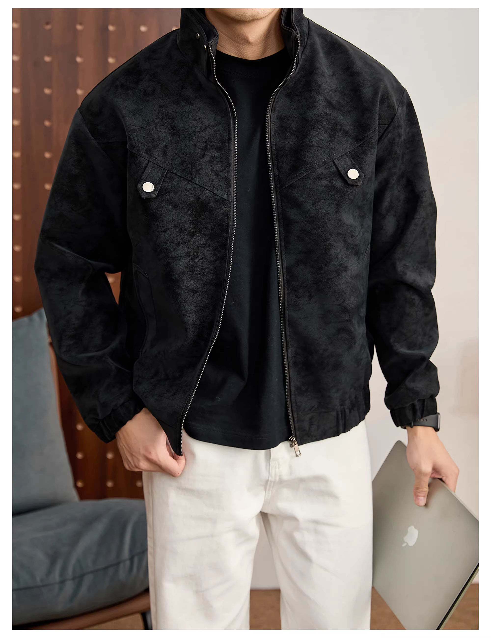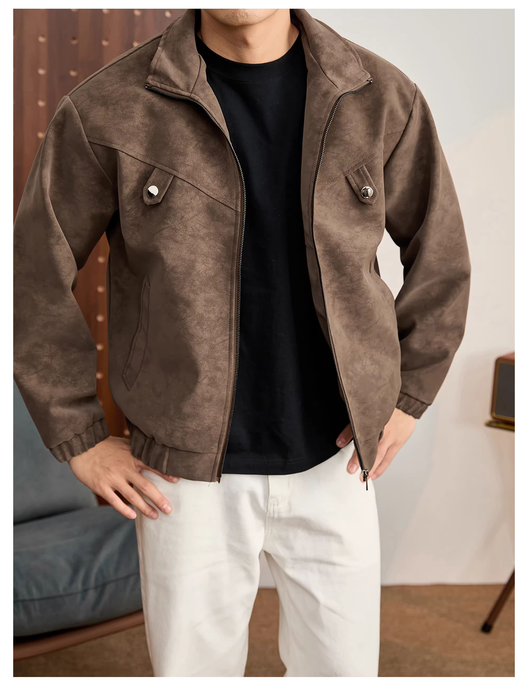- Áo khoác da PU nam LUUD kiểu batik, màu mờ, rách khắp bề mặt, kiểu dáng cũ kỹ, có trang trí khuy và thiết kế đường nét phá cách