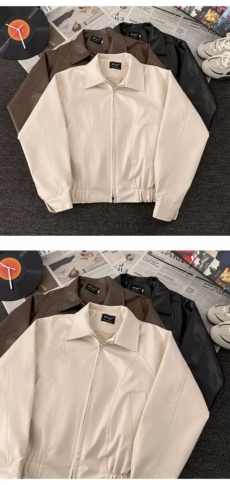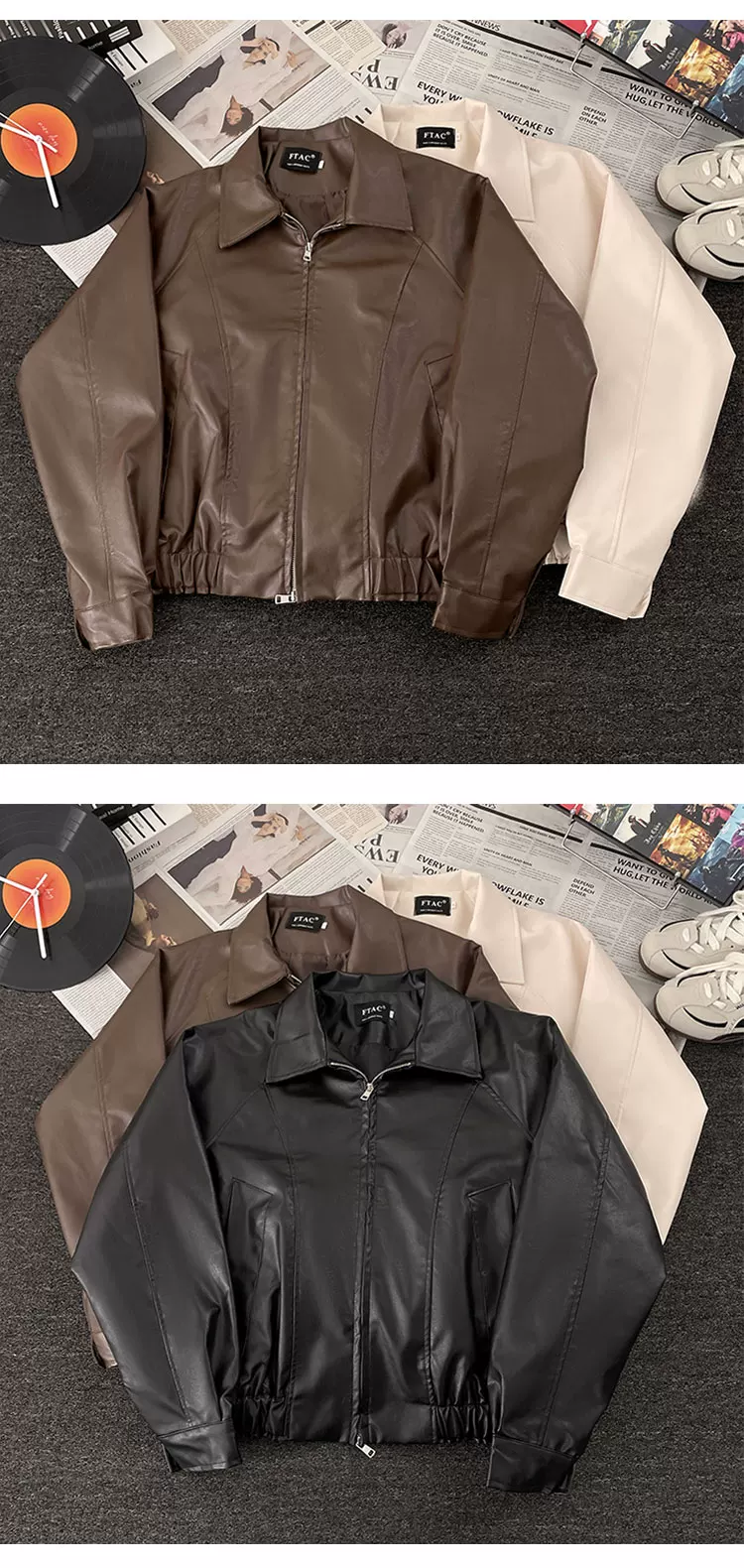 - Áo khoác da PU thương hiệu thời thượng dành cho nam, áo khoác biker phong cách retro Mỹ mùa thu, áo khoác thường ngày rộng rãi cao cấp.