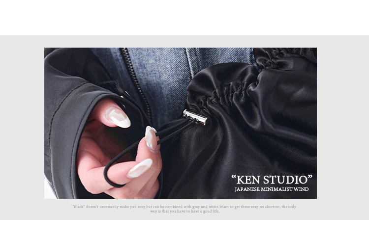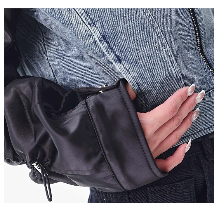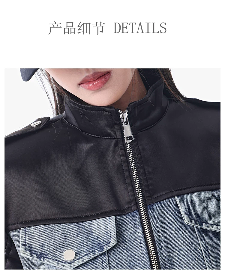 - Áo khoác denim chắp vá mùa thu đông mới của KEN STUDIO dành cho nữ, áo khoác ngắn ôm dáng thời trang