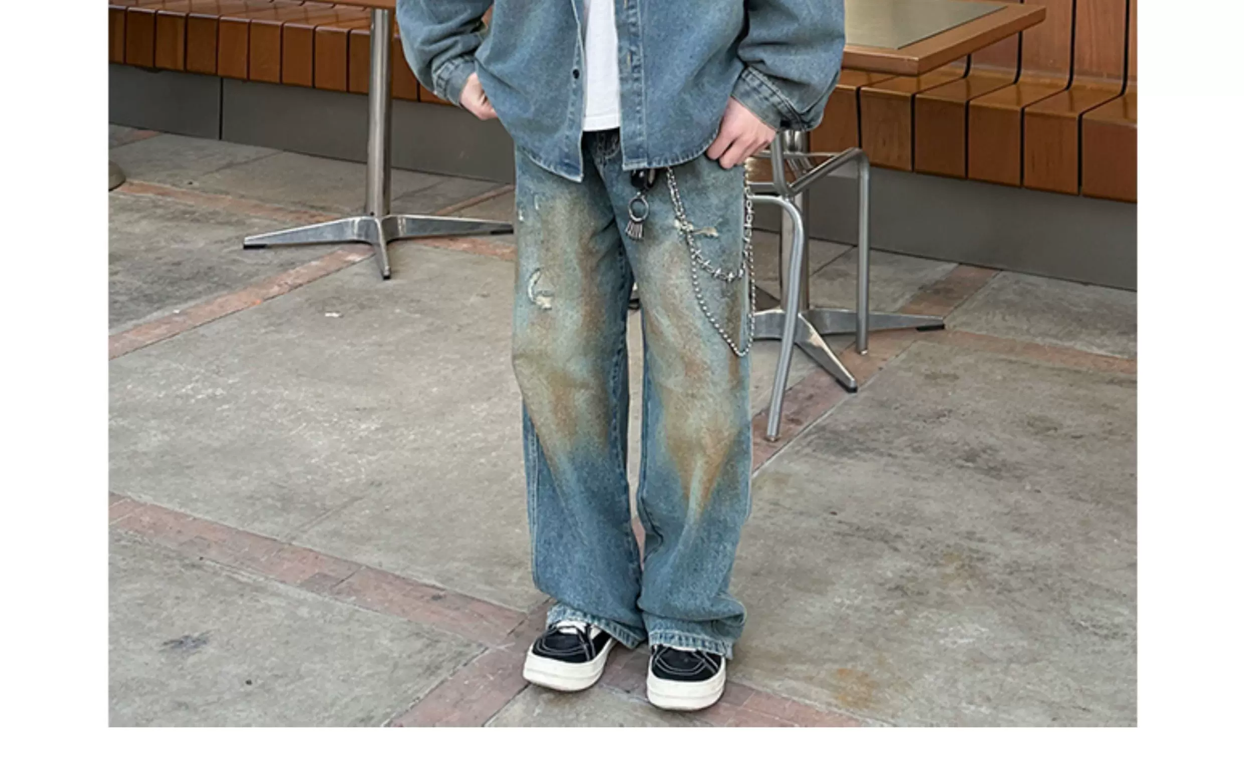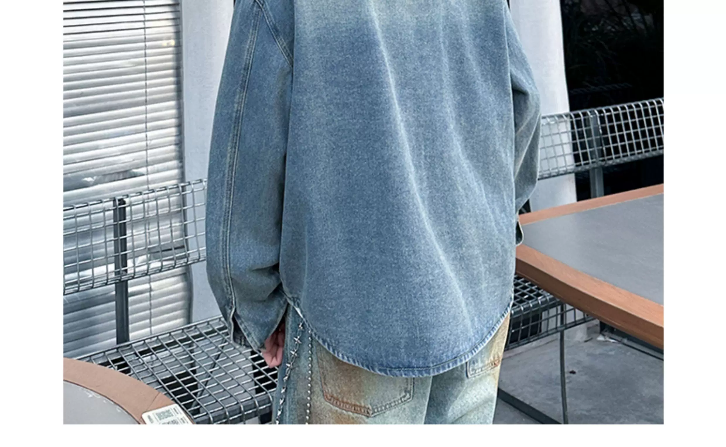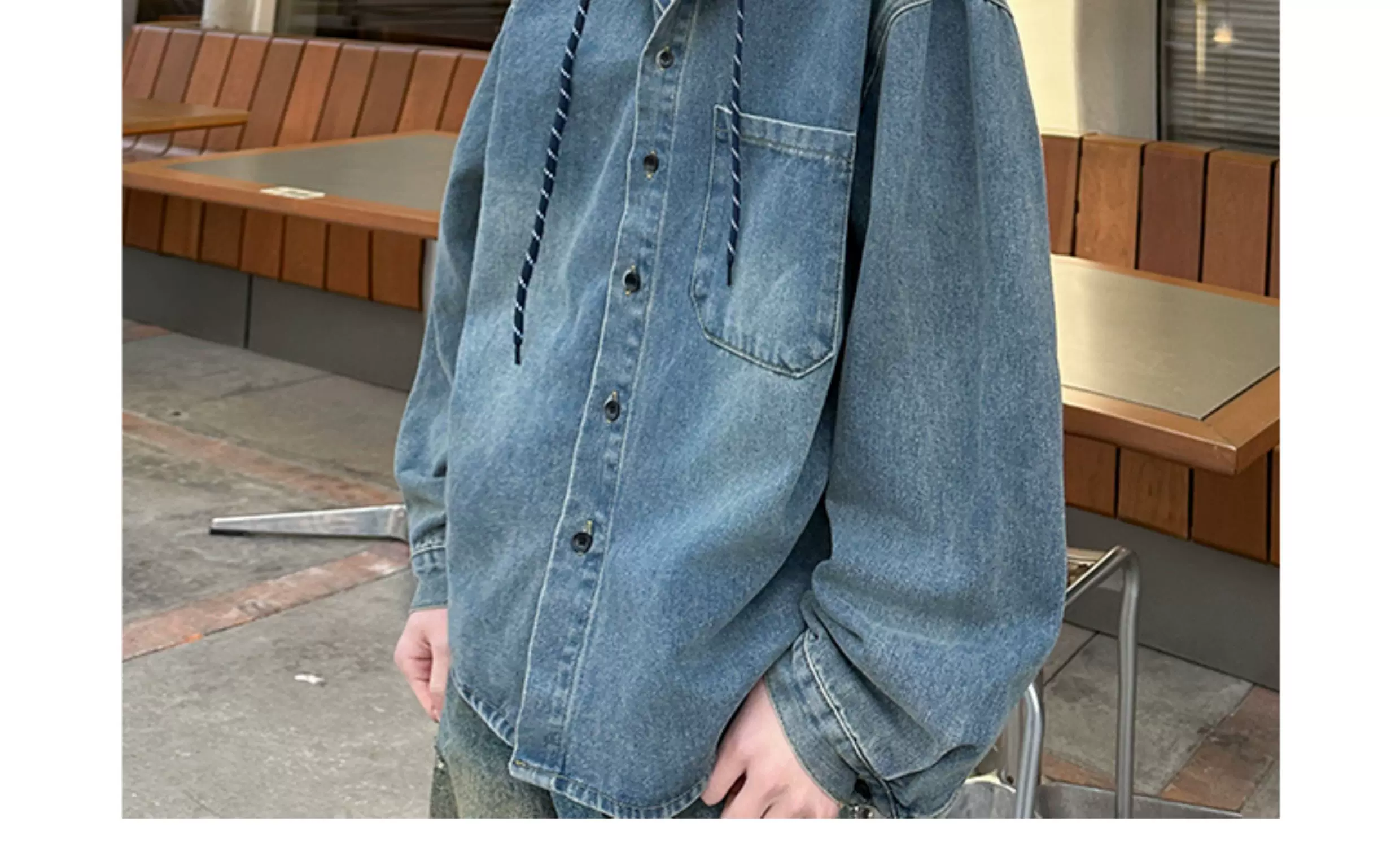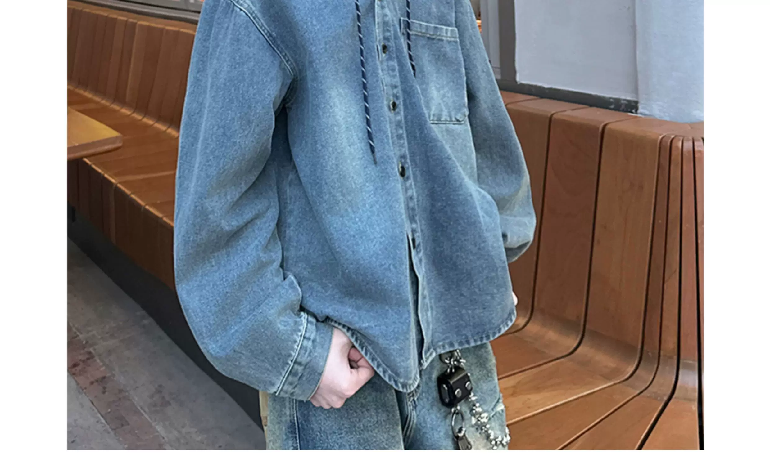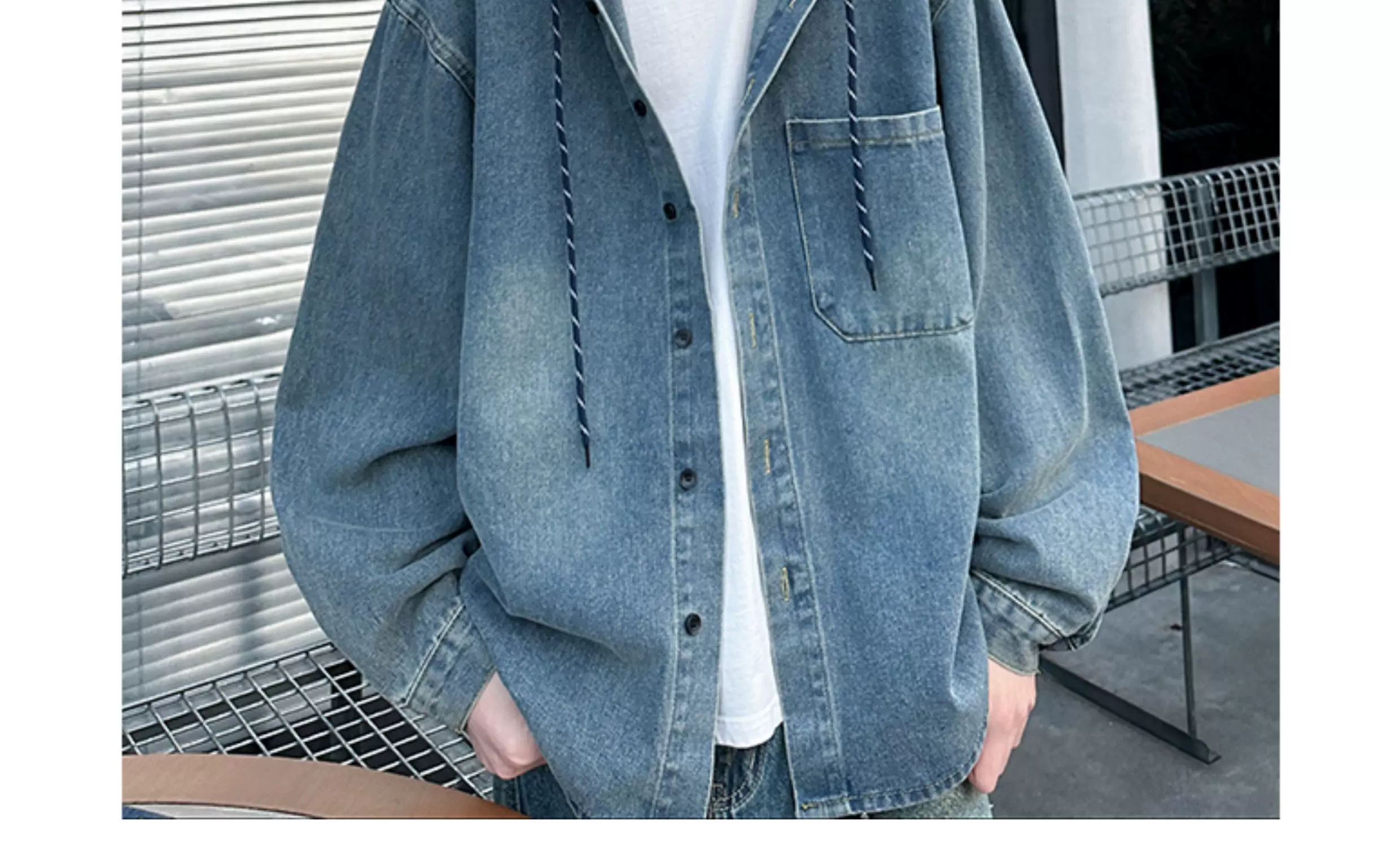 - Áo khoác denim cổ điển mùa xuân thu dành cho nam, áo khoác có mũ rộng rãi, áo khoác thường ngày phong cách retro Mỹ thời thượng.
