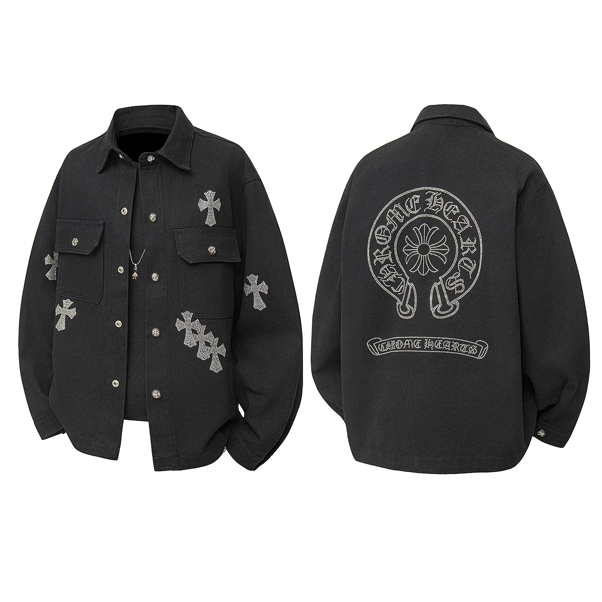 - Áo khoác denim đính đá phong cách đường phố Mỹ dành cho nam, áo khoác công sở dáng rộng hợp thời trang mùa xuân thu, phong cách hip-hop.