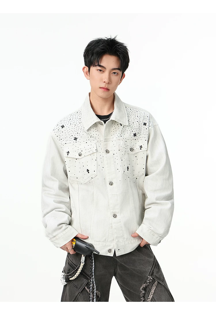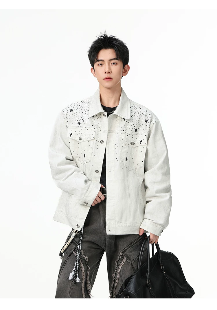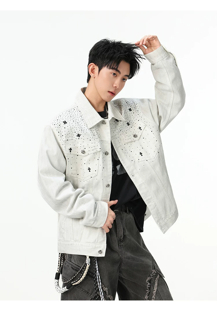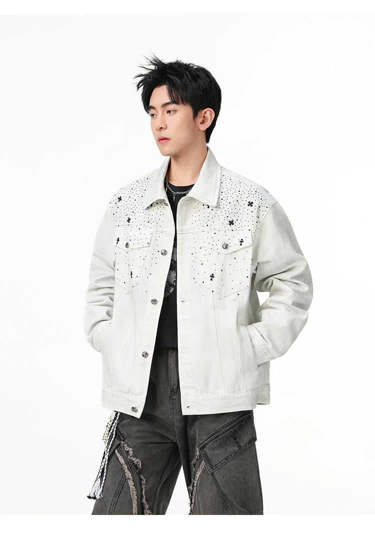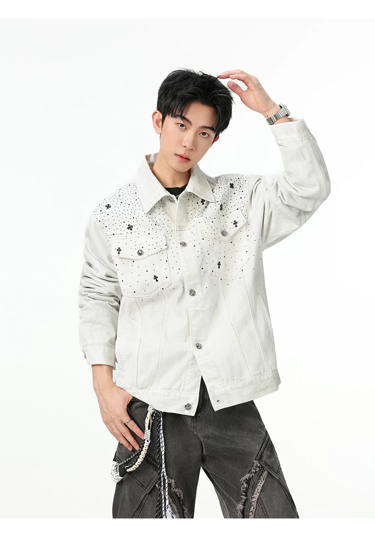 Áo khoác denim họa tiết sao cho nam, áo khoác dáng rộng hợp thời trang mùa xuân thu, áo kiểu Mỹ thiết kế cá tính.