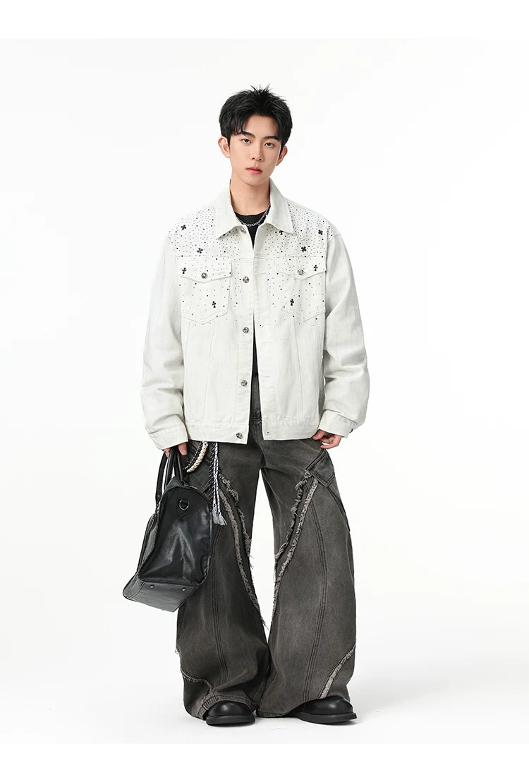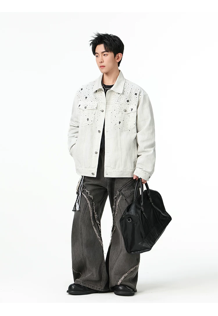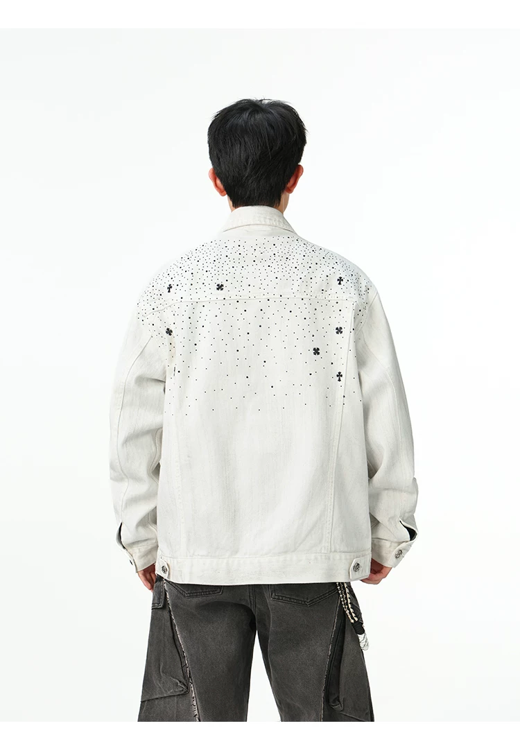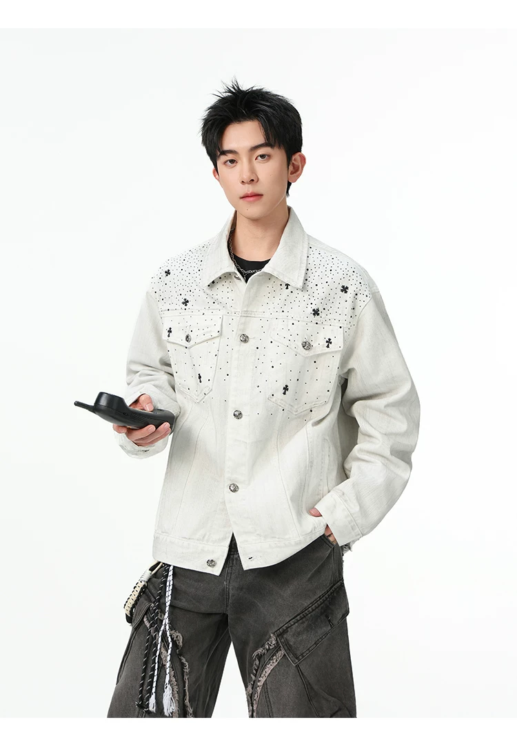 Áo khoác denim họa tiết sao cho nam, áo khoác dáng rộng hợp thời trang mùa xuân thu, áo kiểu Mỹ thiết kế cá tính.