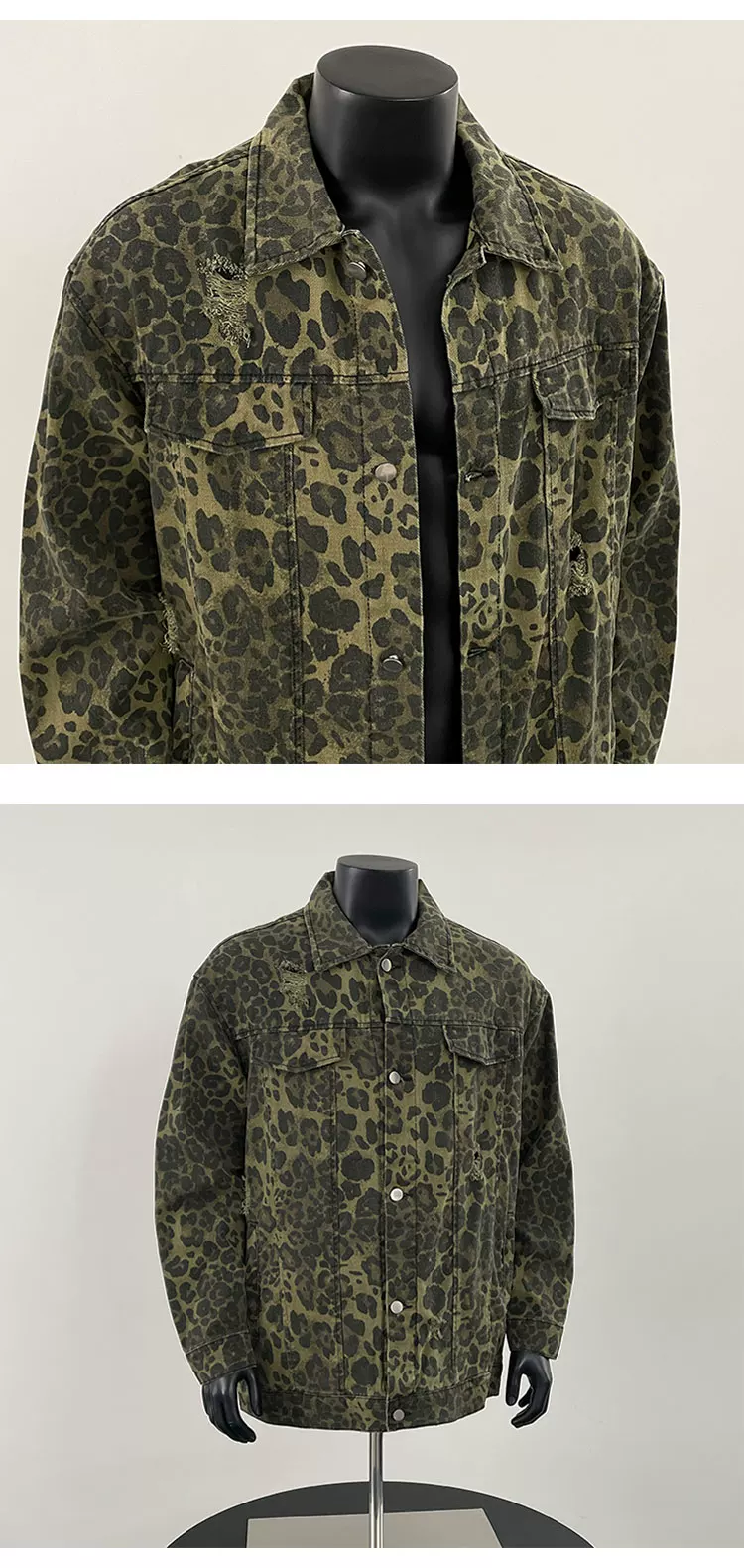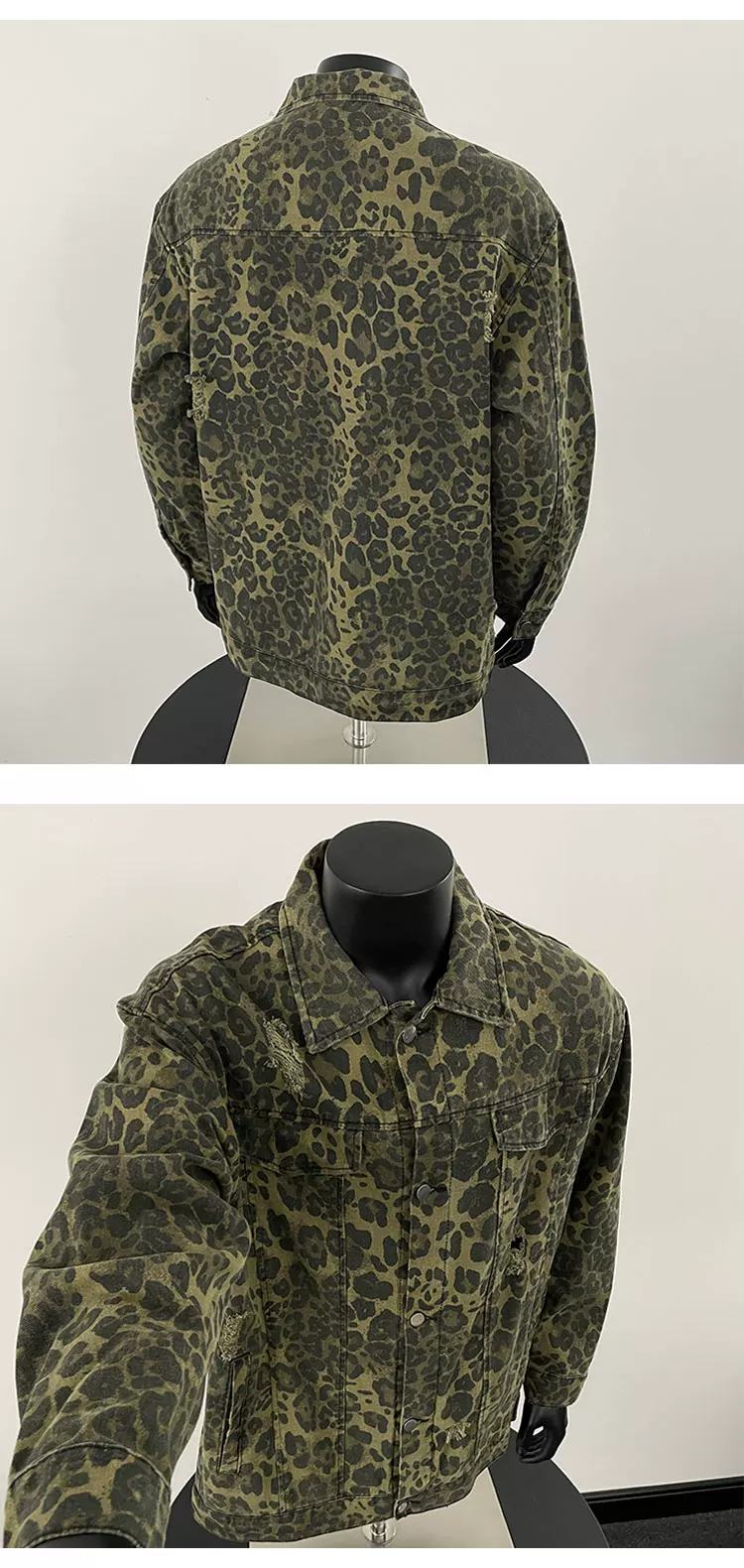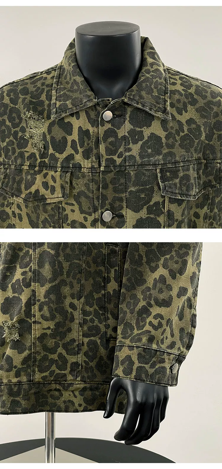 - Áo khoác denim in họa tiết da báo hợp thời trang dành cho nam, mùa xuân, phong cách cao cấp, áo khoác công sở dáng rộng kiểu Mỹ.