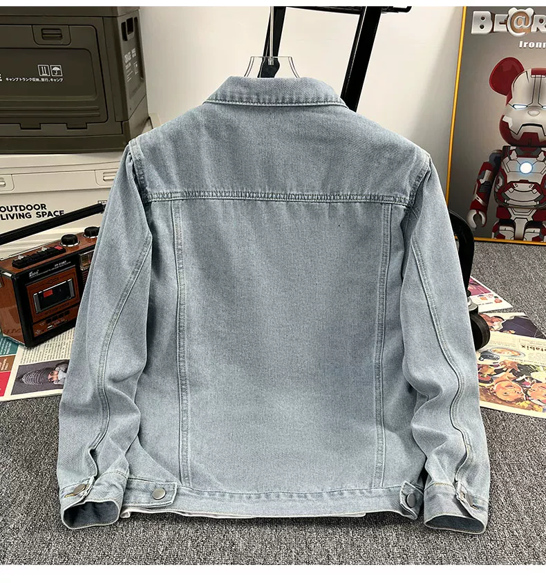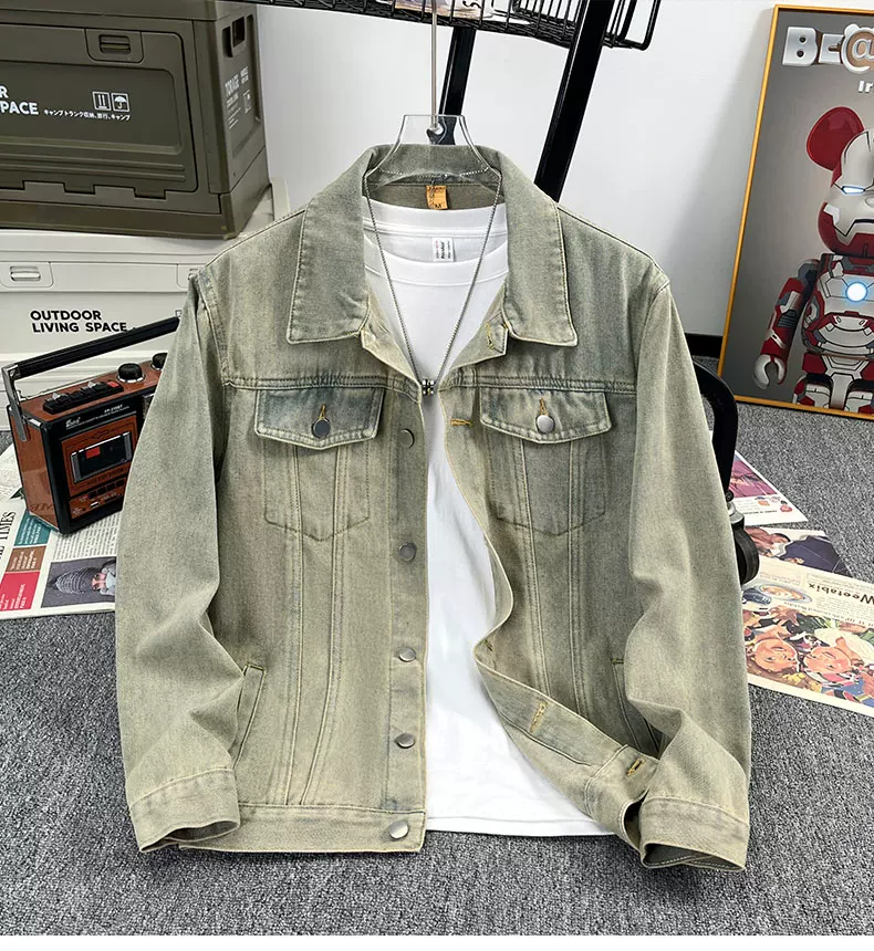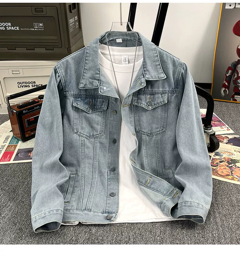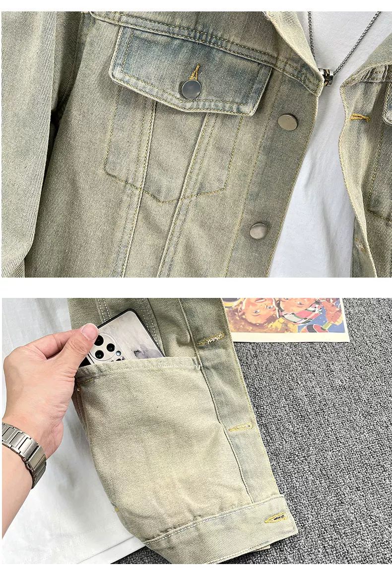 Áo khoác denim kiểu Mỹ dành cho nam, áo khoác kiểu workwear rộng rãi, hợp thời trang, áo khoác cặp đôi đa năng mùa xuân hè.