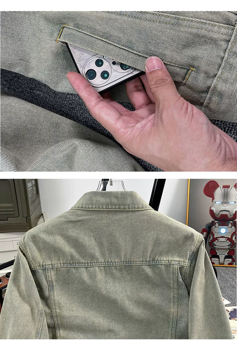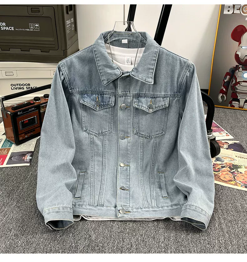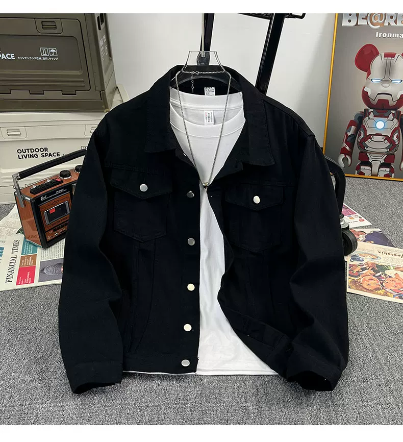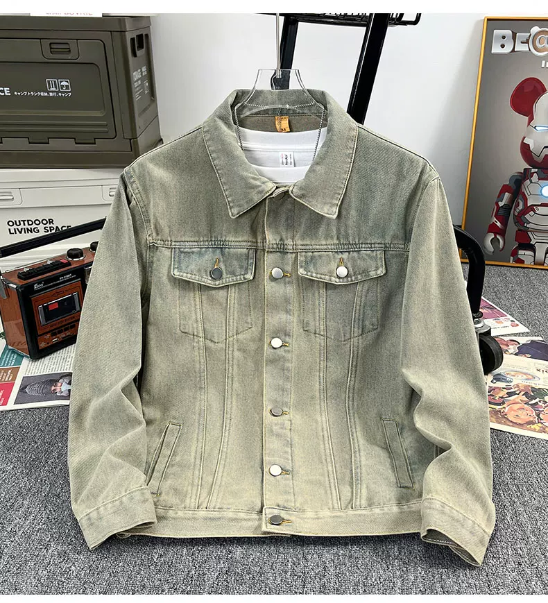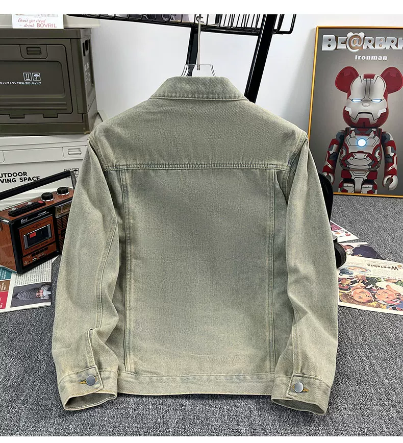 Áo khoác denim kiểu Mỹ dành cho nam, áo khoác kiểu workwear rộng rãi, hợp thời trang, áo khoác cặp đôi đa năng mùa xuân hè.