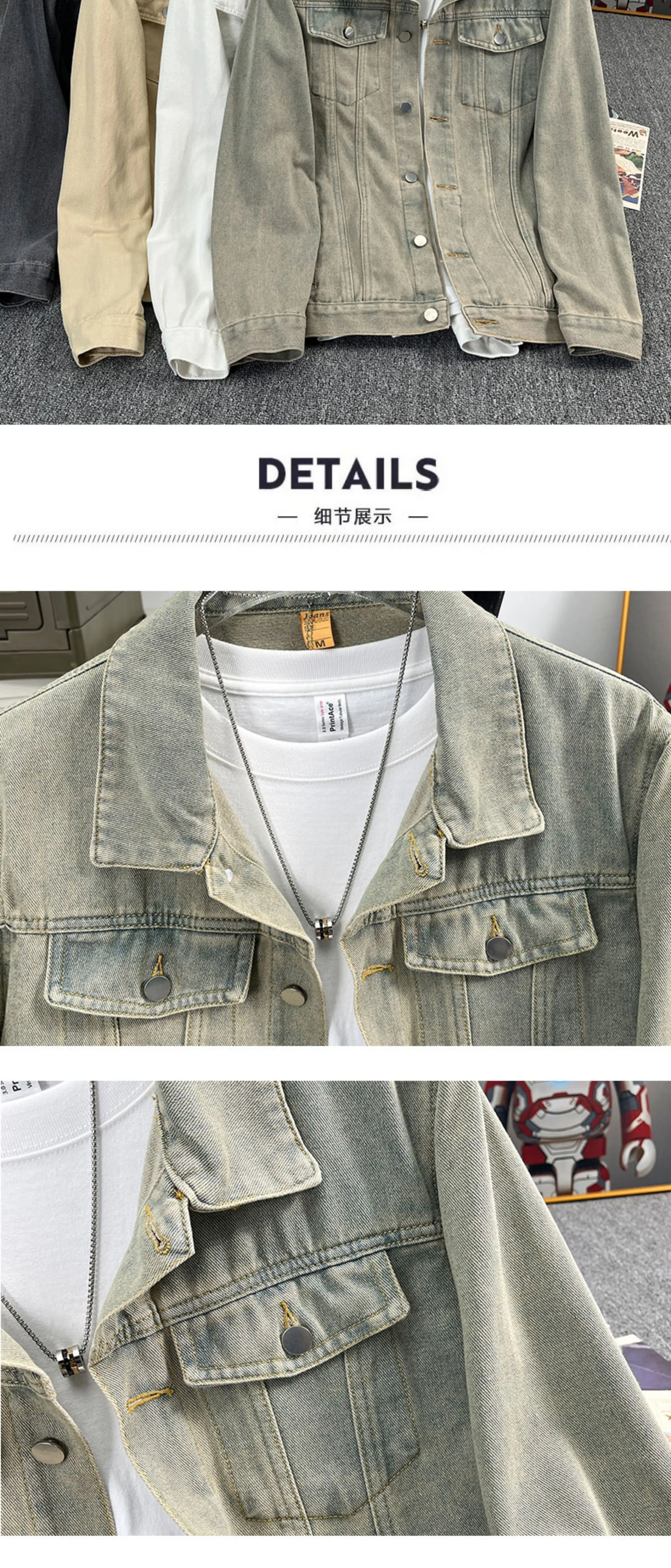 - Áo khoác denim kiểu Mỹ dành cho nam, áo khoác kiểu workwear rộng rãi, hợp thời trang, áo khoác cặp đôi đa năng mùa xuân hè.