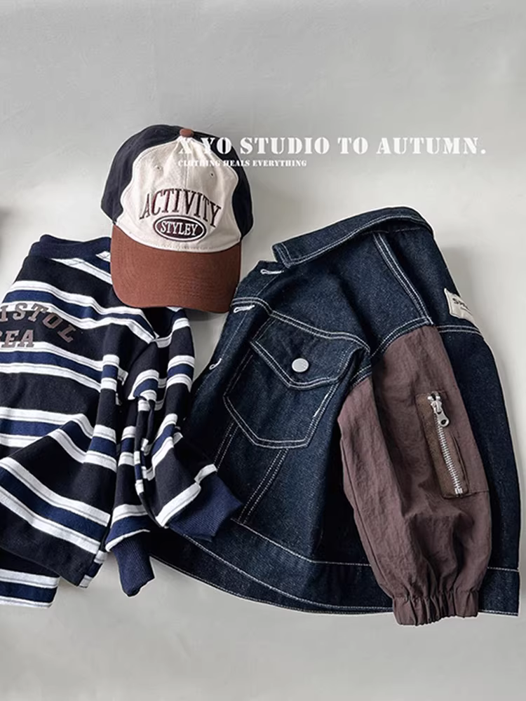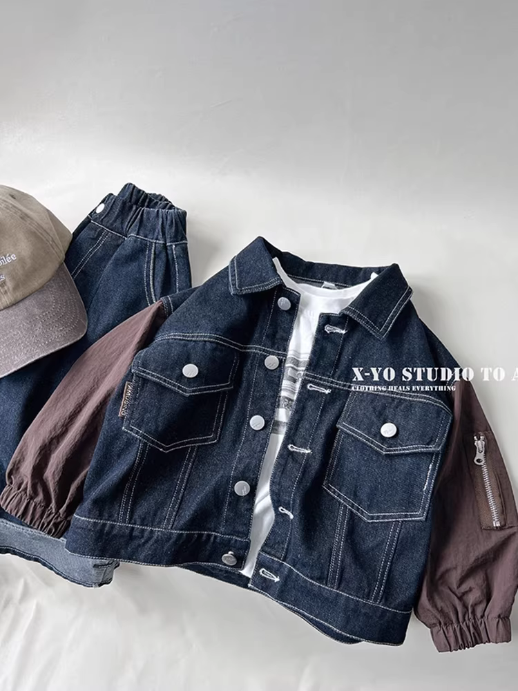 - Áo khoác denim mùa xuân thu cho bé trai, kiểu dáng mới dày dặn năm 2025, thời trang mùa xuân cho bé trai.