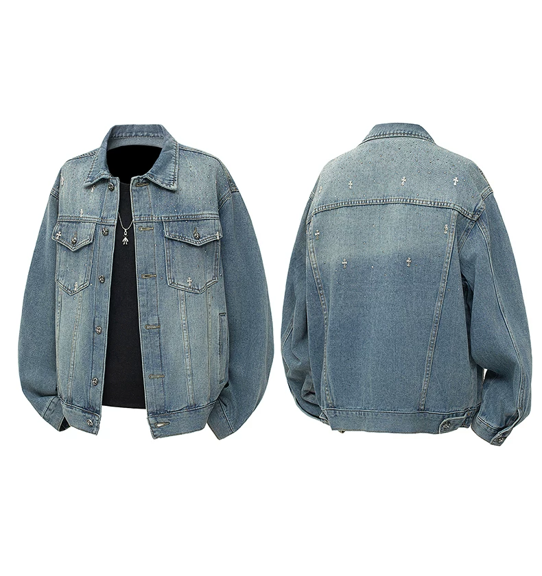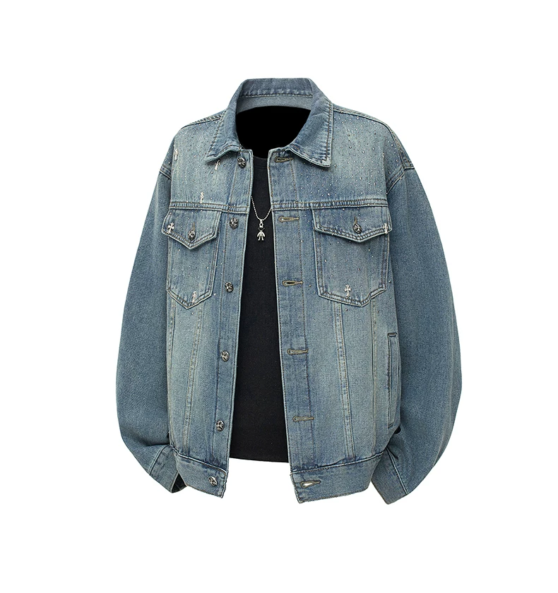 - Áo khoác denim nam đính đá nặng, kiểu dáng cleanfit thời thượng, áo kiểu Mỹ rộng rãi, thoải mái.