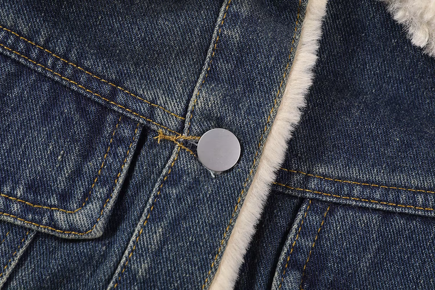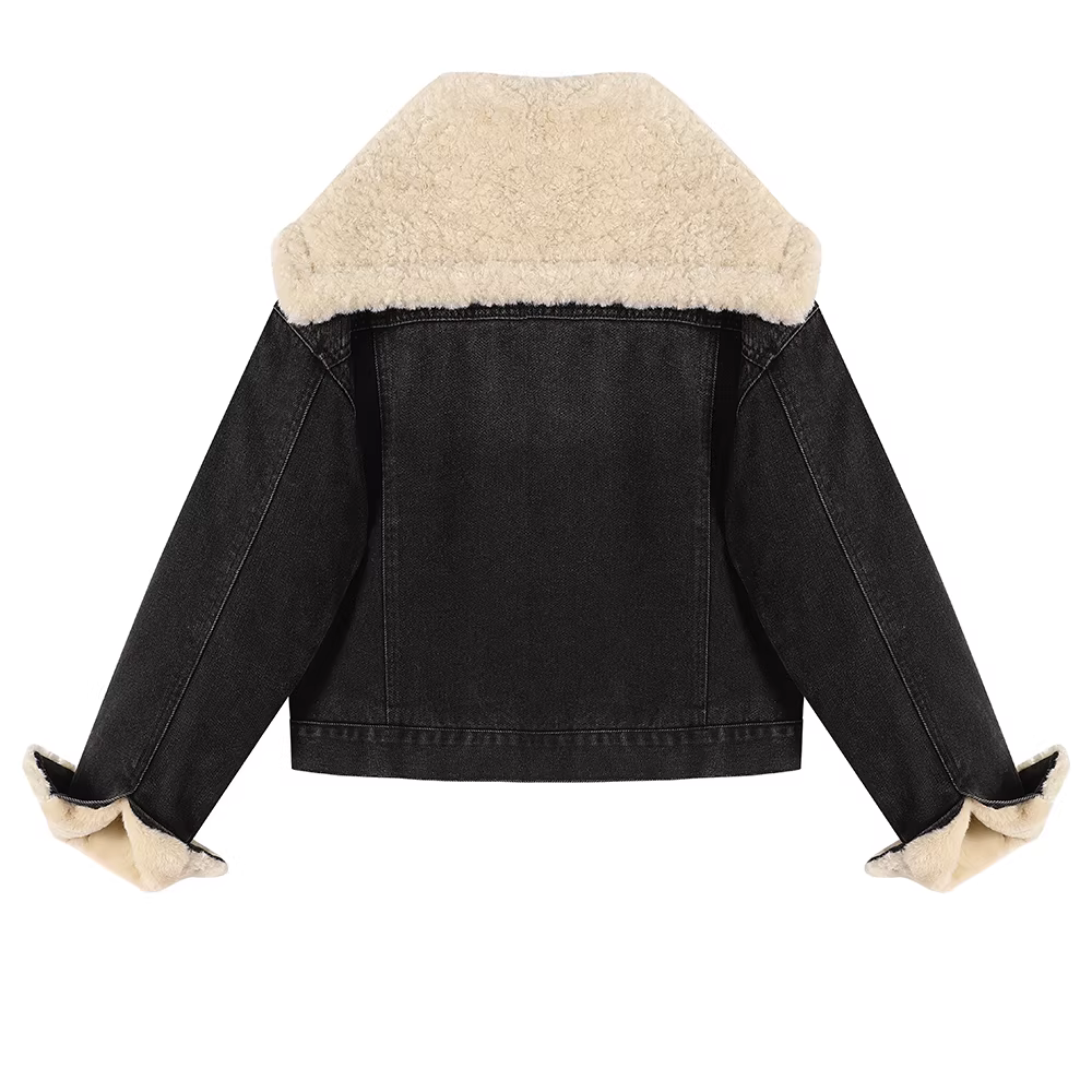 - Áo khoác denim ngắn dáng ôm cổ điển phong cách retro dành cho nữ, mùa thu đông, chất liệu cao cấp, lót lông cừu và dày dặn.